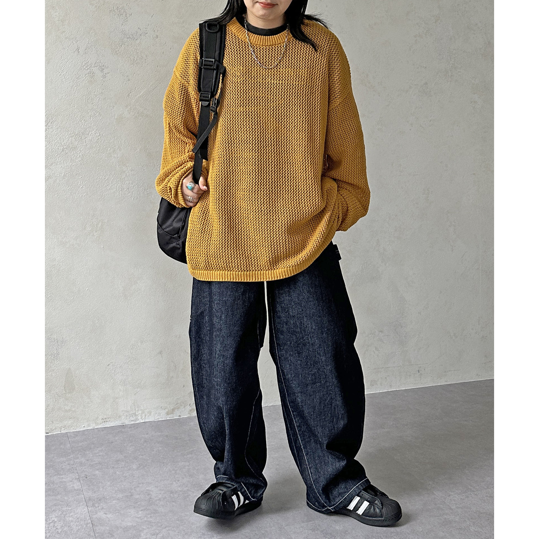 ・ゆとりのあるサイズ感で男女問わず着用できるユニセックスアイテム