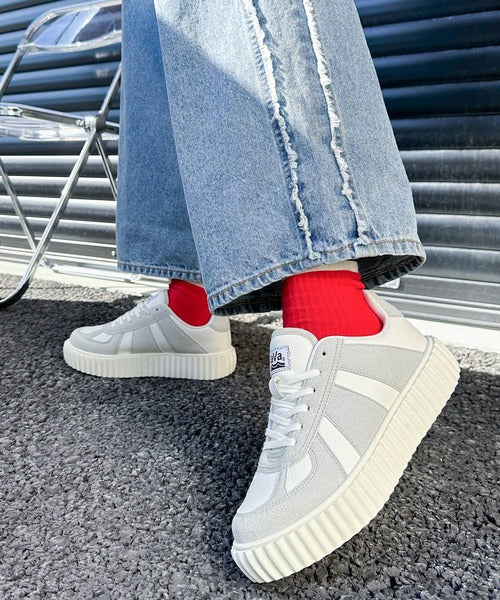 ジャーマントレーナーはぺったんこな薄底なのに対し、こちらは3.5㎝の厚底デザイン。