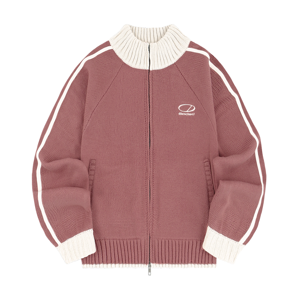 [K-POPアイドル着用] Sporty Track Semi Crop Knit Zip-Up - PINK