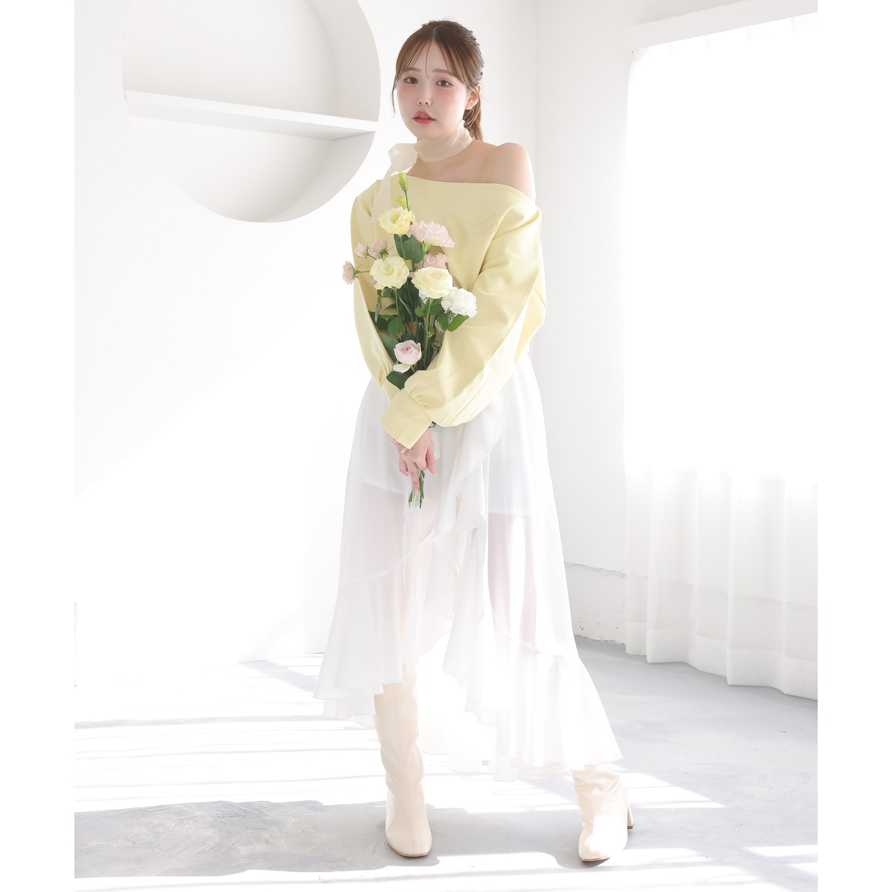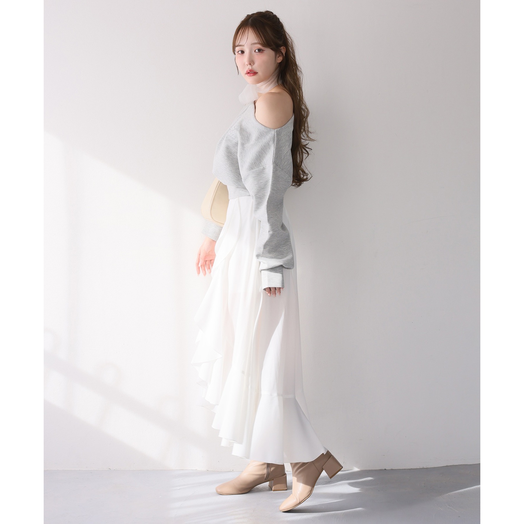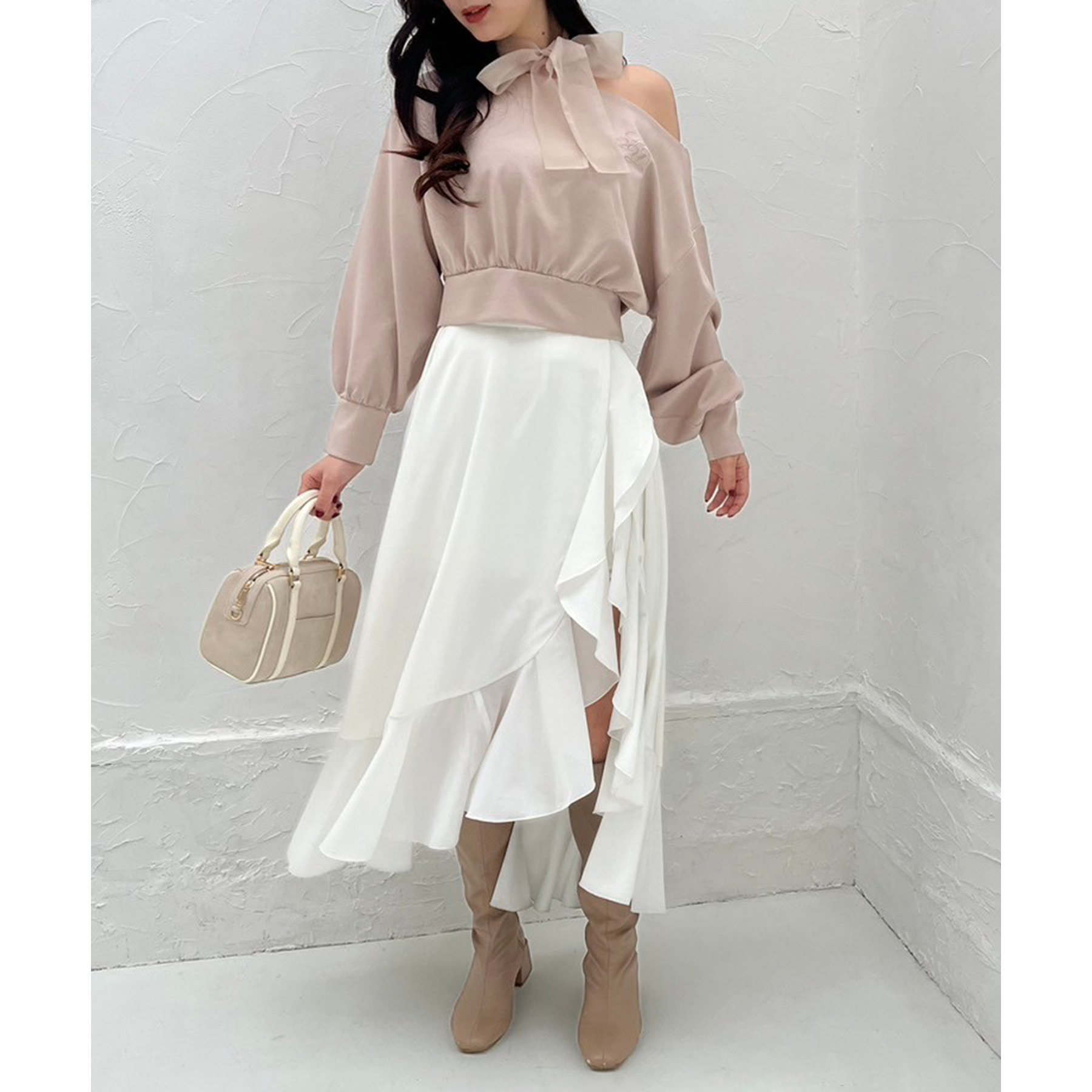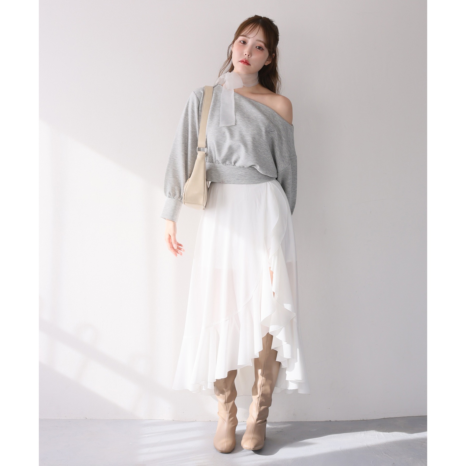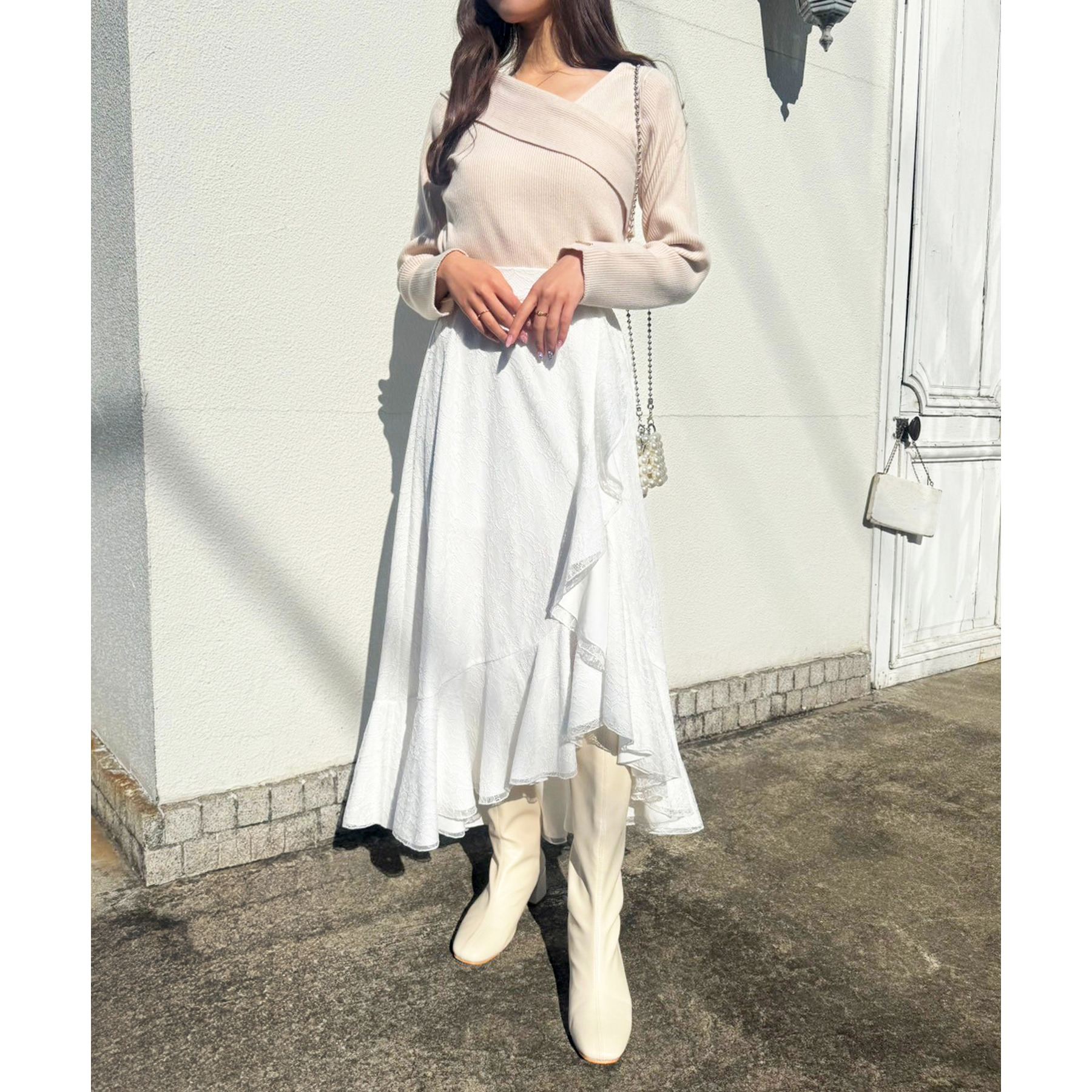 フェミニンな印象に仕上げたい方は、ブラウスなどで合わせて、