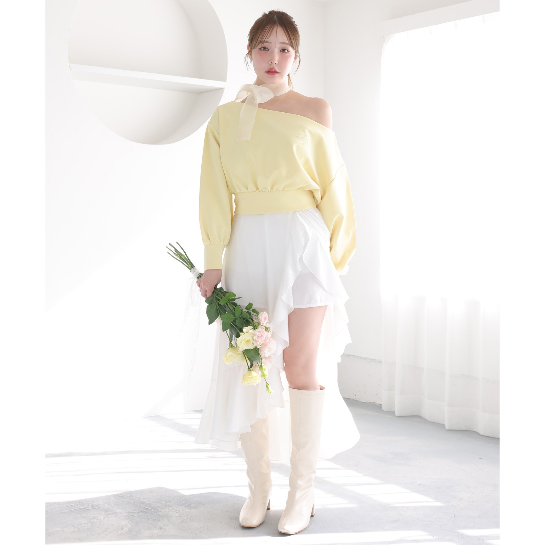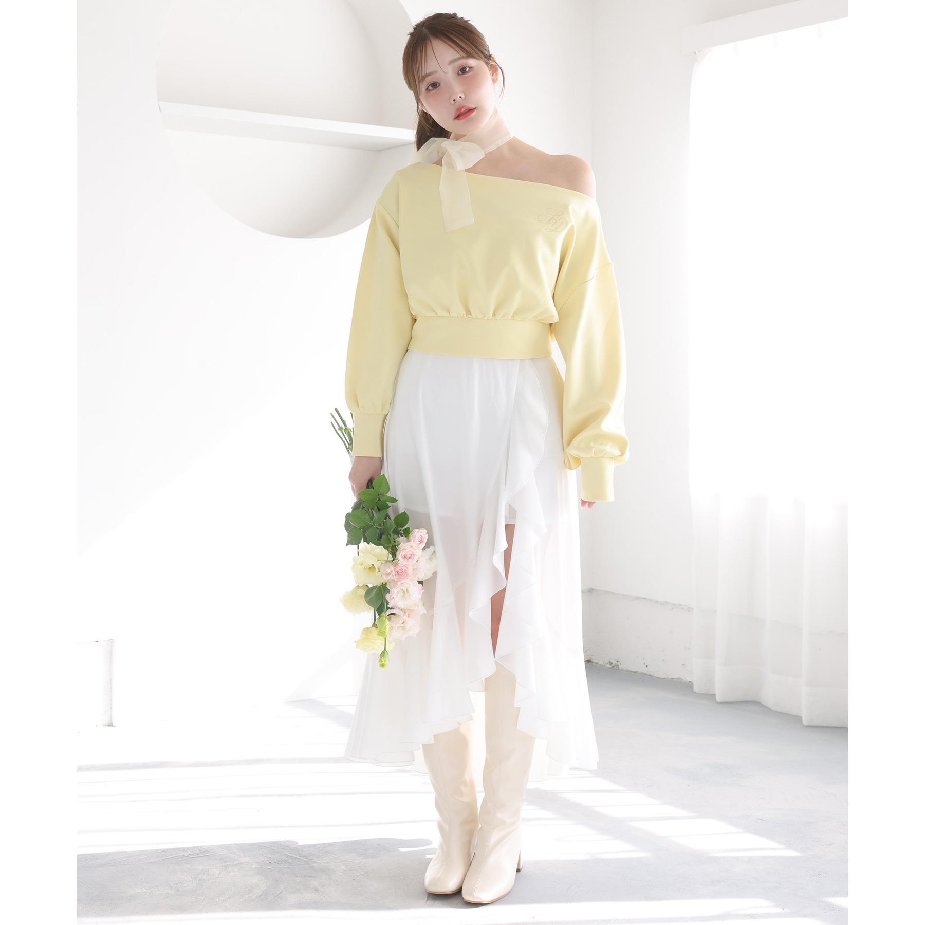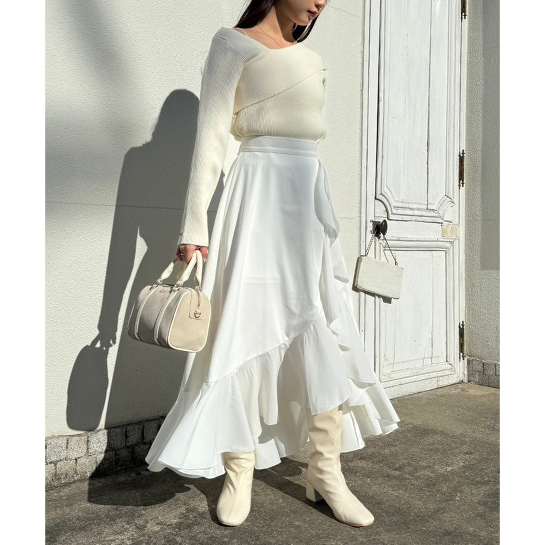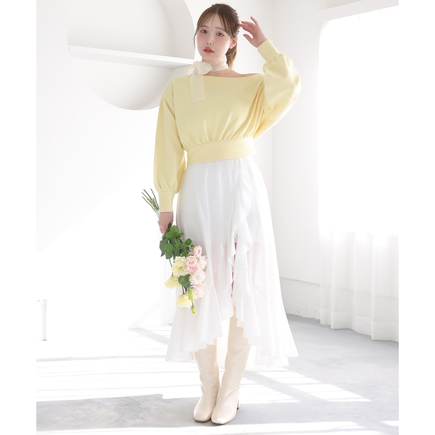 フェミニンな印象に仕上げたい方は、ブラウスなどで合わせて、