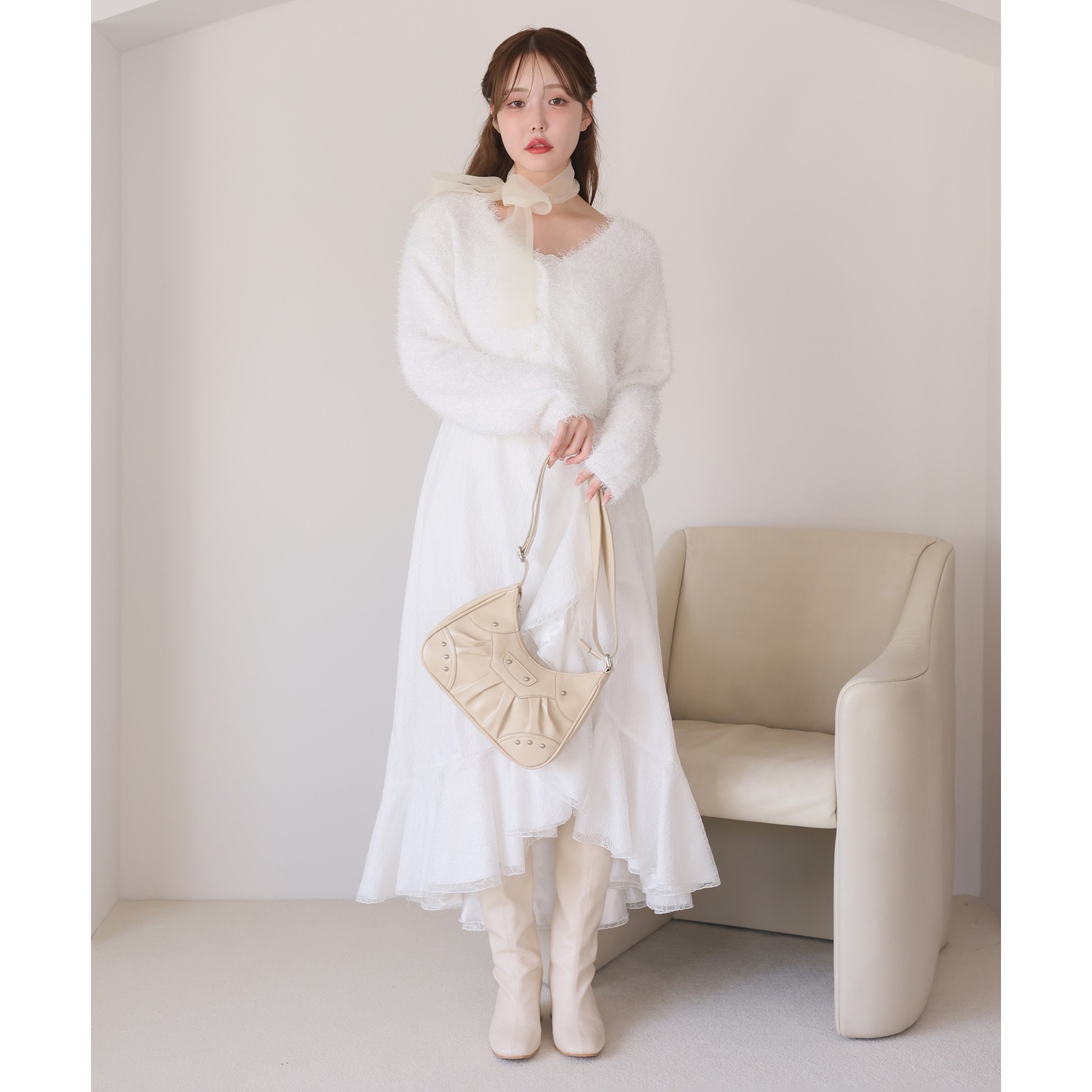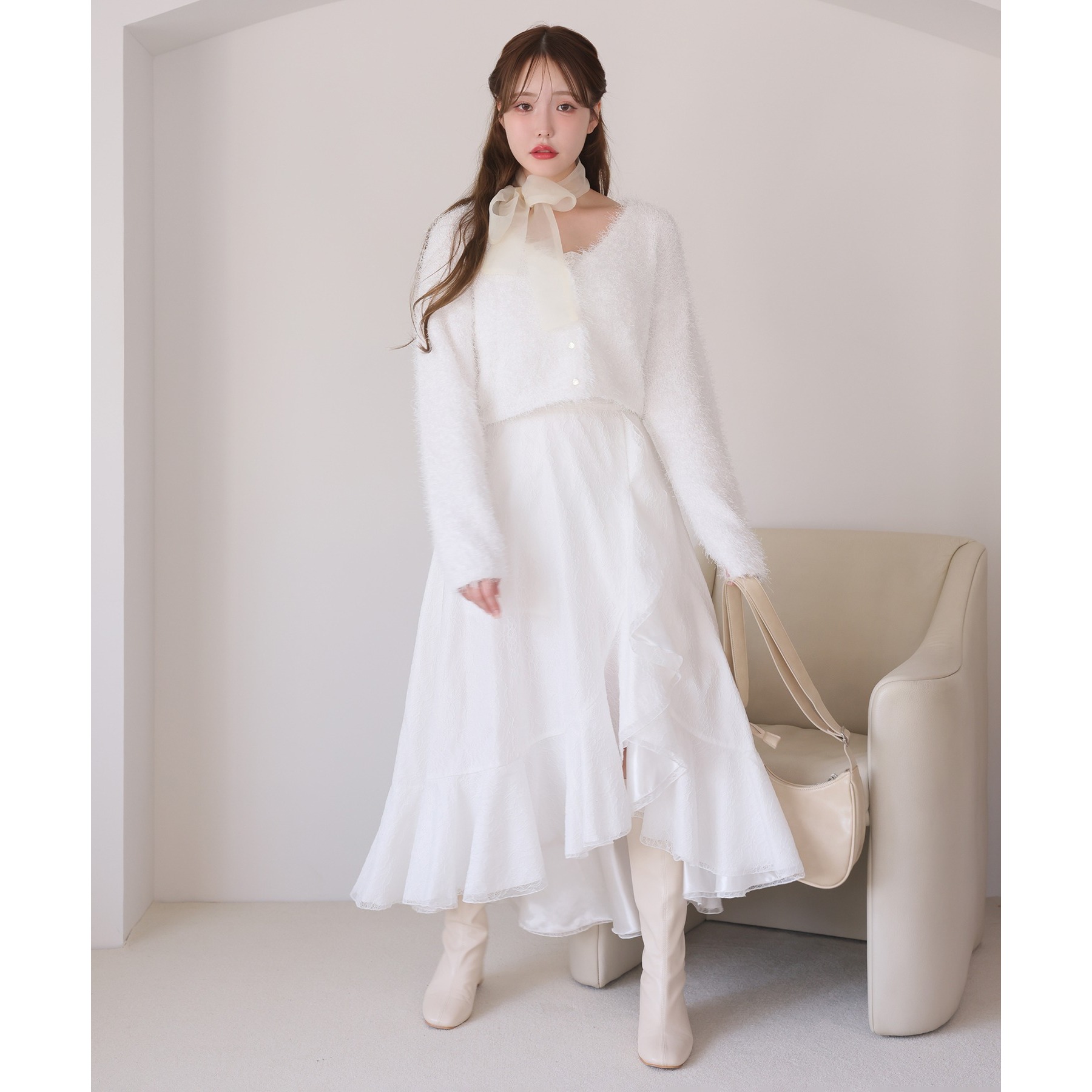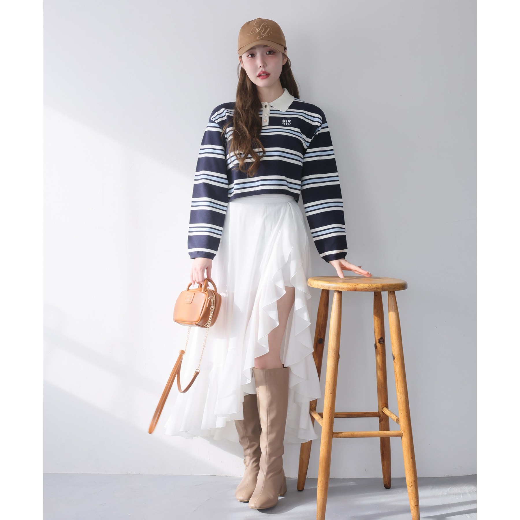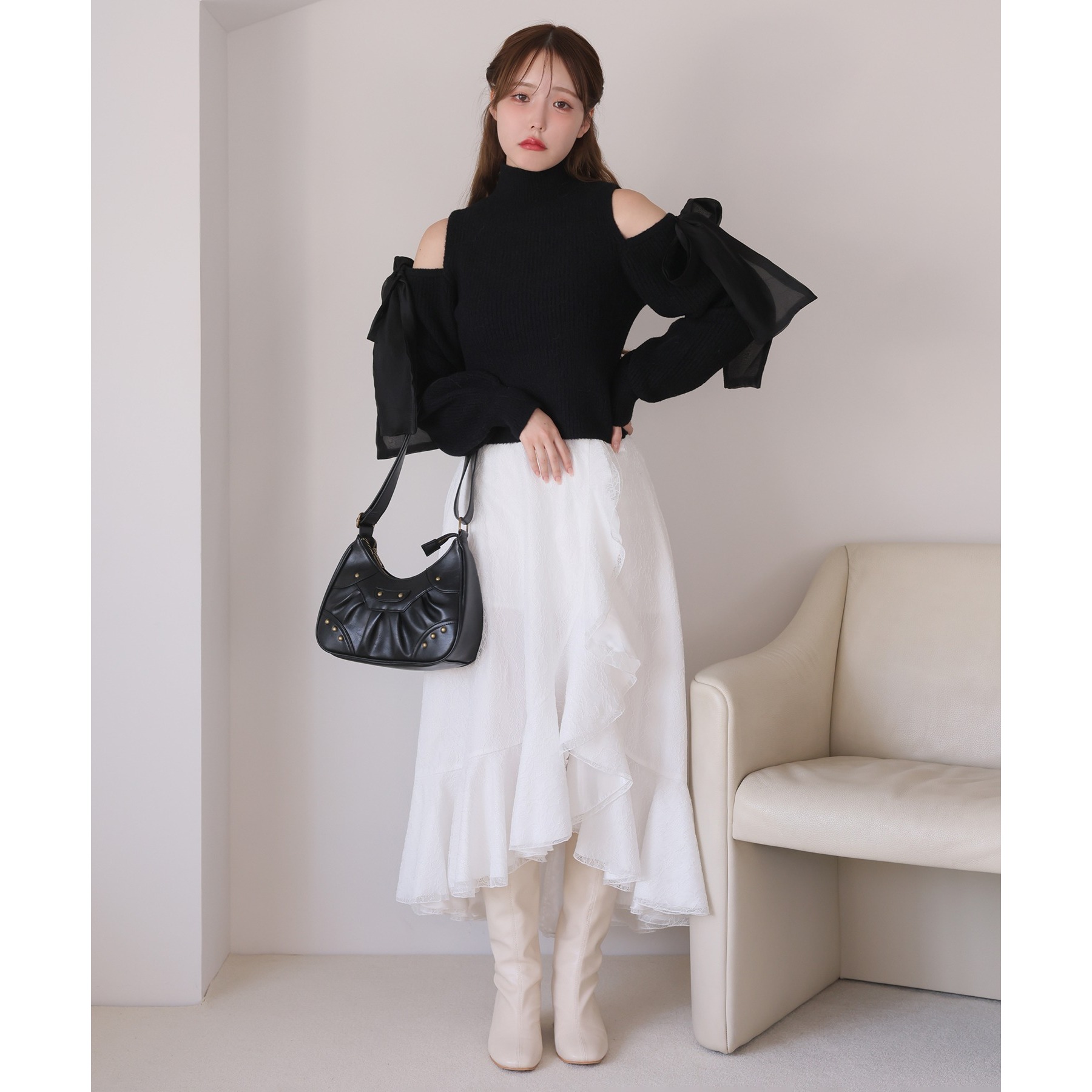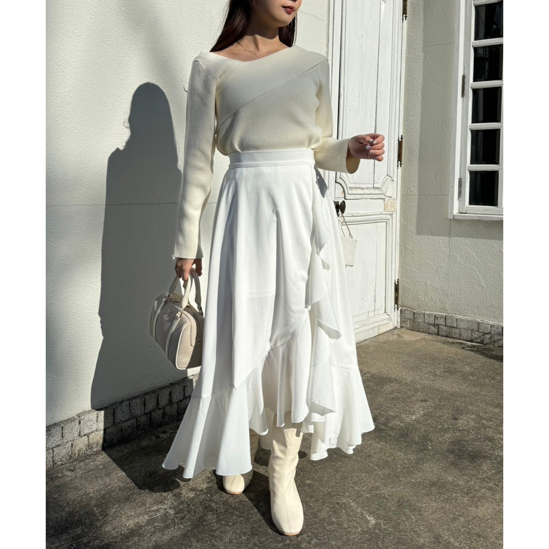 フェミニンな印象に仕上げたい方は、ブラウスなどで合わせて、