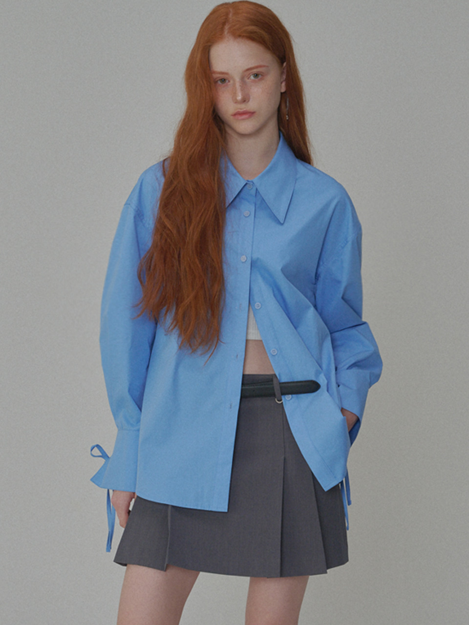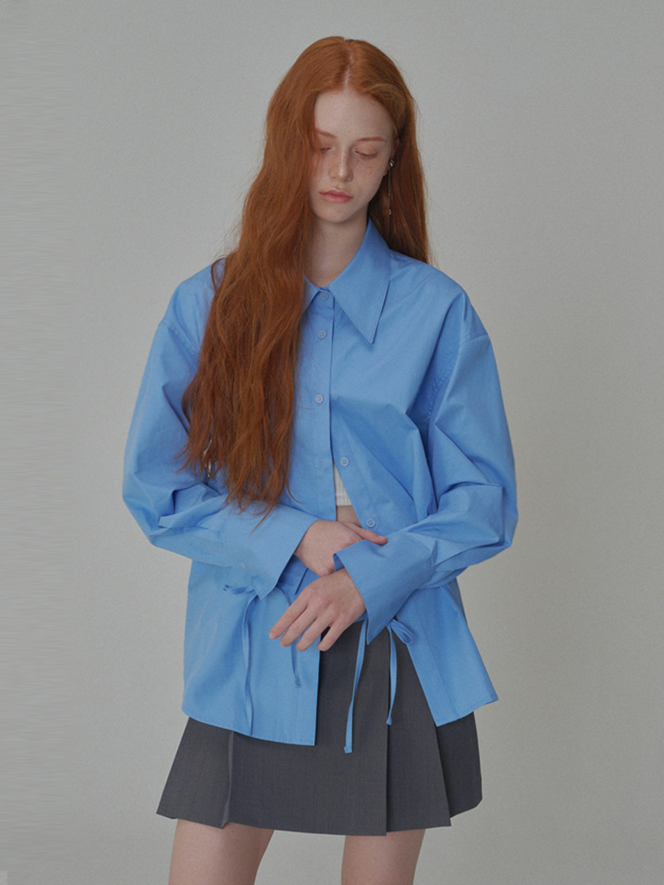 Ribbon Detailed Over-fit Cotton Shirt_Blue