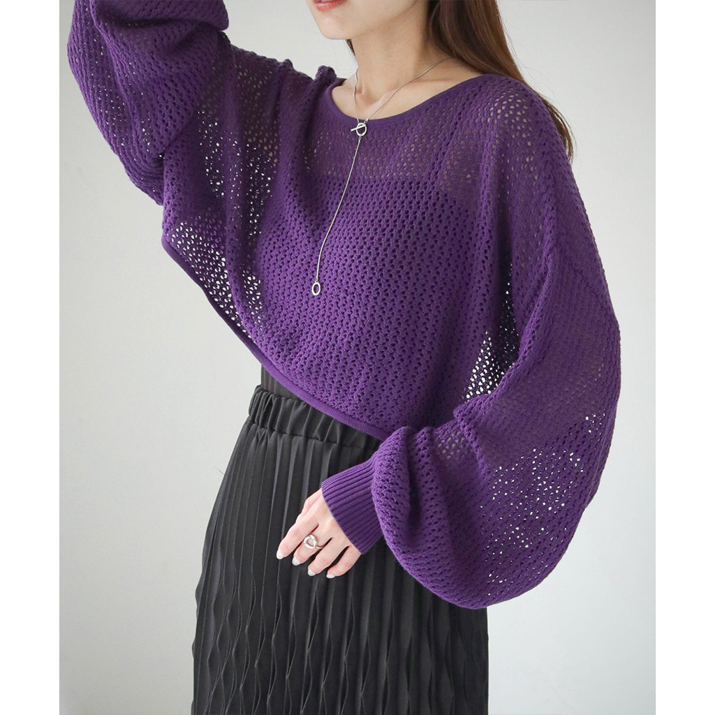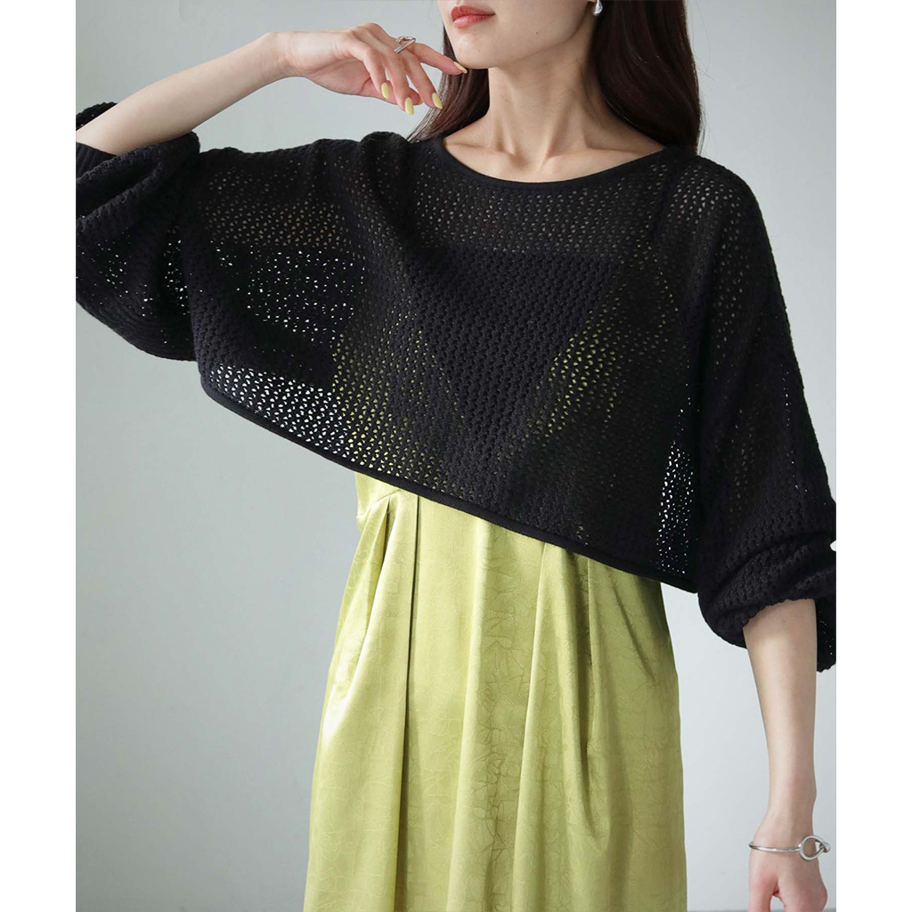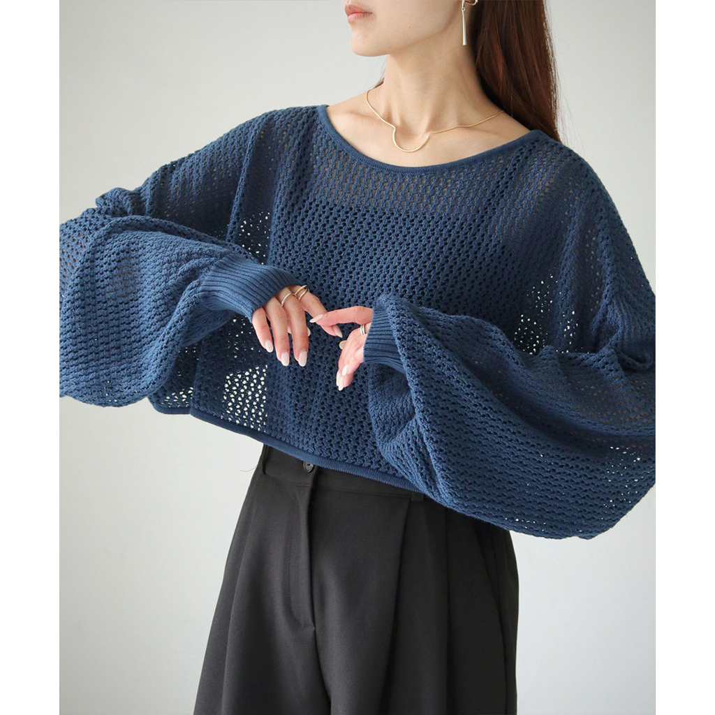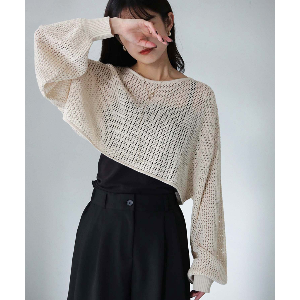透かし編みショートニットプルオーバー (986-19718)