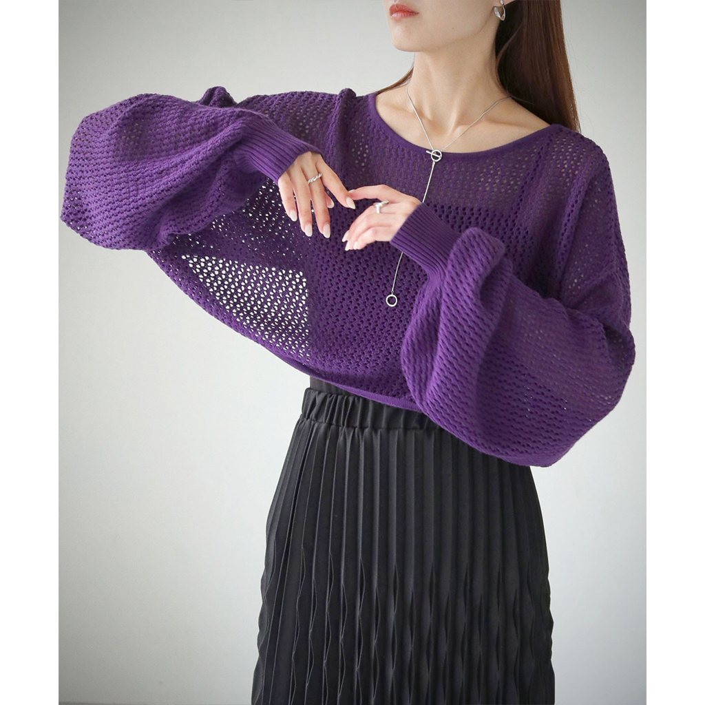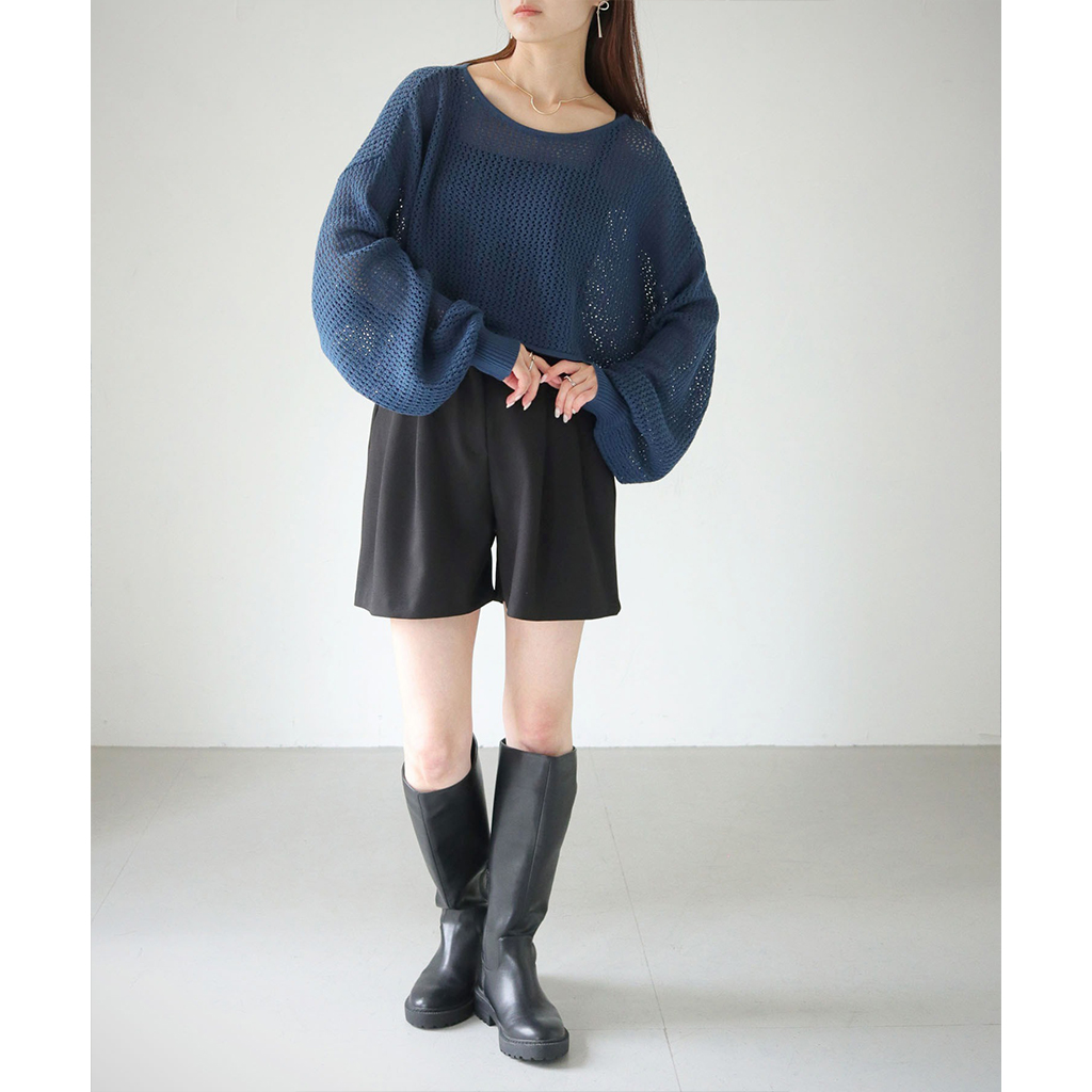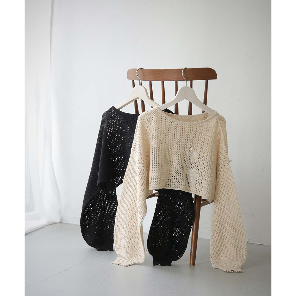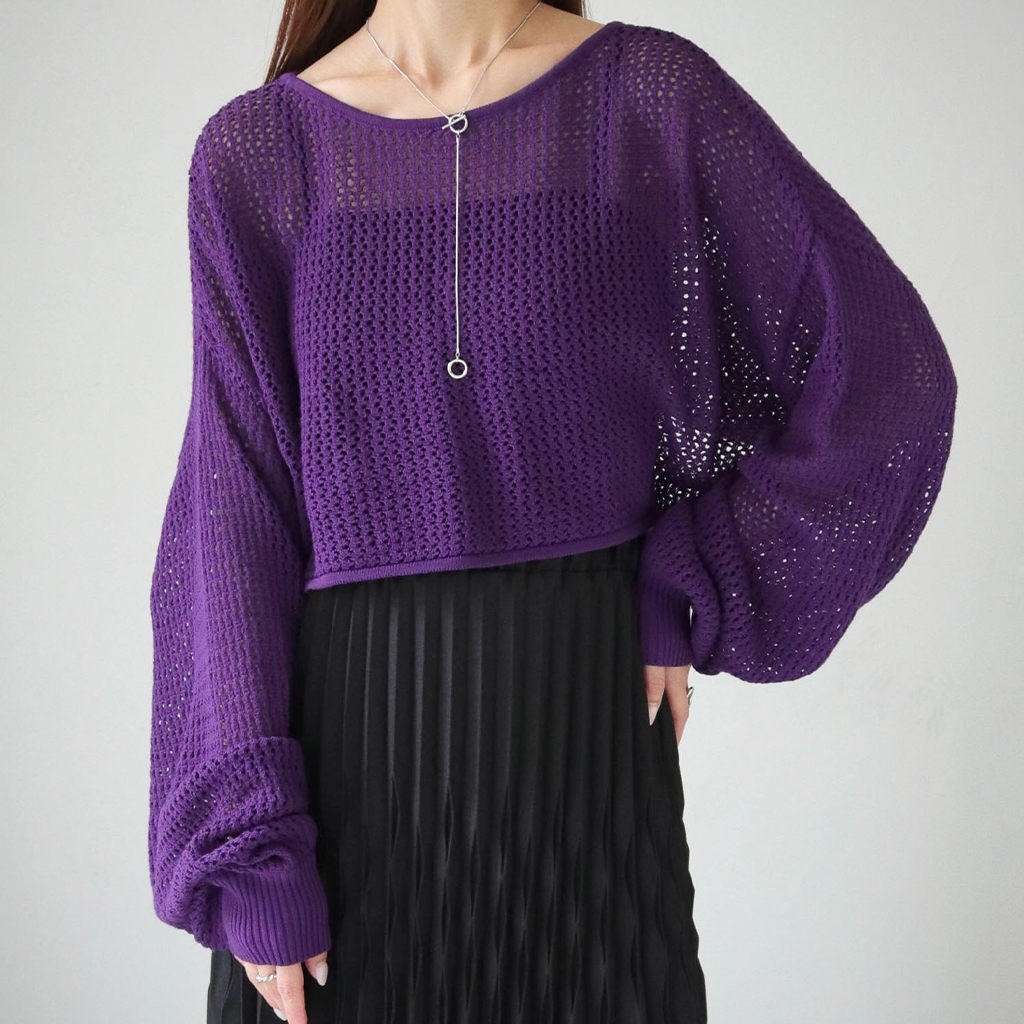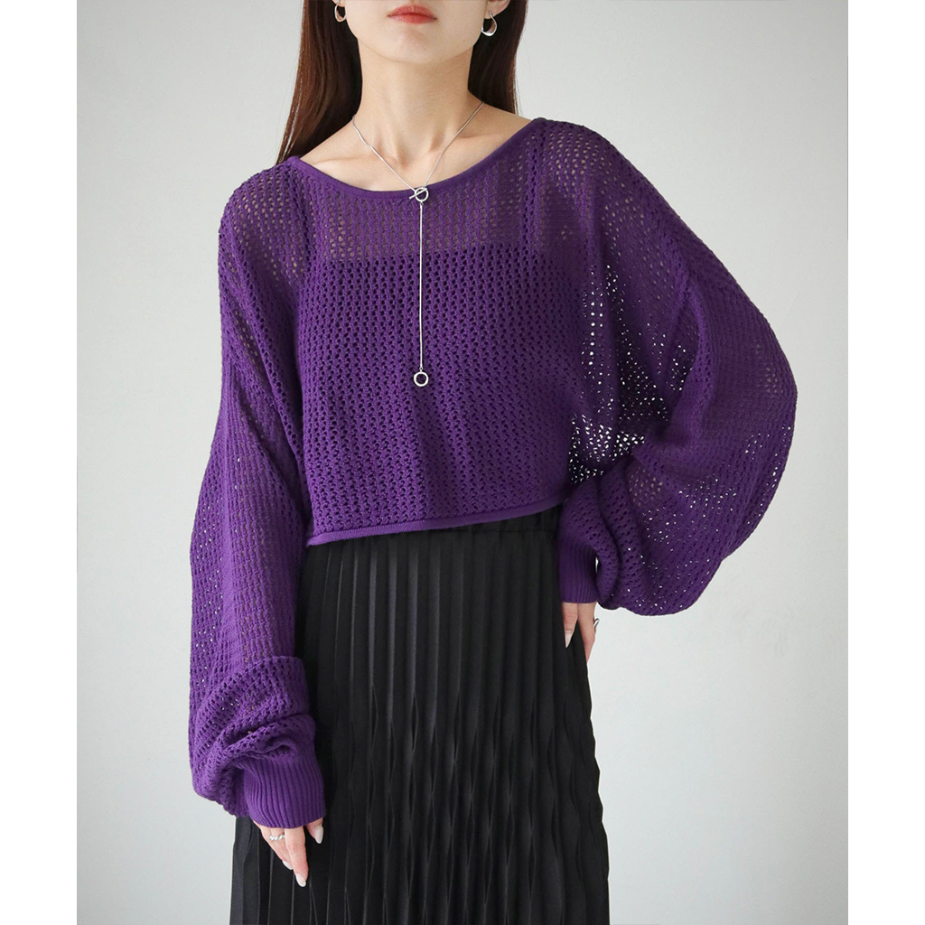 透かし編みショートニットプルオーバー (986-19718)
