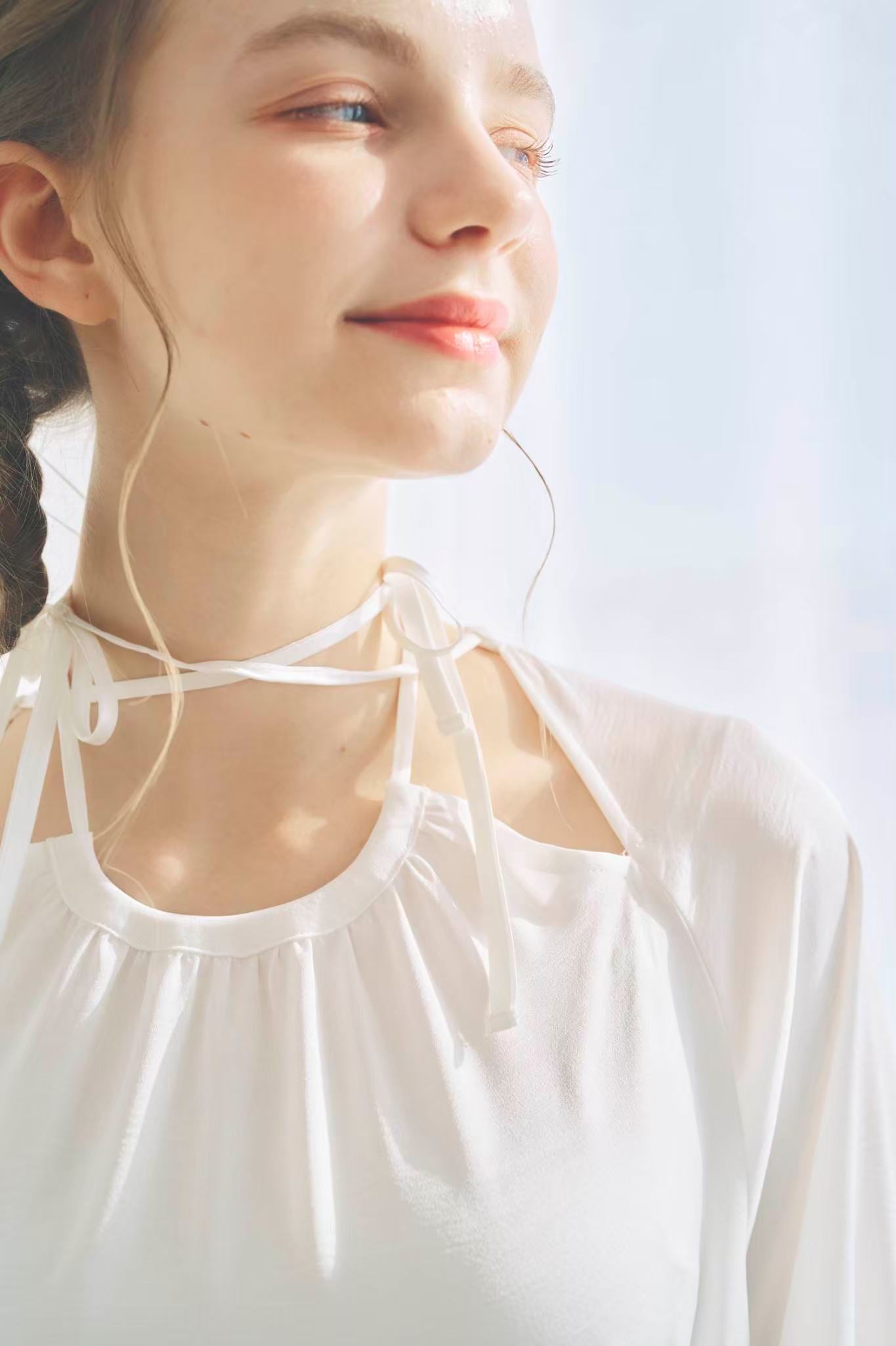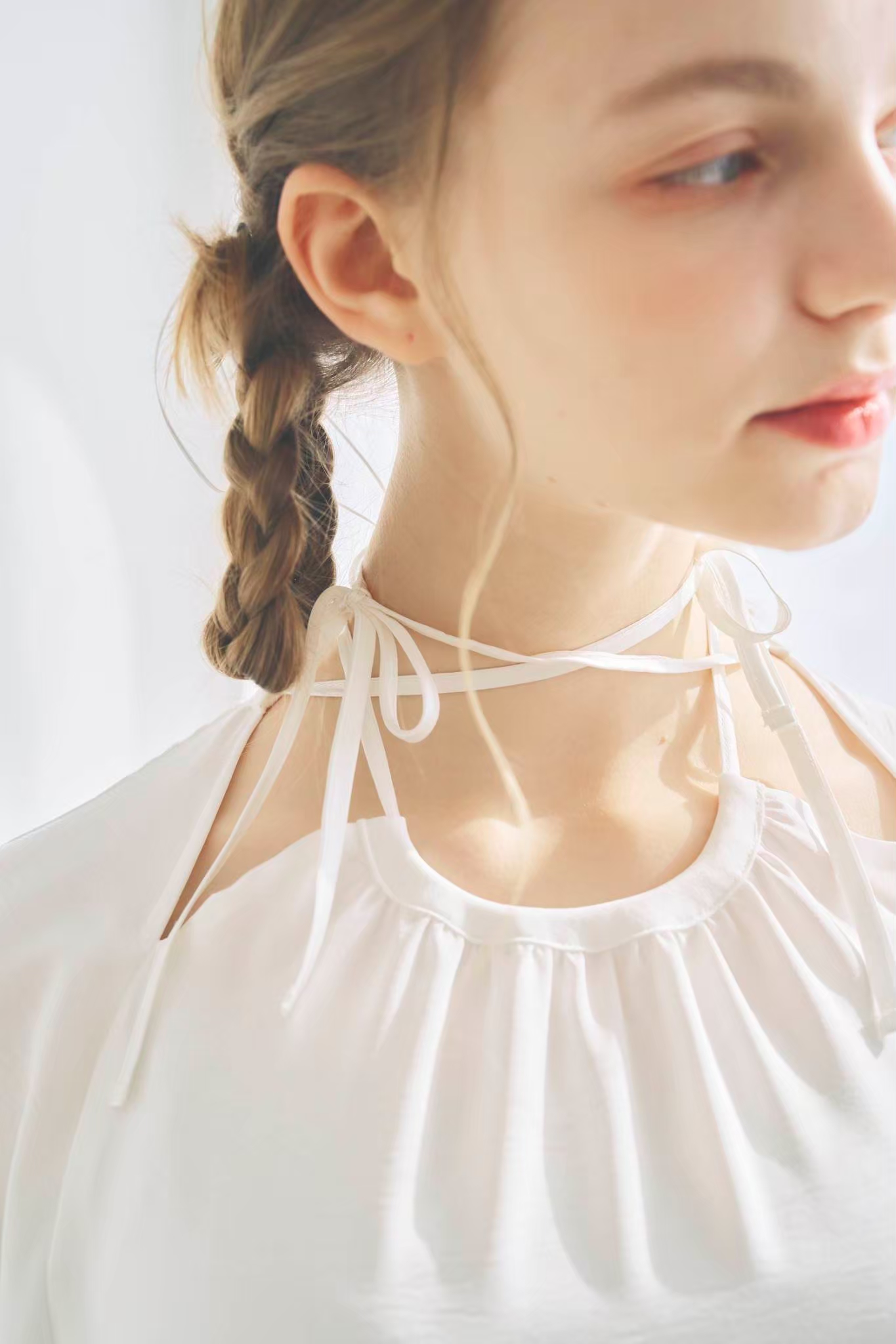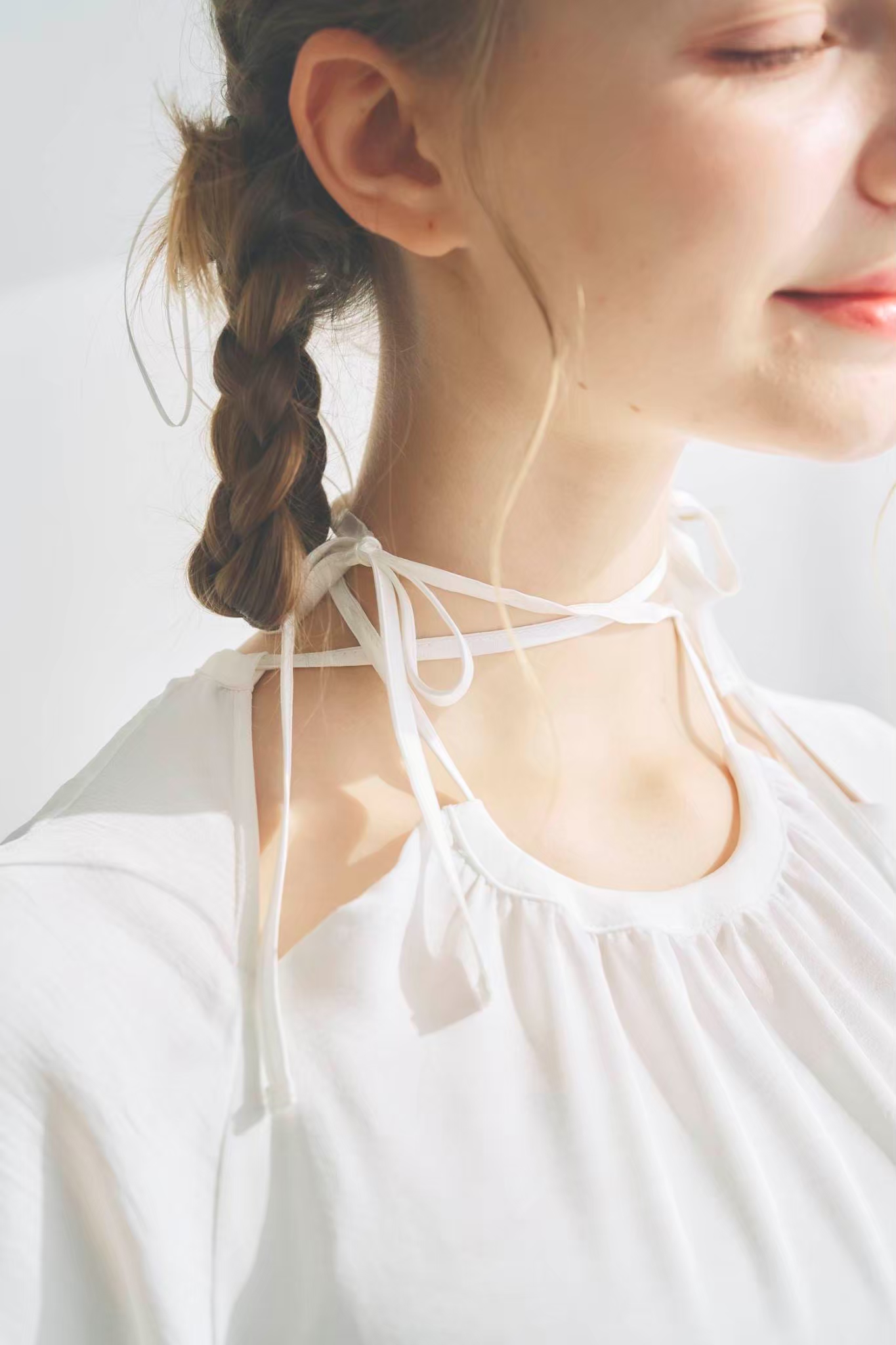 首元のリボンはクロス止めなど自由にお楽しみいただけます。