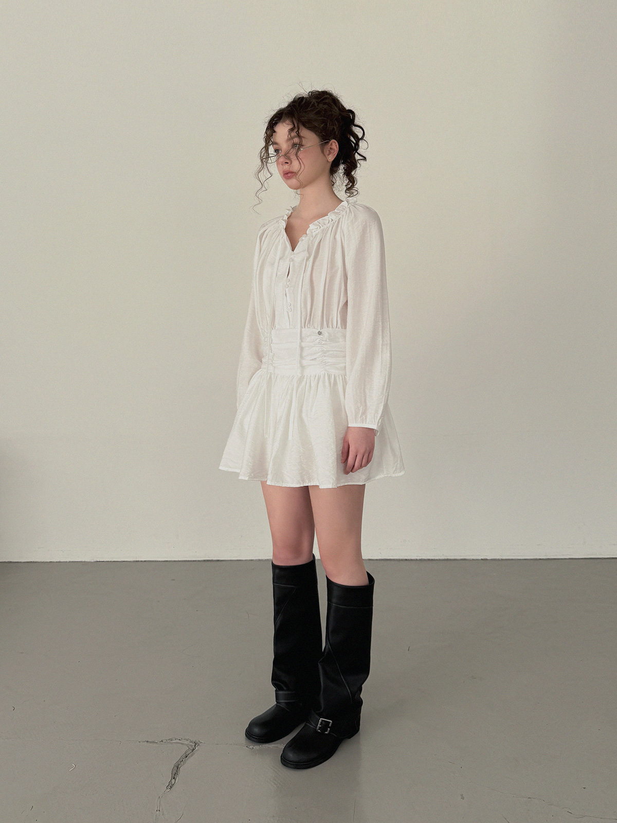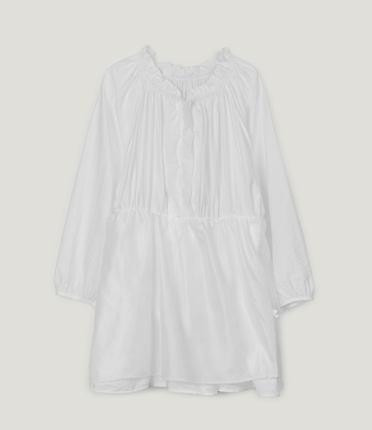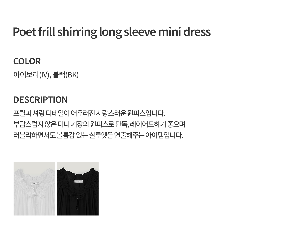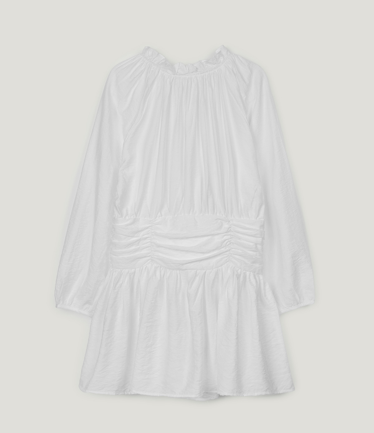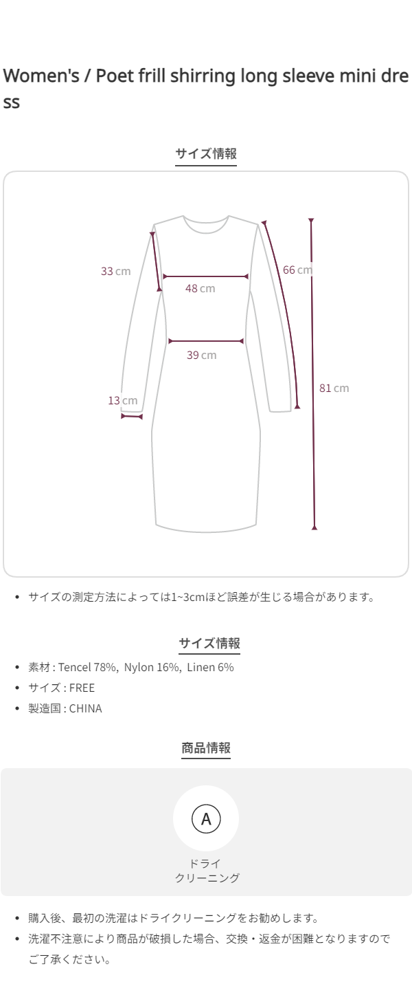 フリルシャーリング長袖ミニワンピース