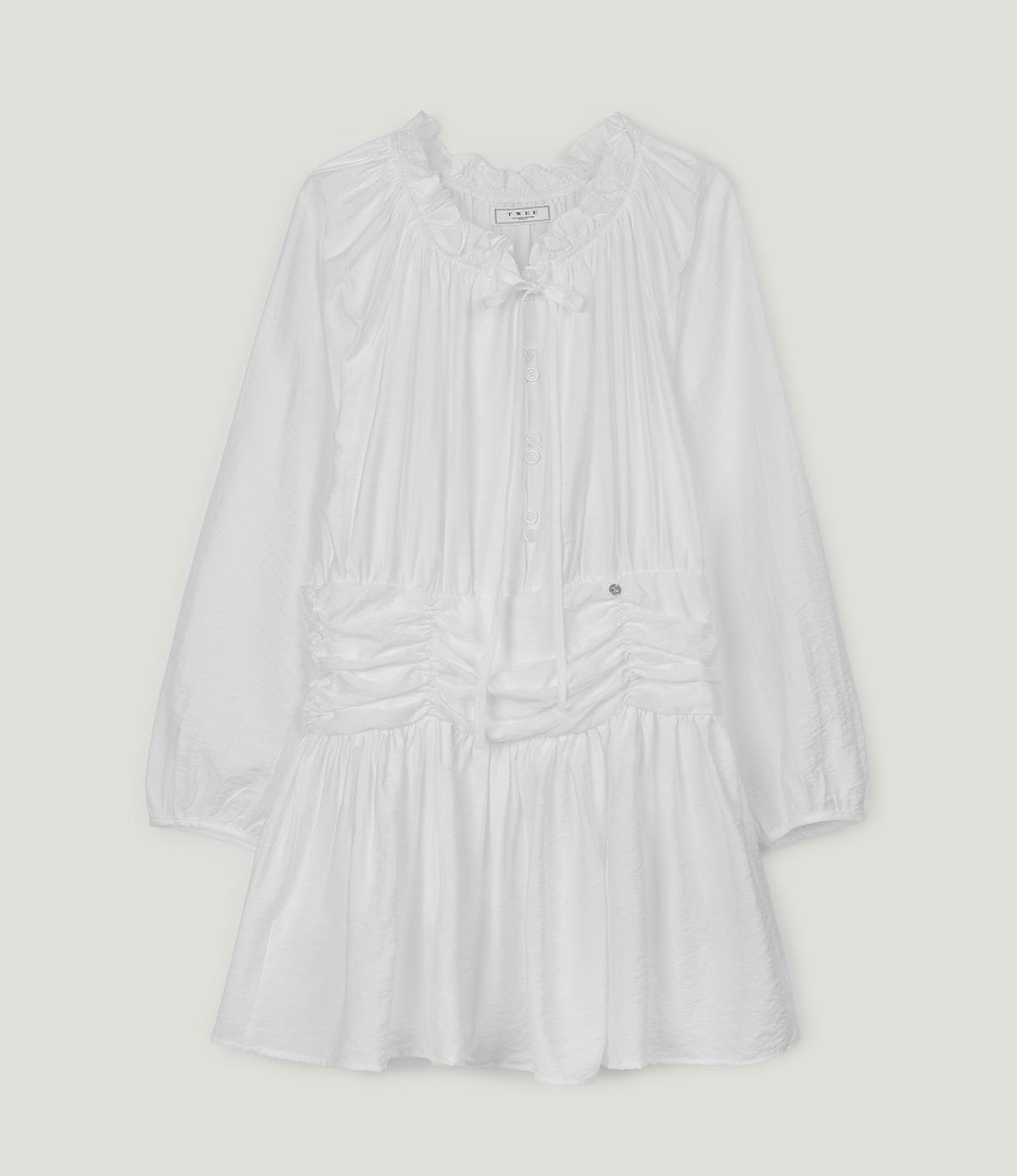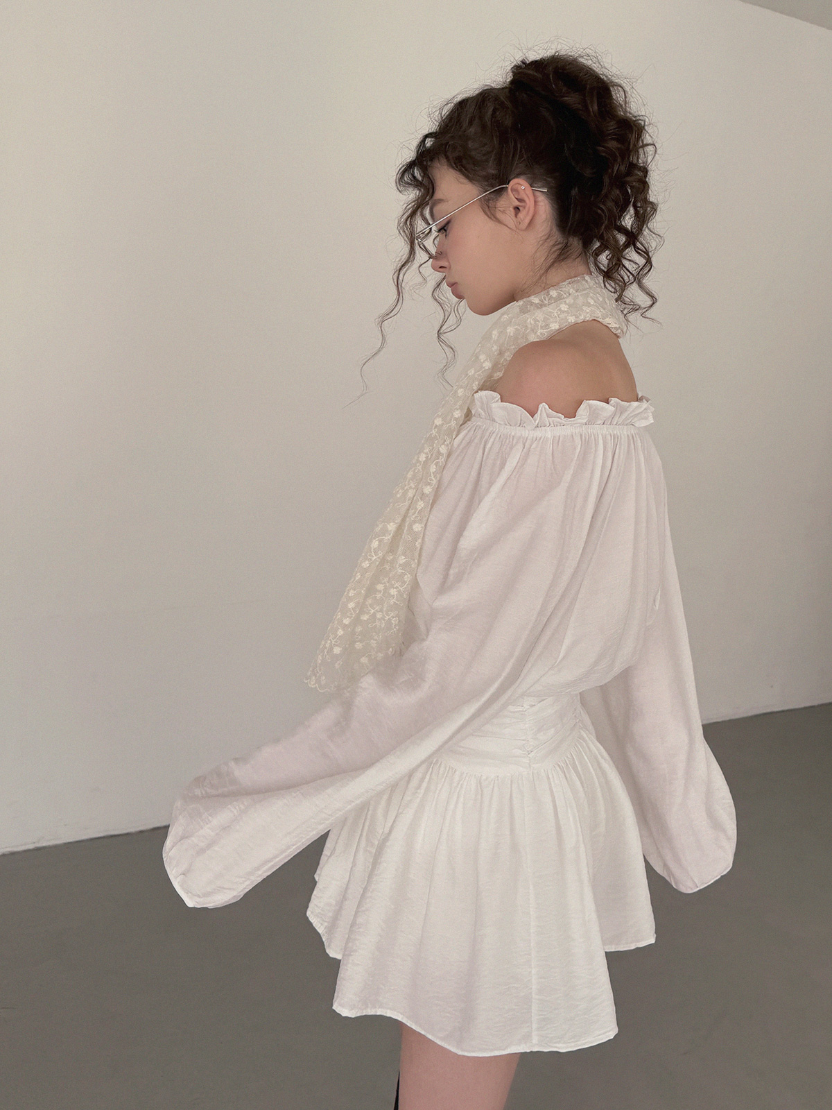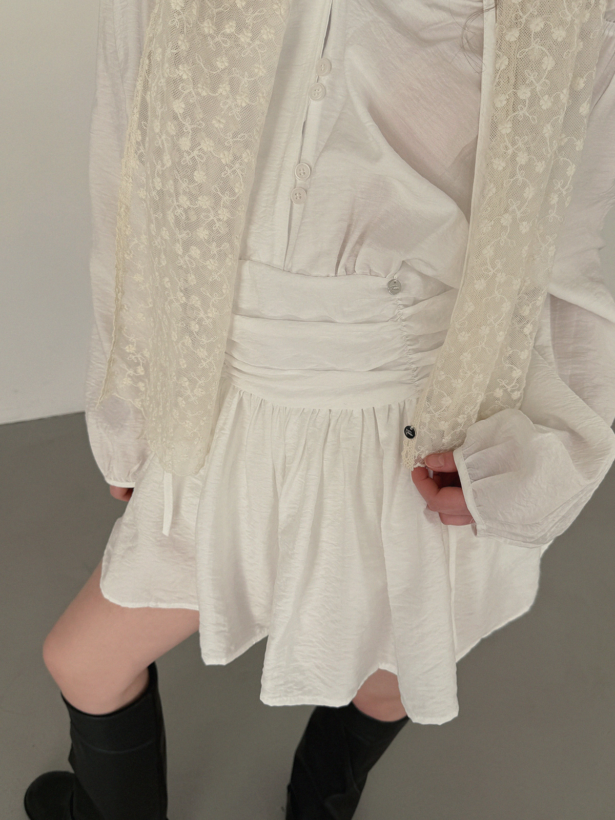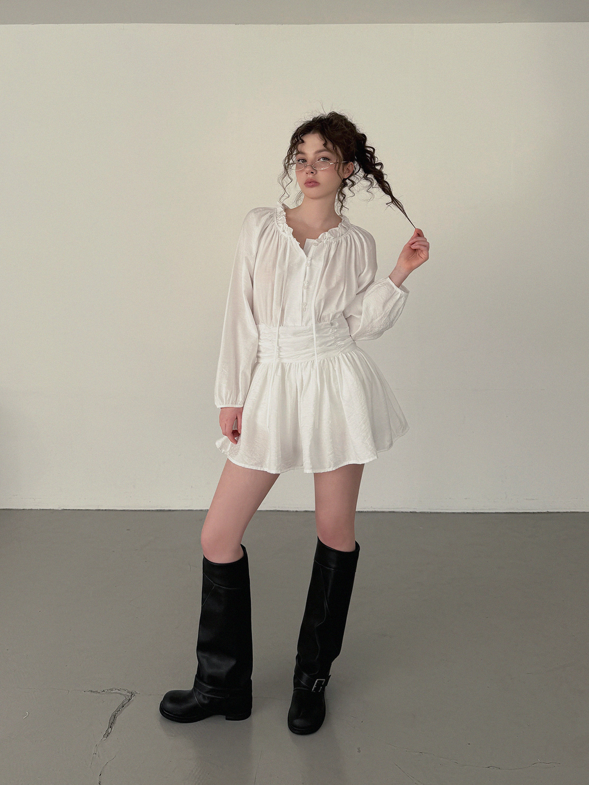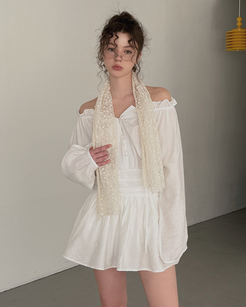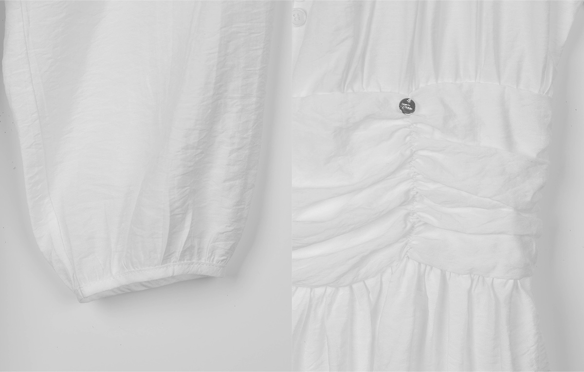 フリルシャーリング長袖ミニワンピース