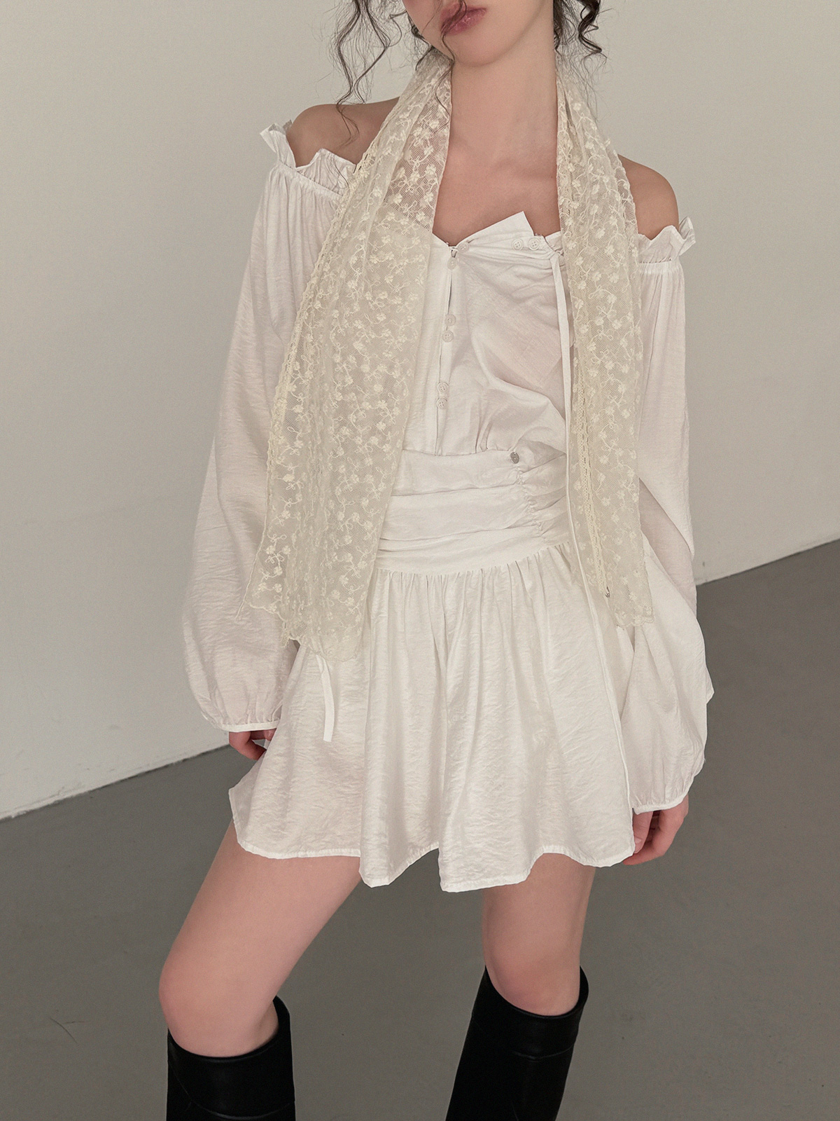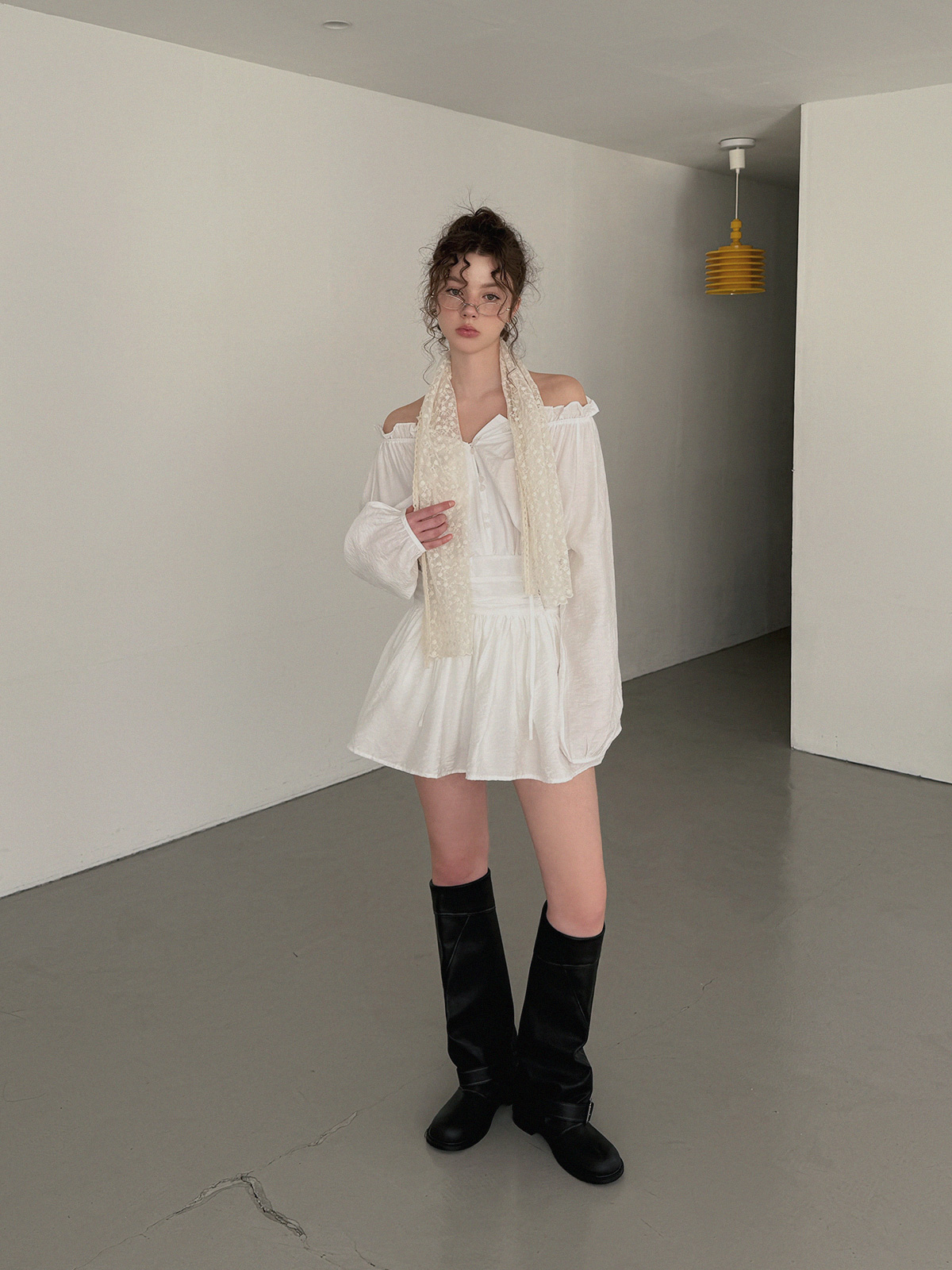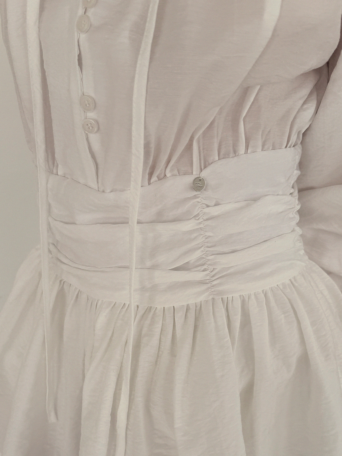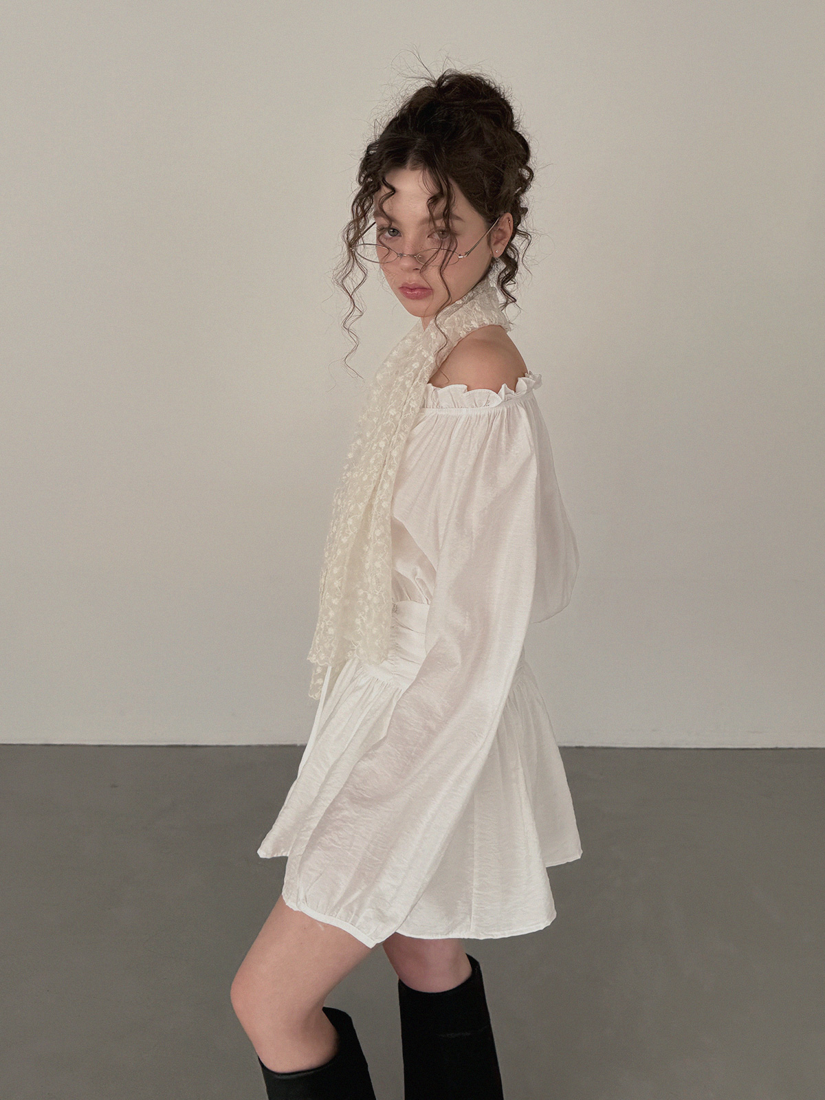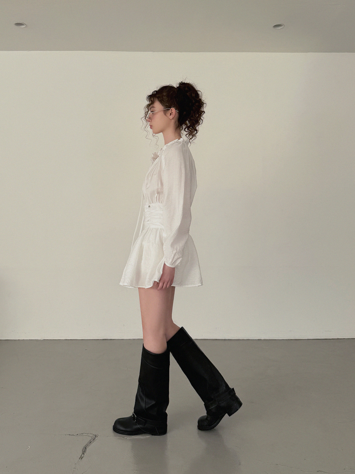 フリルシャーリング長袖ミニワンピース