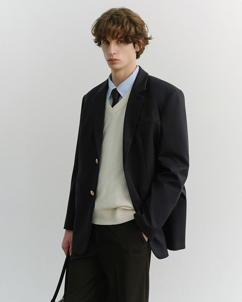 UNISEX 2 BUTTON WOOL BLAZER NAVY_M_UDJA6A102N2