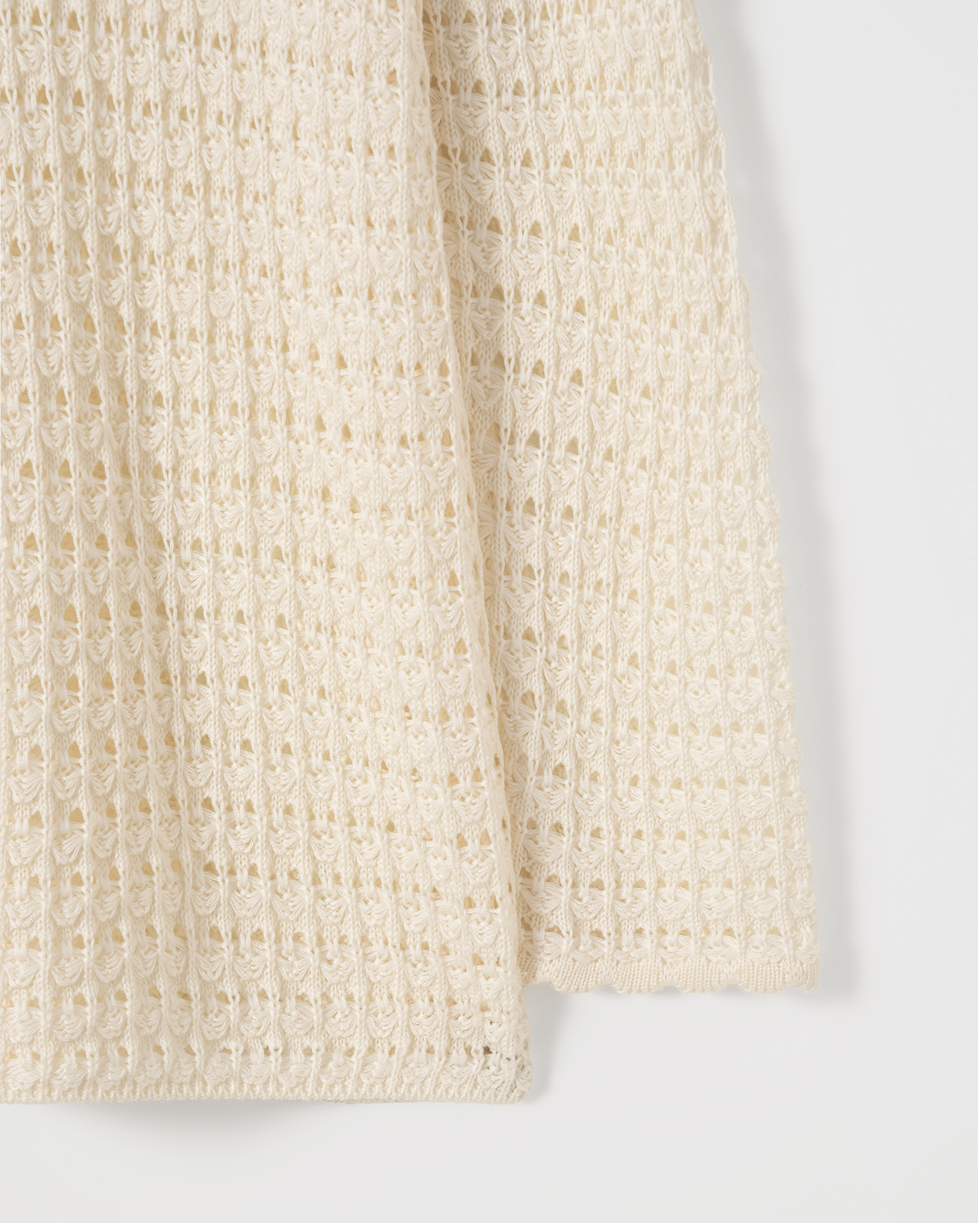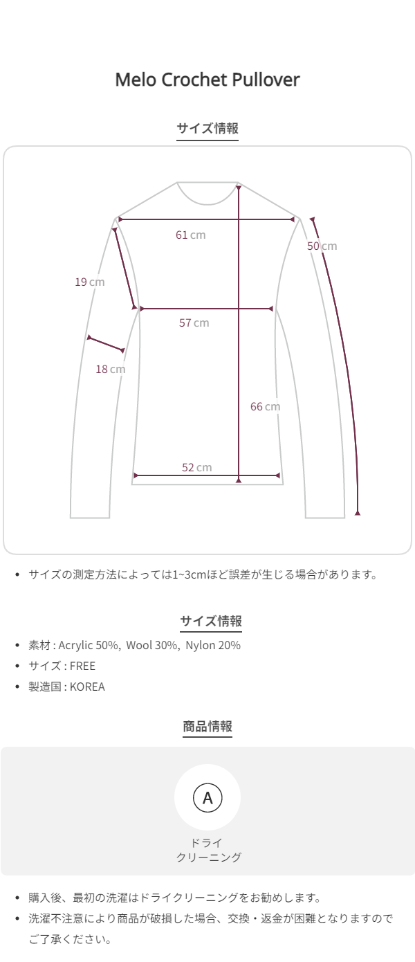 手編みのような立体的な編み模様が魅力の Melo Crochet Pullover(メロ クロシェ プルオーバー) です。