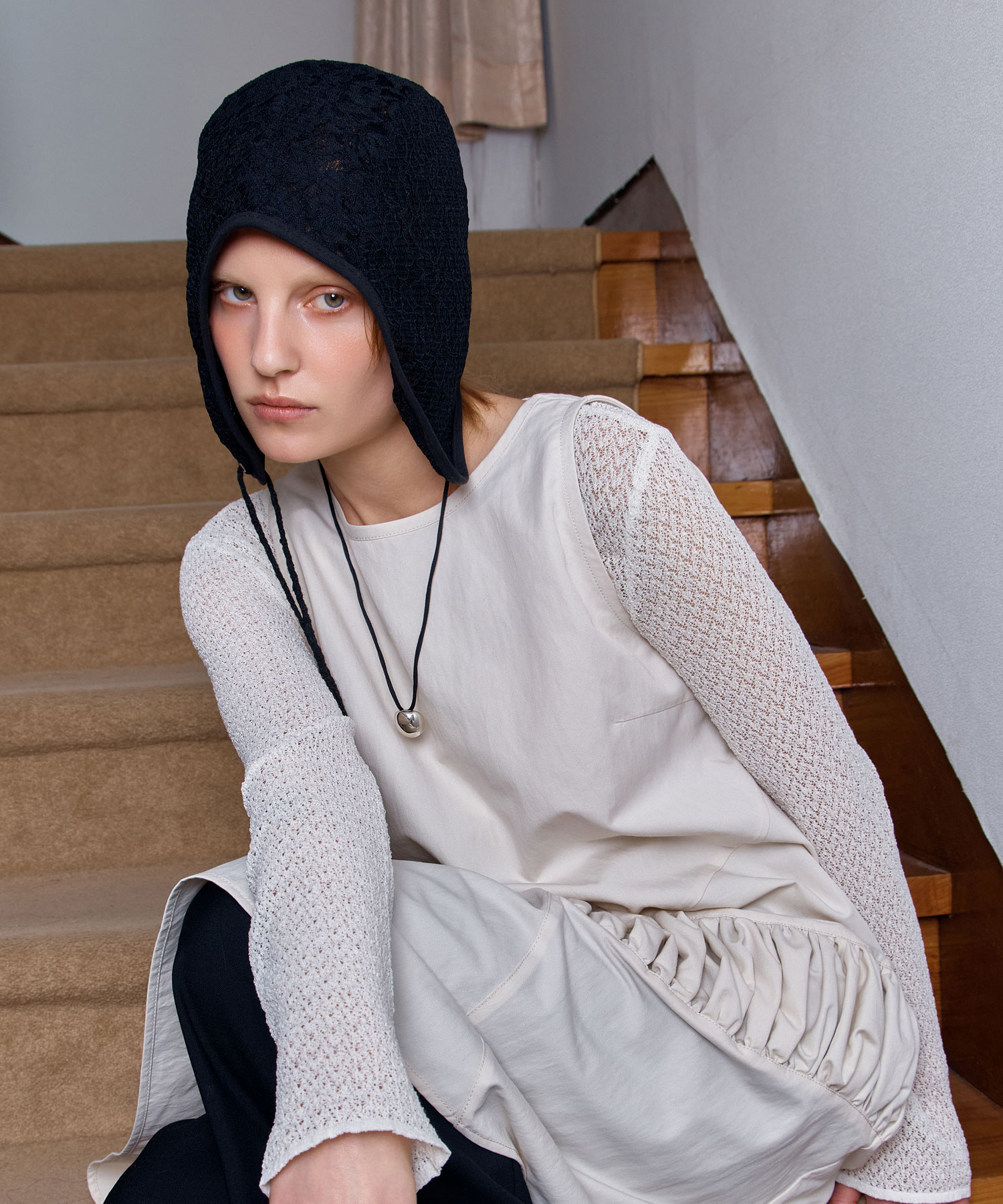 AVIATOR HAT / DOUBLE LACE / BLACK(薄手ノレース 航空帽)