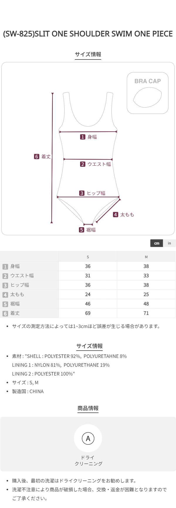 (SW-825)SLIT ONE SHOULDER SWIM ONE PIECE