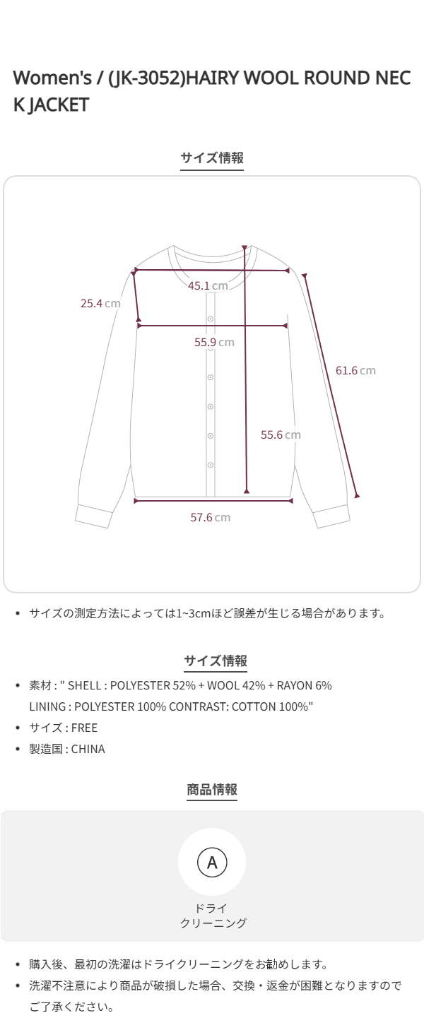 (JK-3052)HAIRY WOOL ROUND NECK JACKET