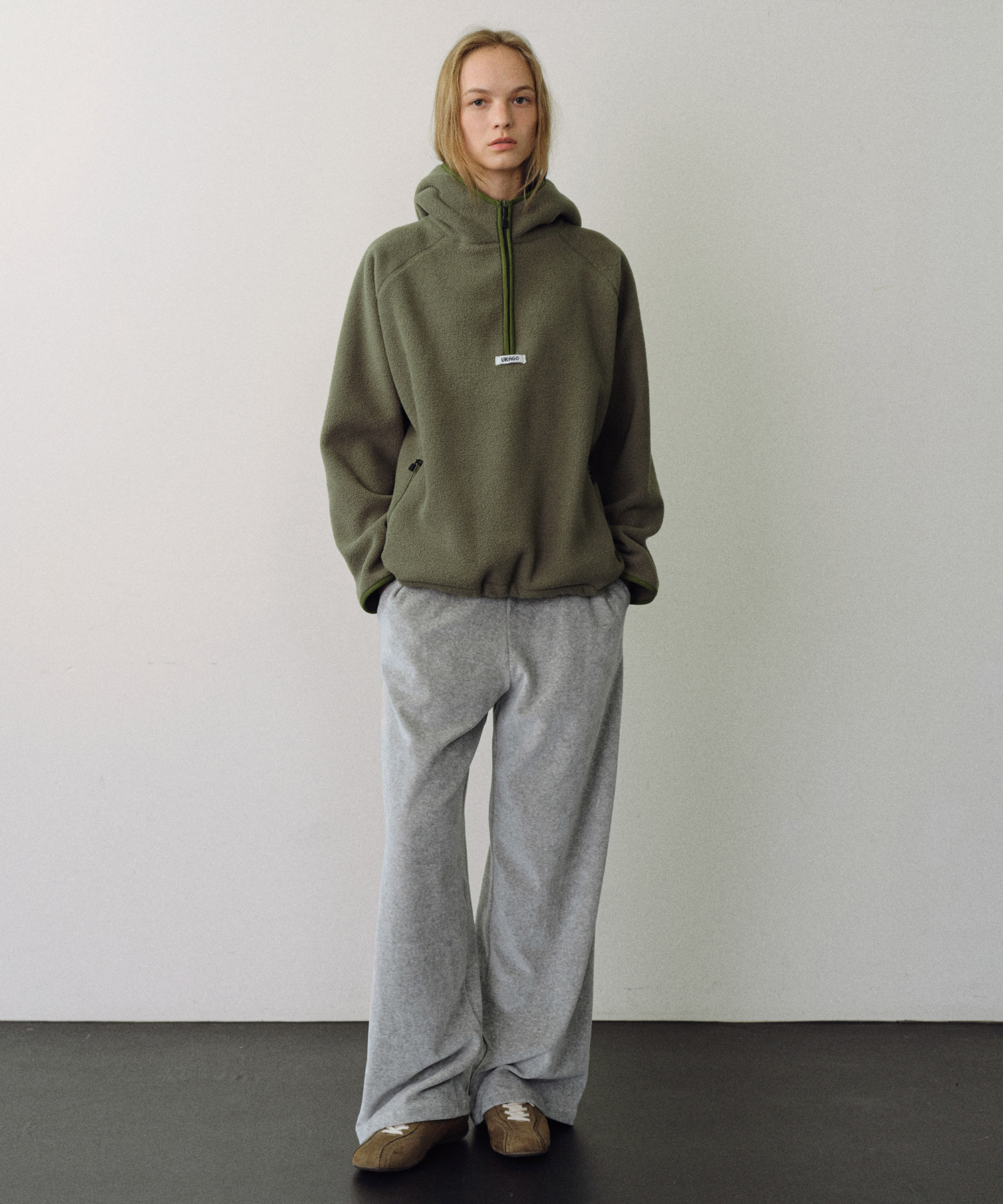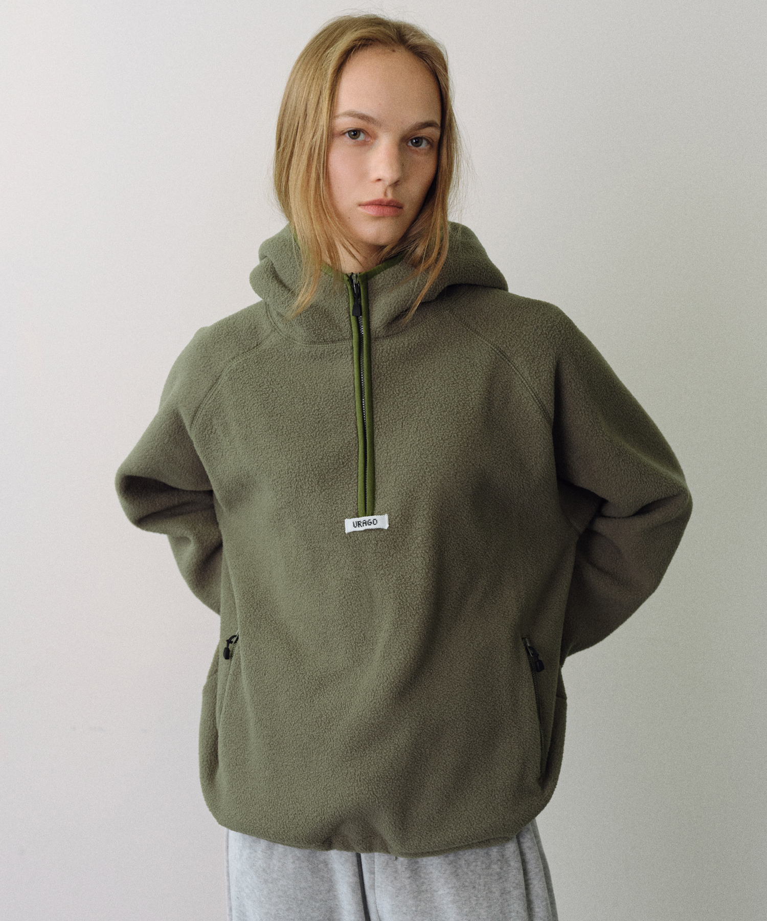 Fleece hoodie half zip-up_3colors