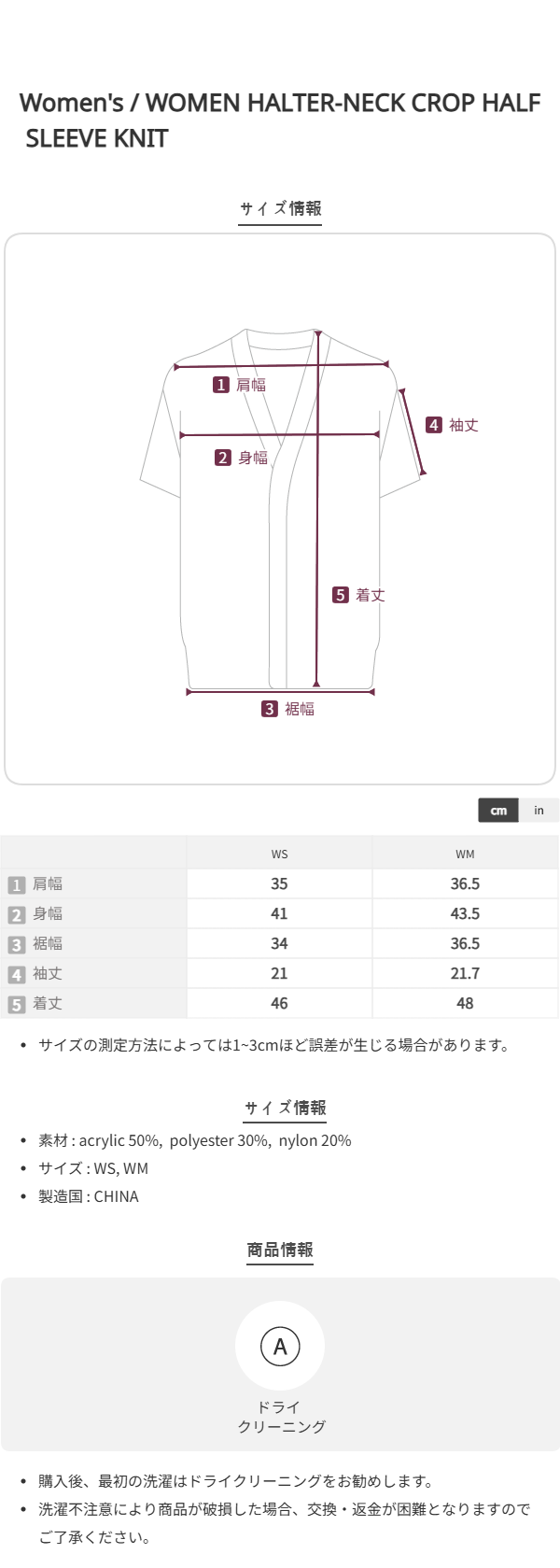 このブランドの商品はお客様の都合による交換および返品はお受けいたしかねます。十分にご注意の上、ご注文をお願い致します。
