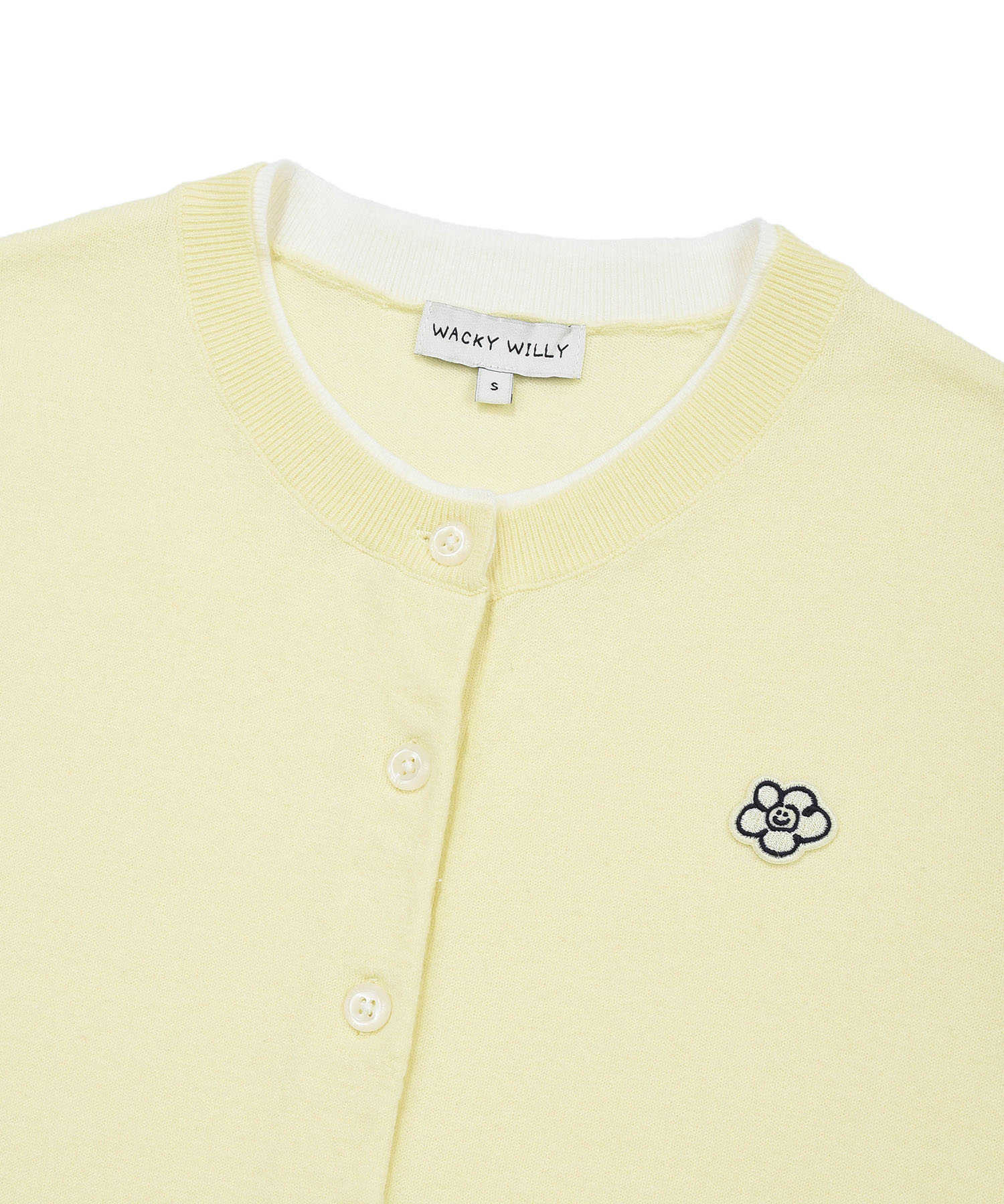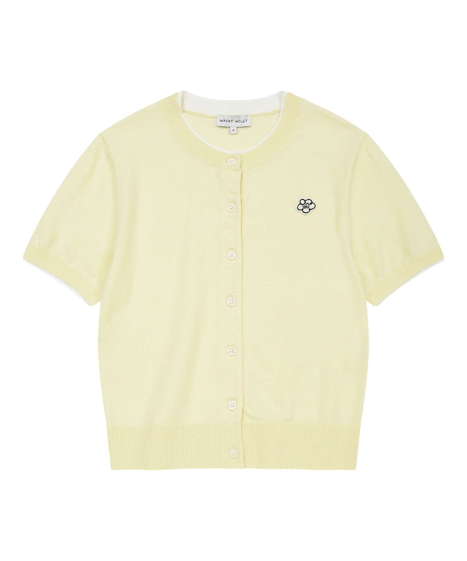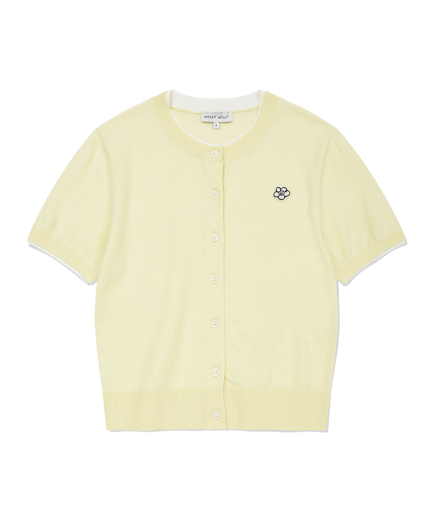 Women's Lily Wappen Round Neck Short Sleeve Cardigan Yellow