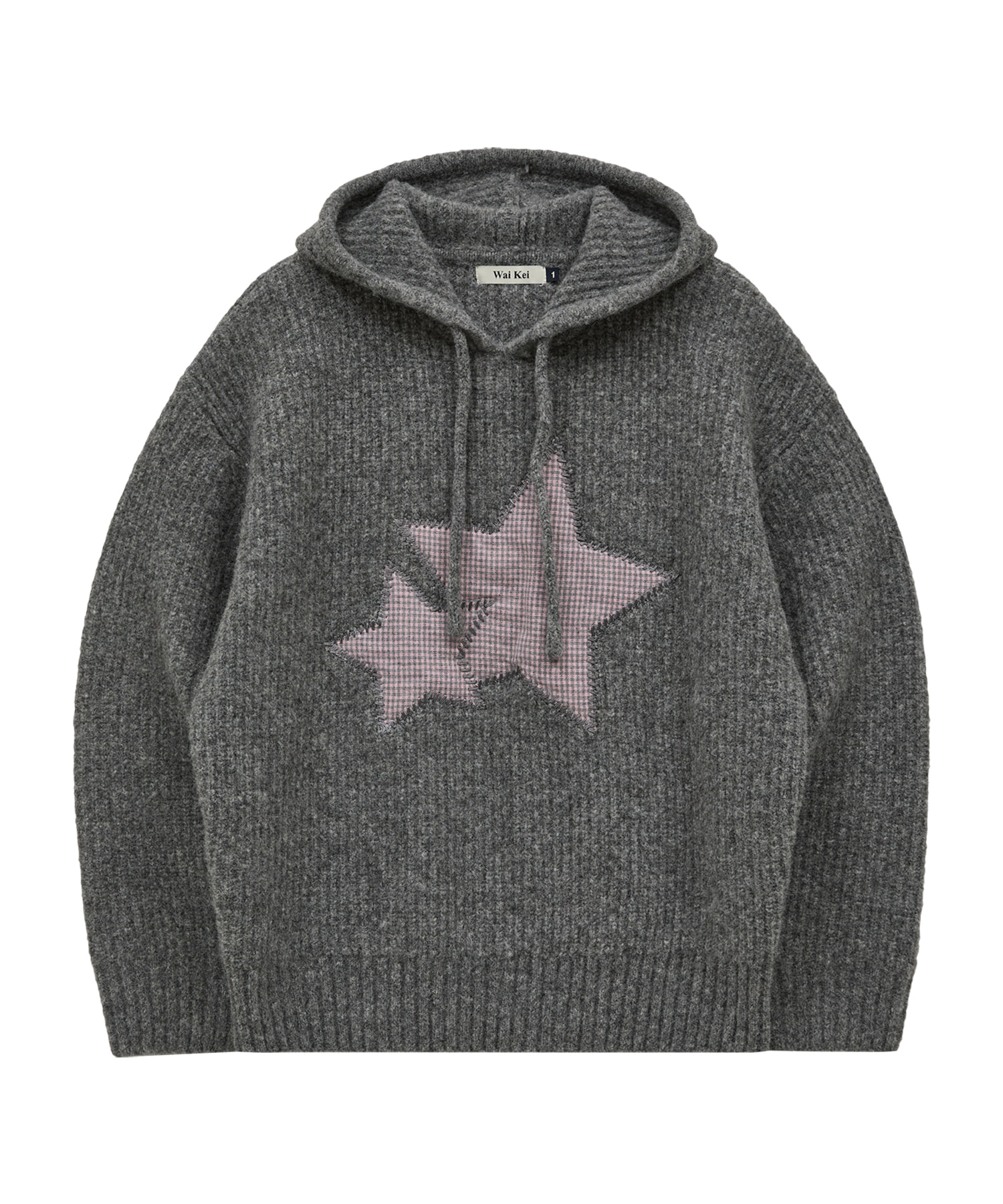 【購入特典】Big Star Check Applique Hood Knit GREY