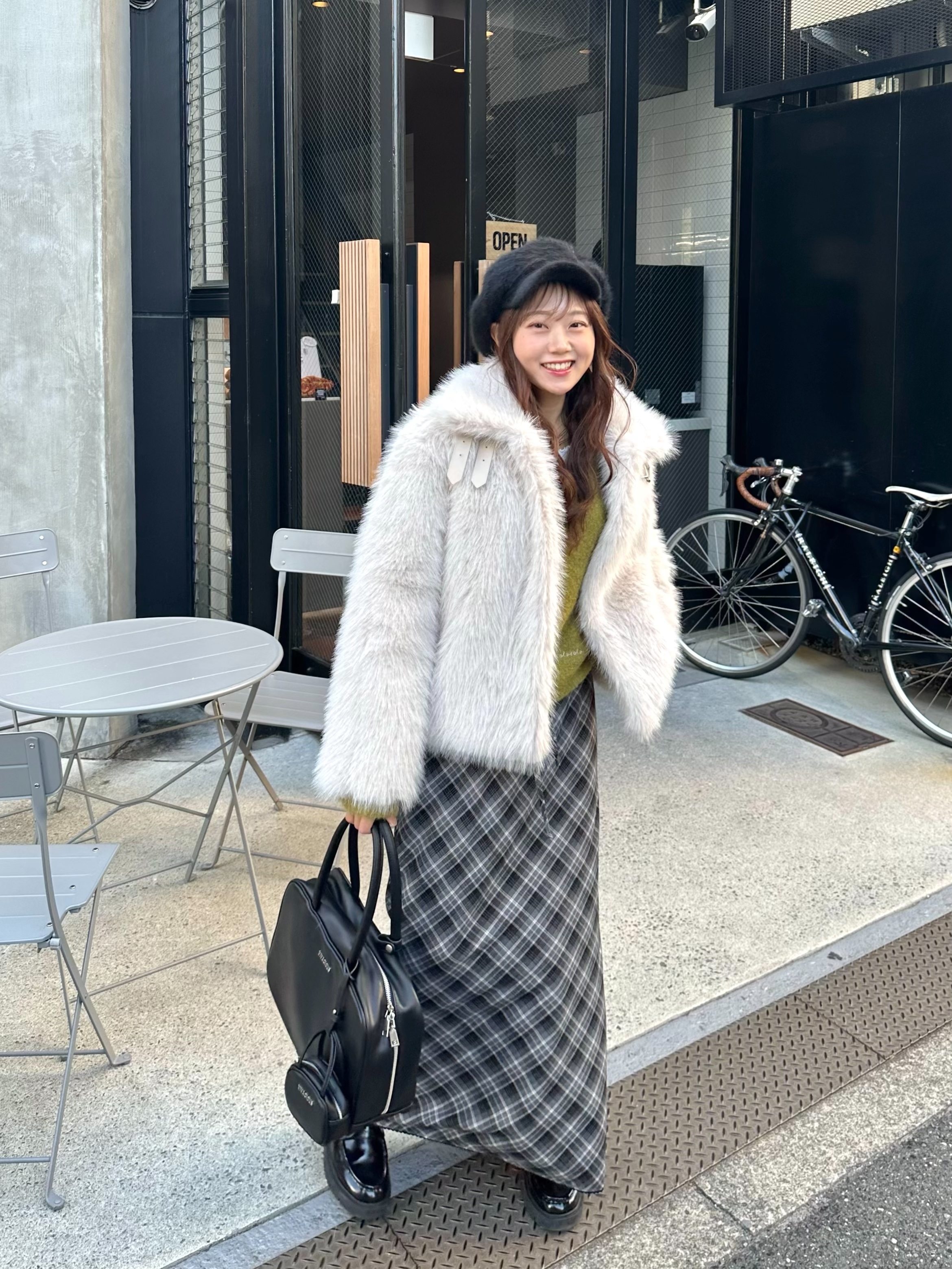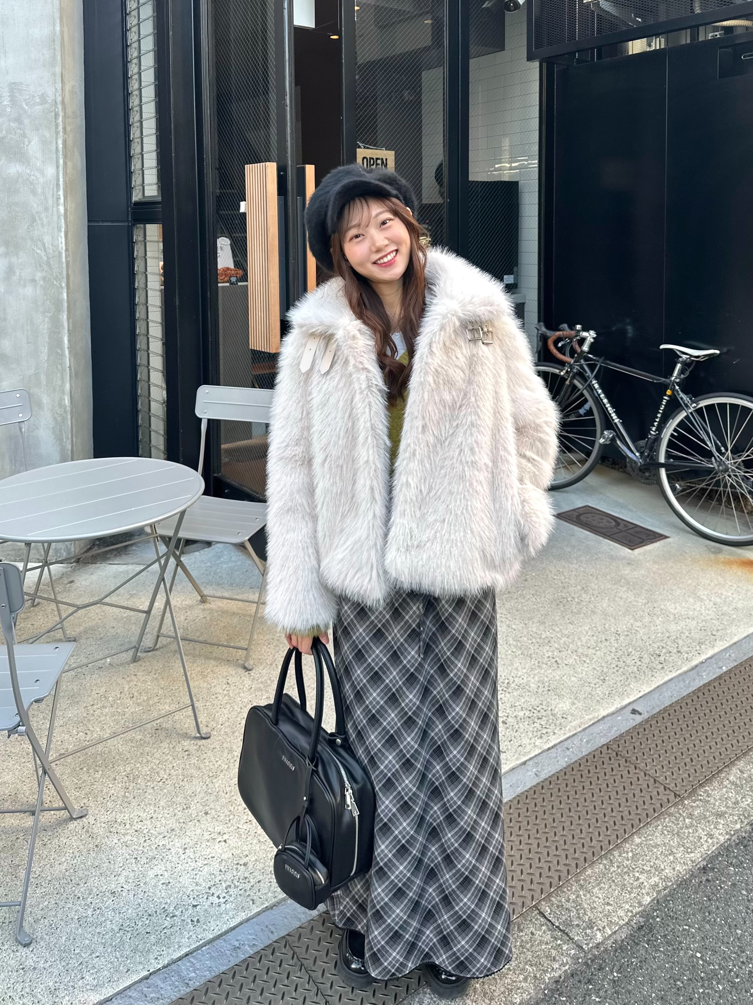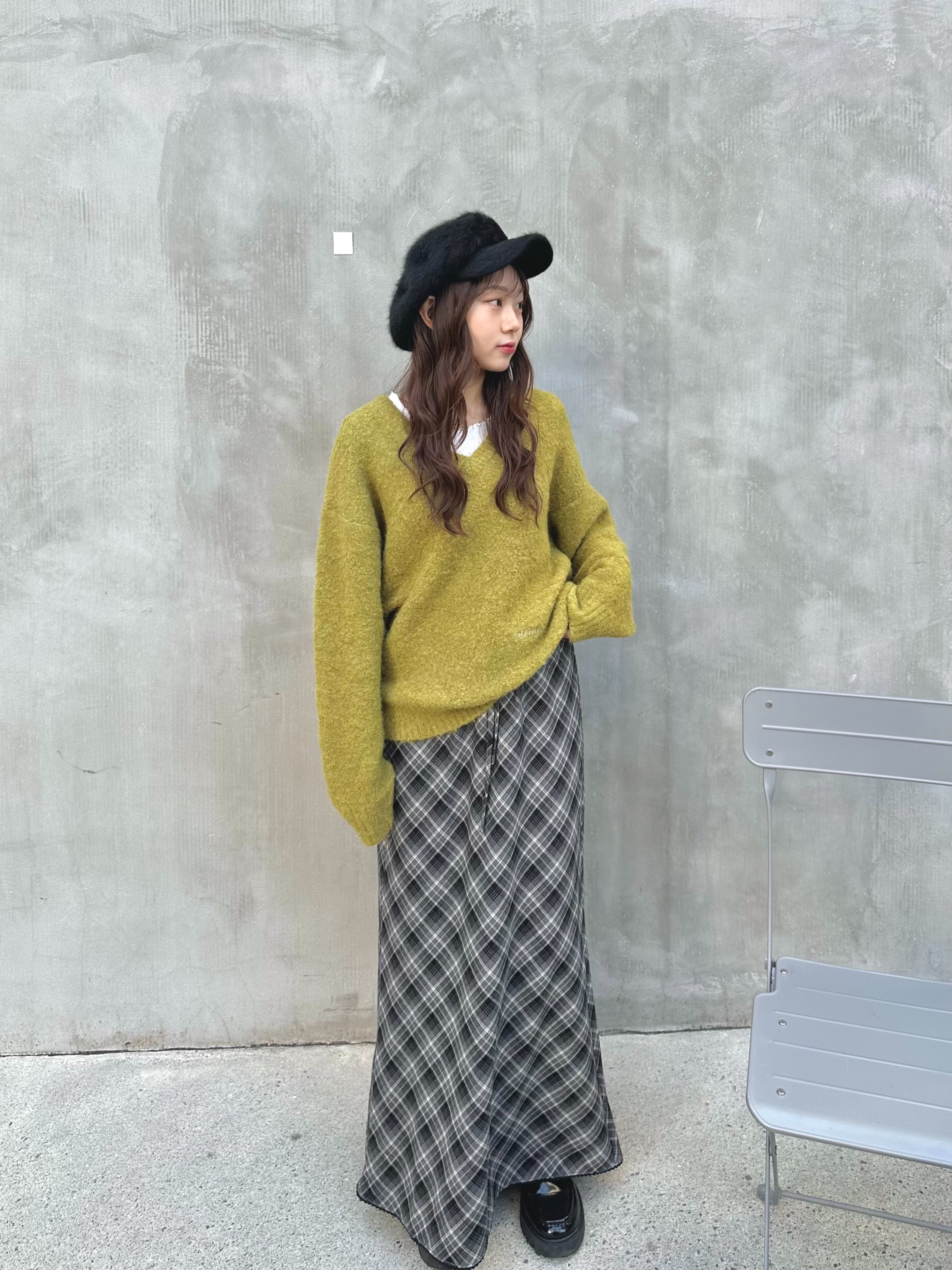 [NAMI x rolarola] CHECK SLIM LONG SKIRT GRAY
