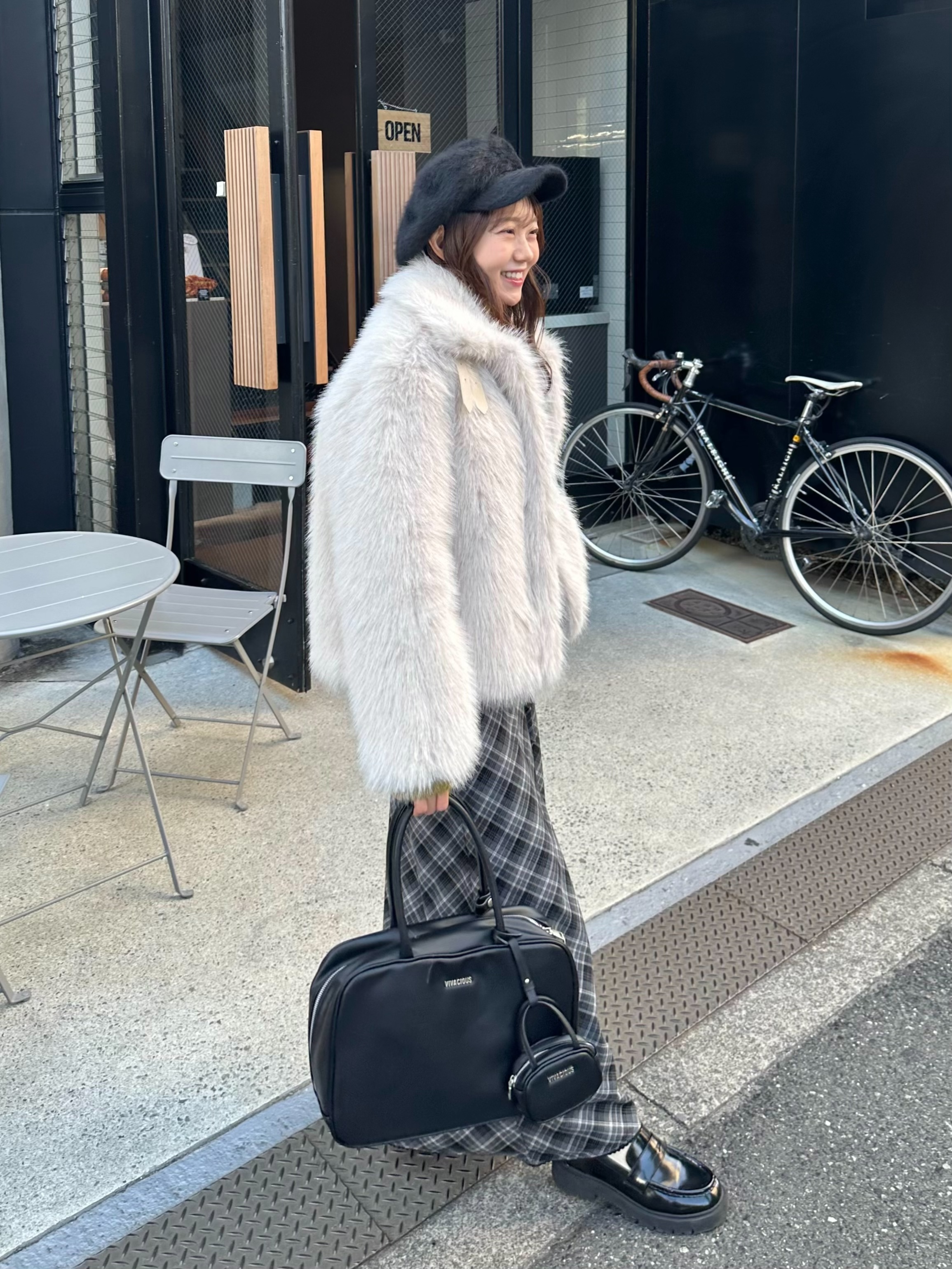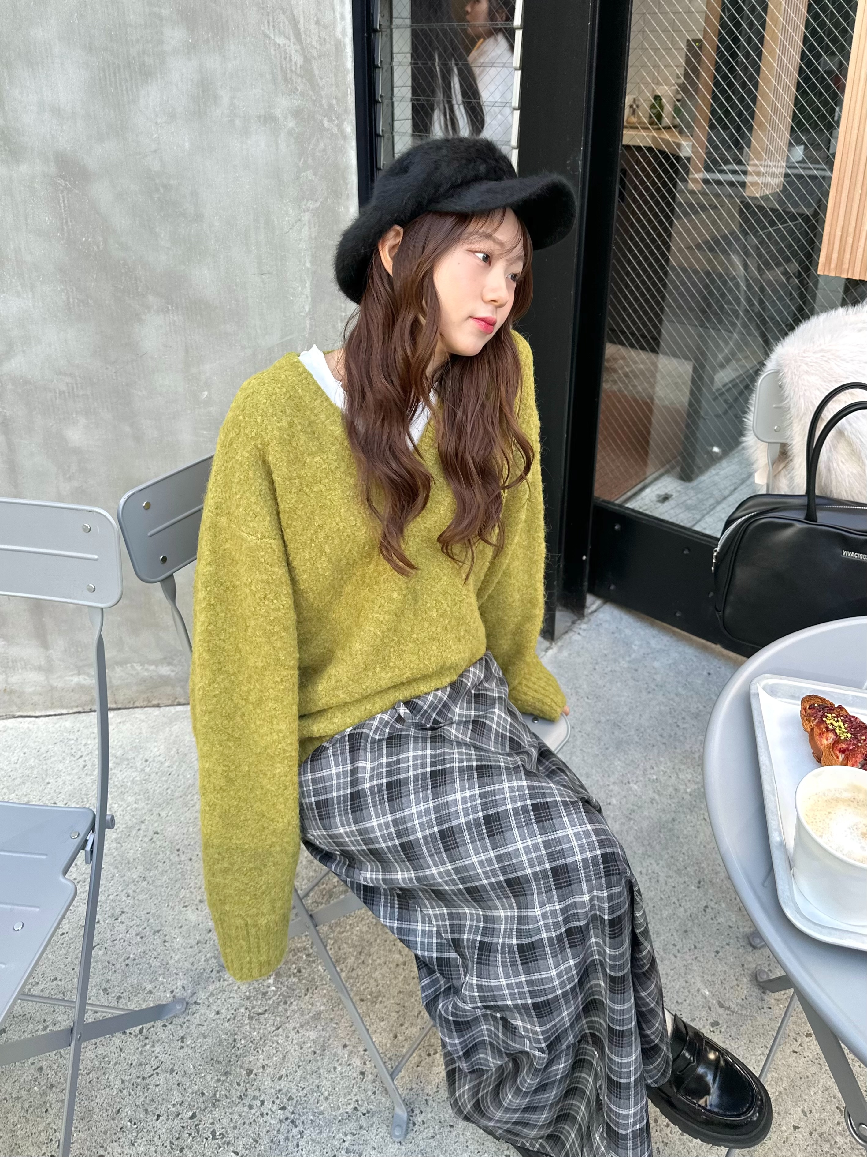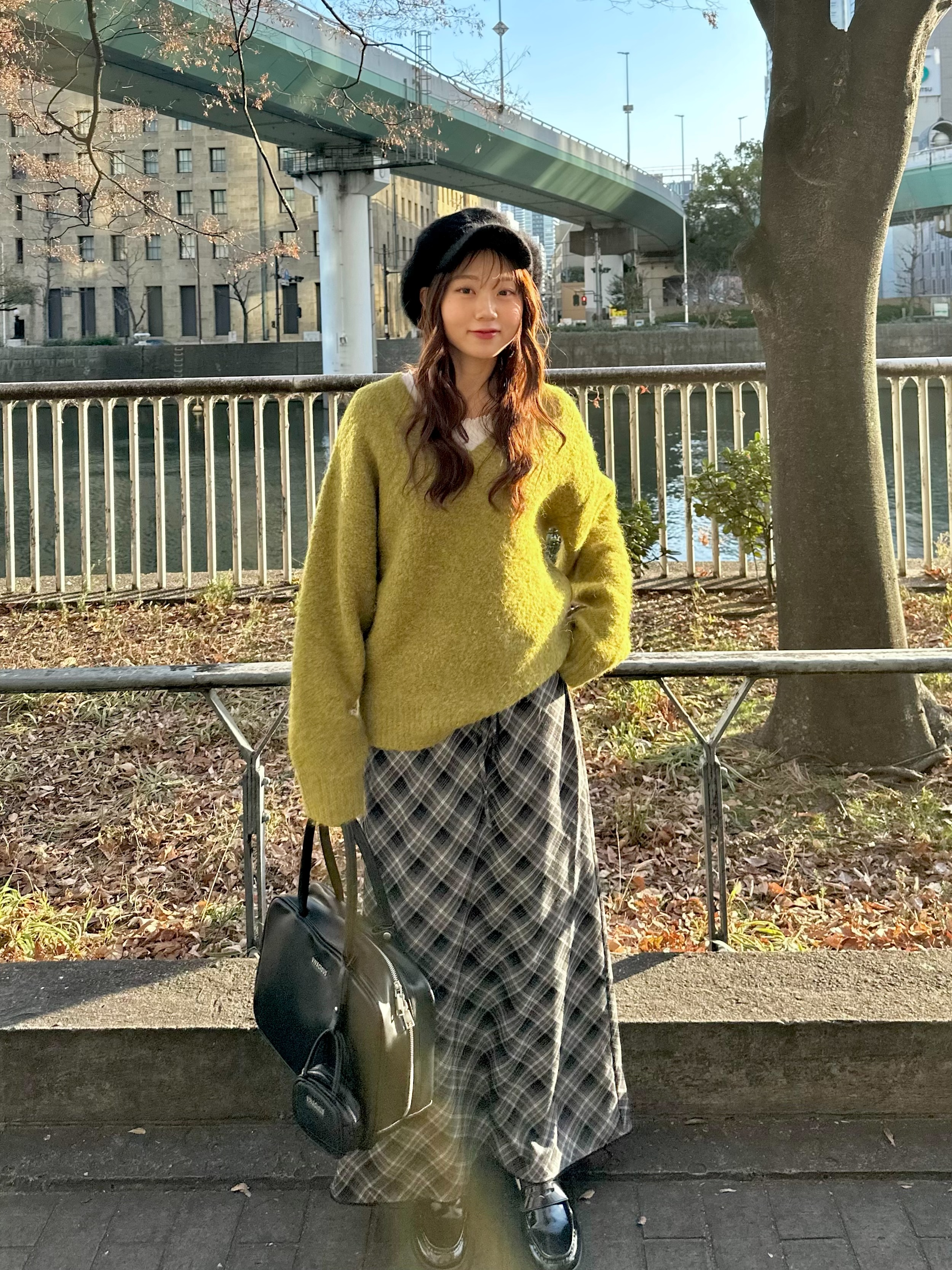 [NAMI x rolarola] CHECK SLIM LONG SKIRT GRAY