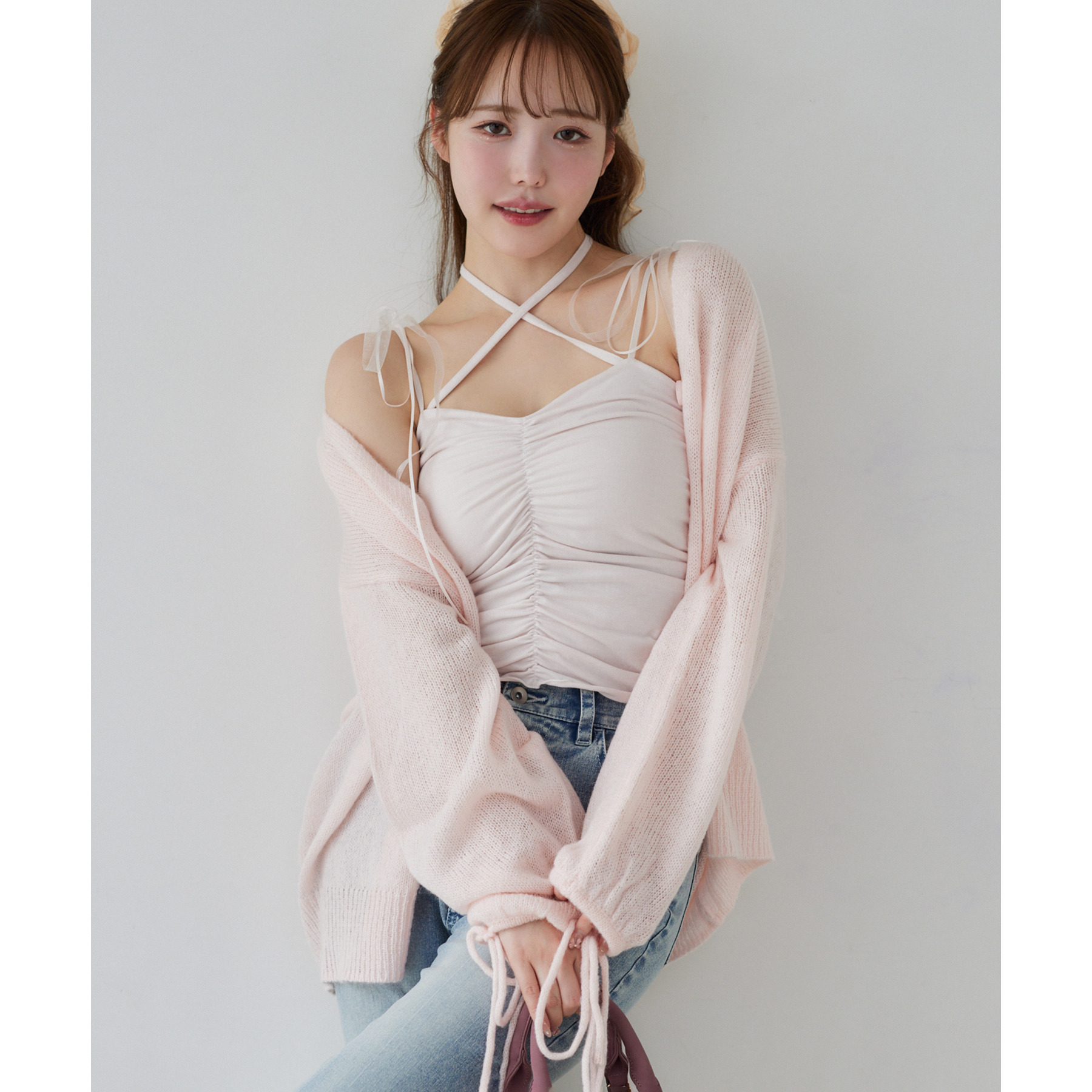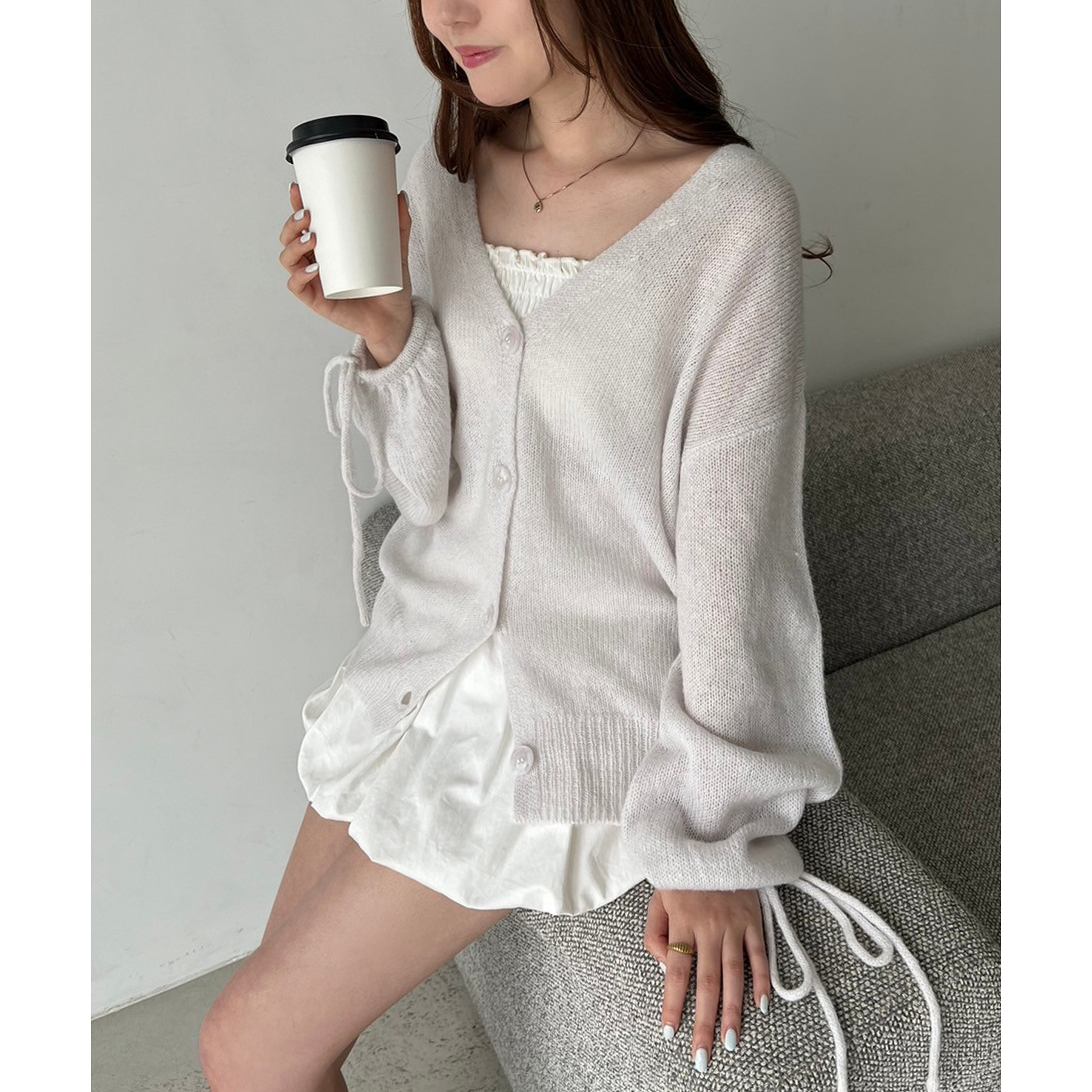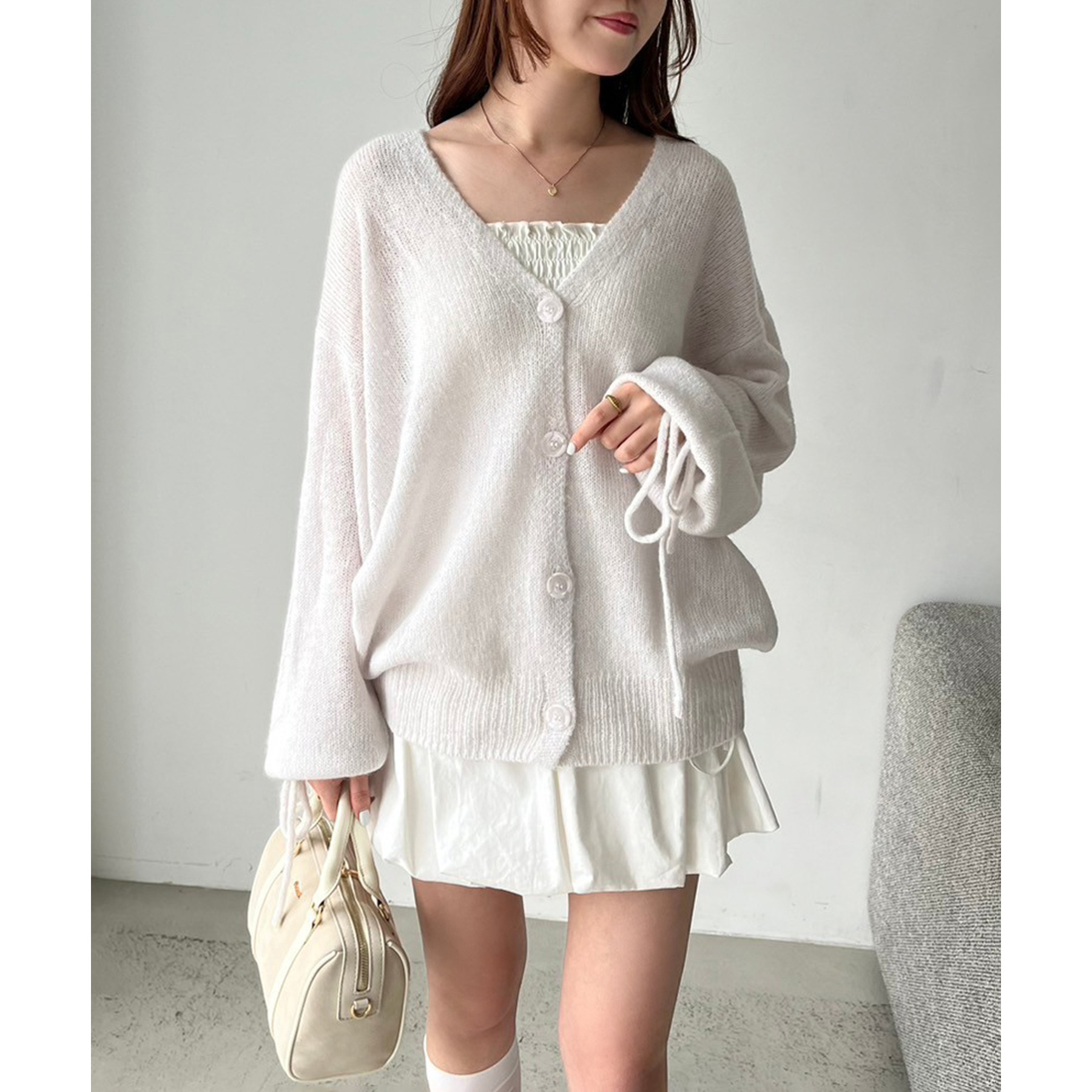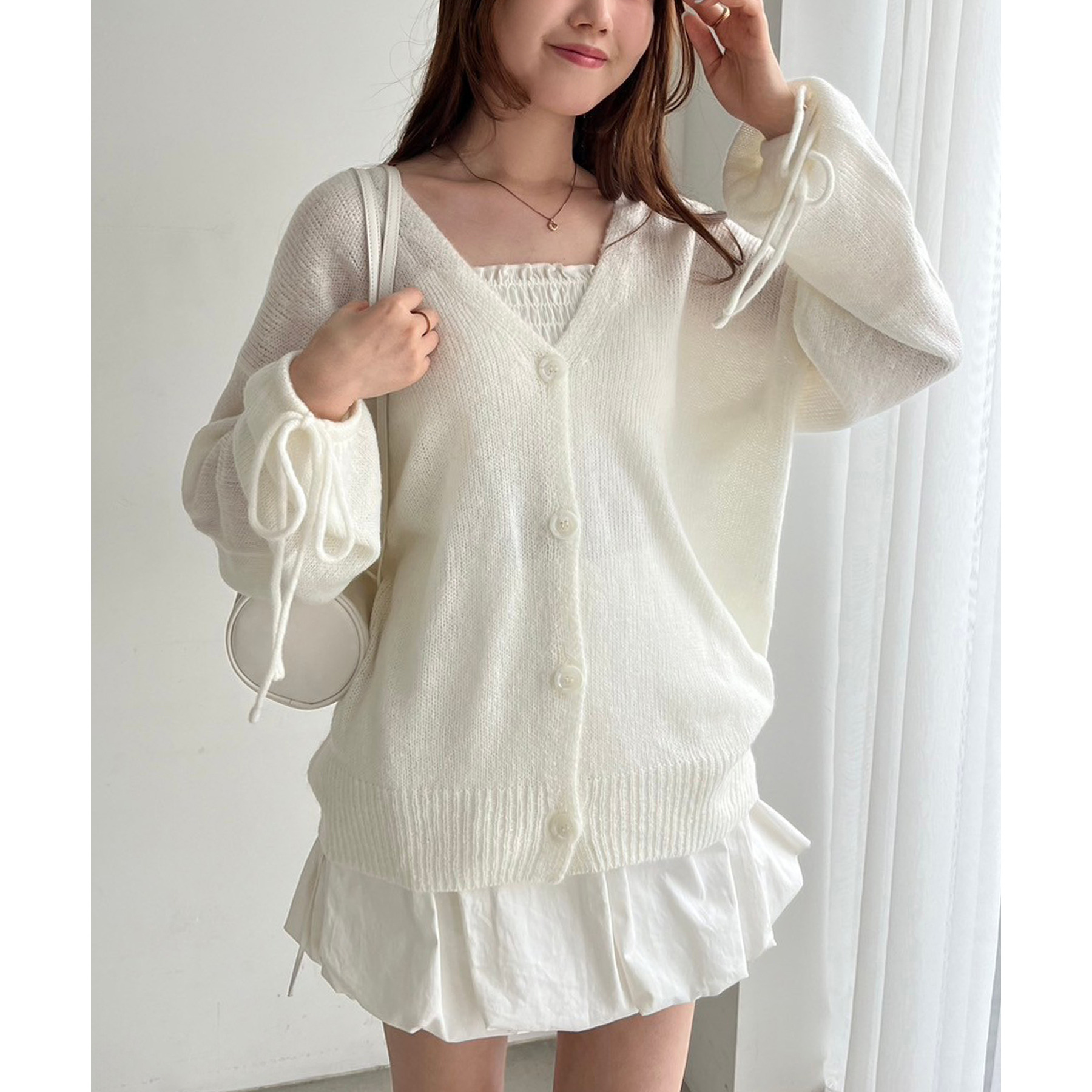 袖リボンロングカーディガン