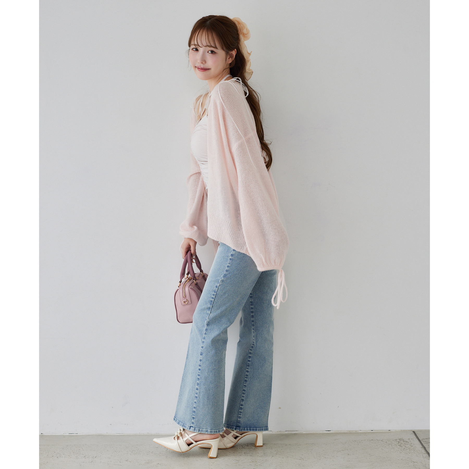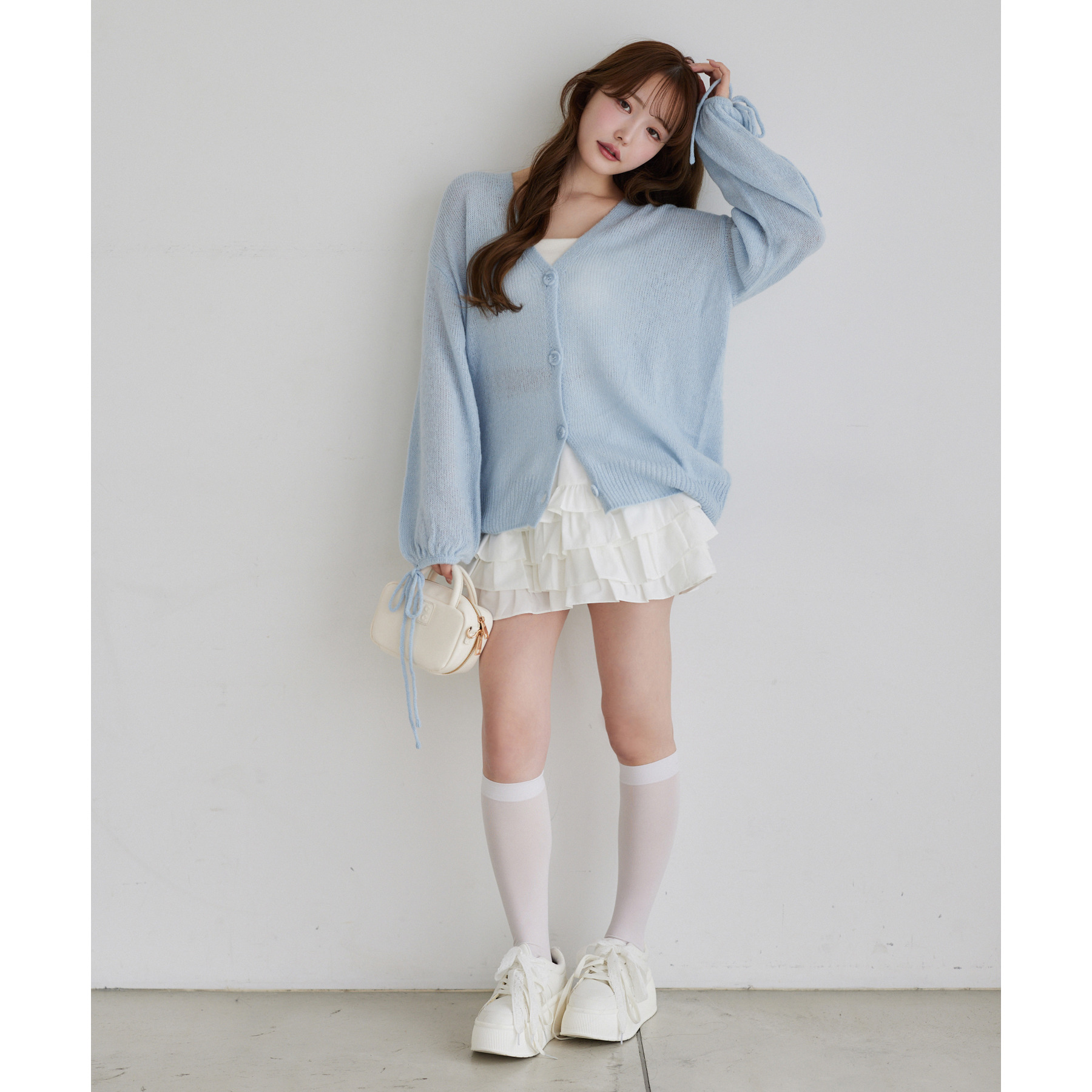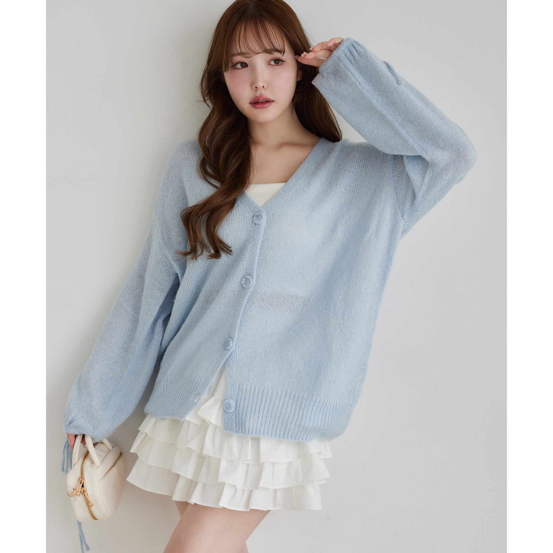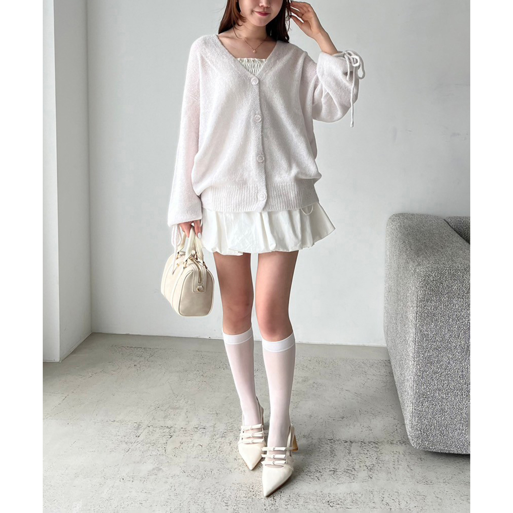 袖リボンロングカーディガン
