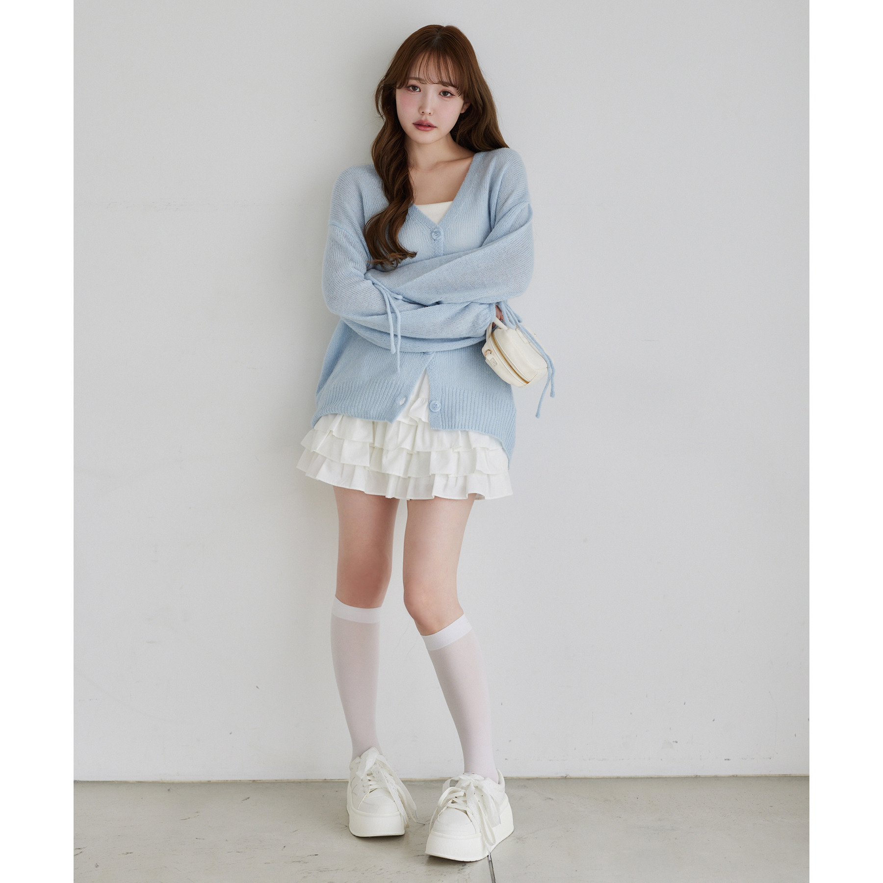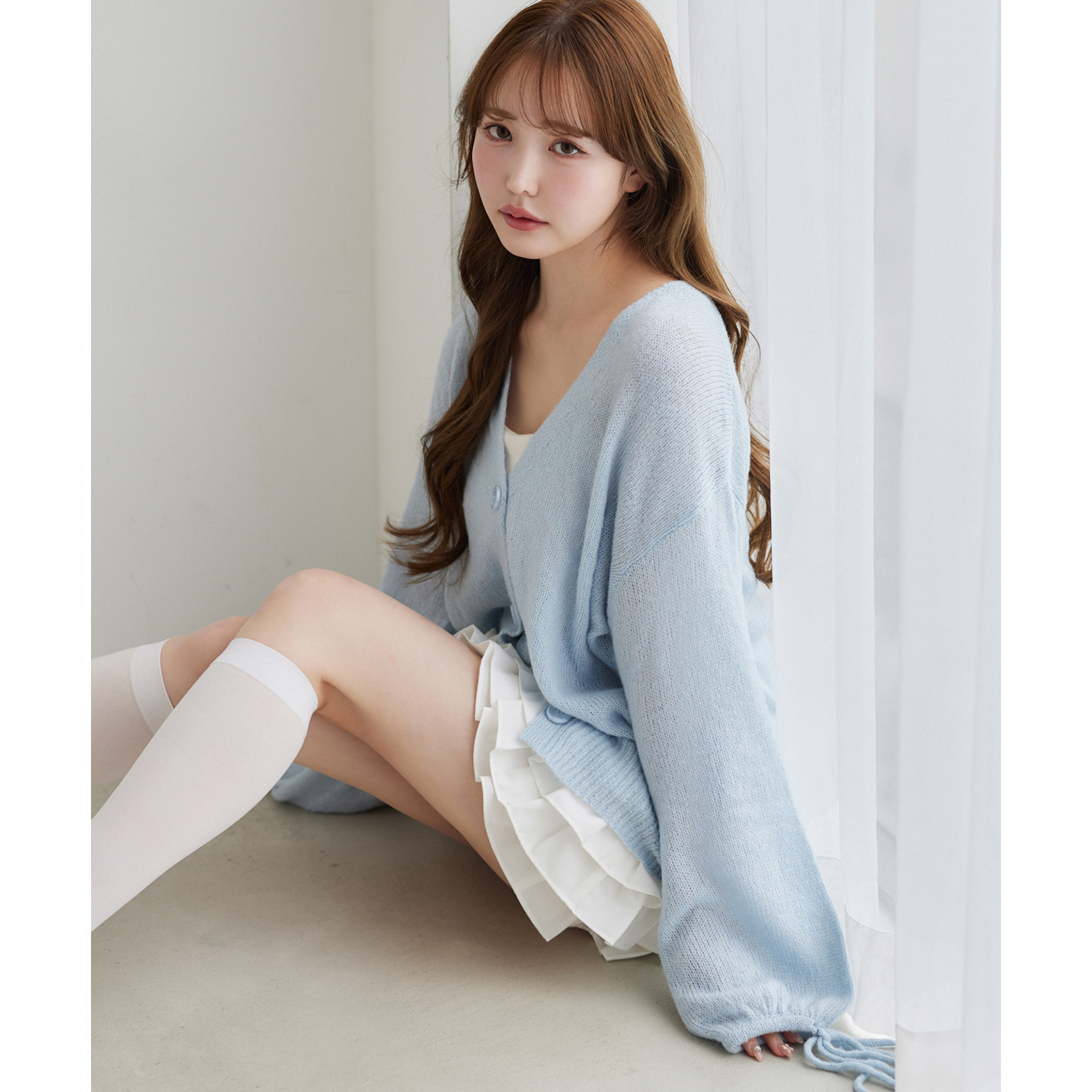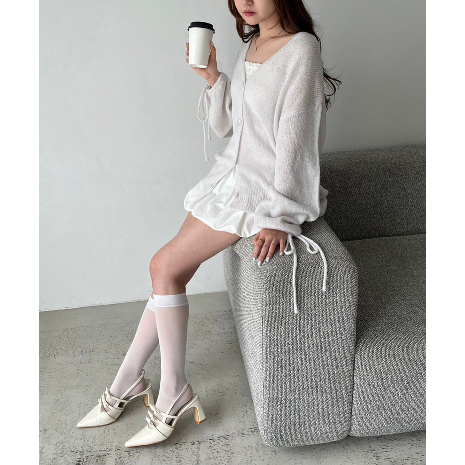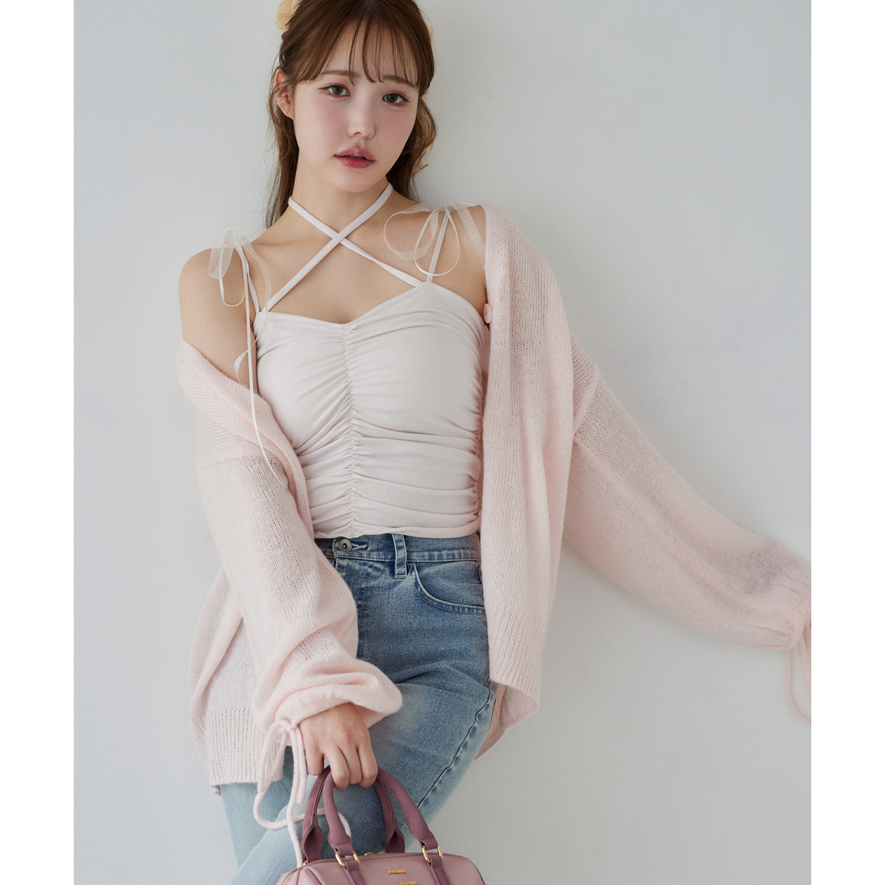 袖リボンロングカーディガン