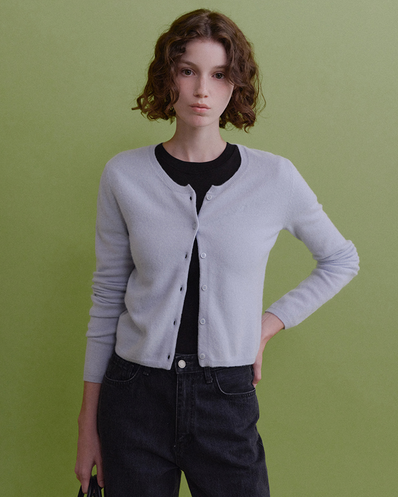 Alto Round Knit Cardigan (Soft Blue)