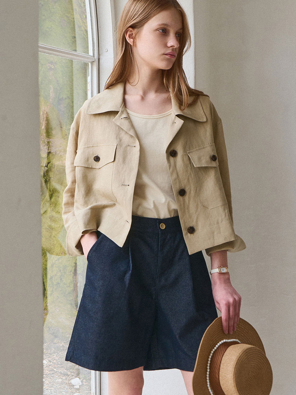 Ease linen crop jacket_2 Colors