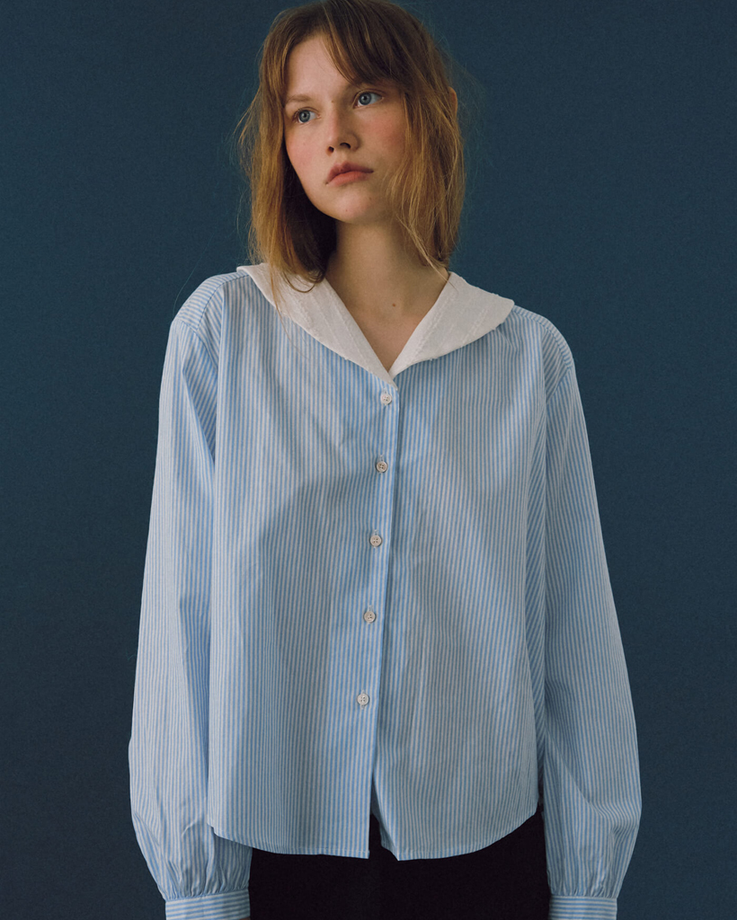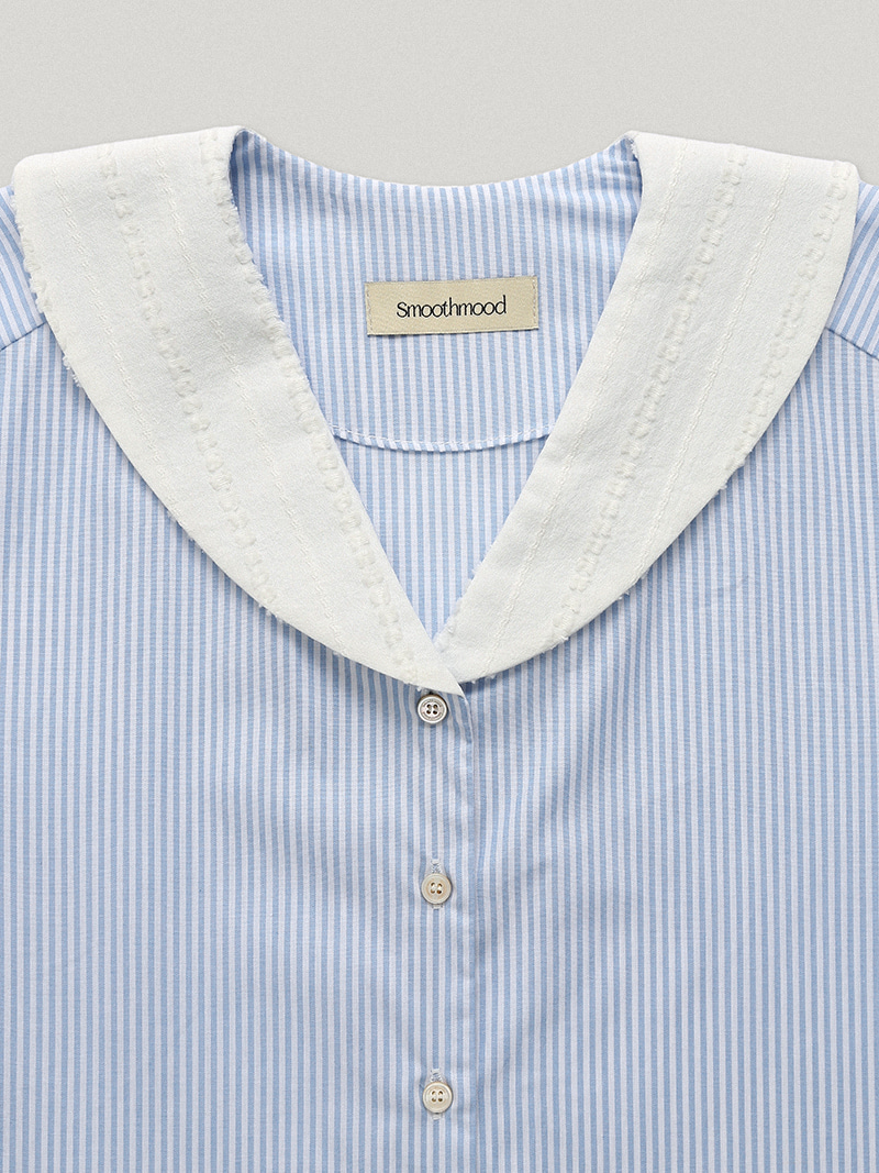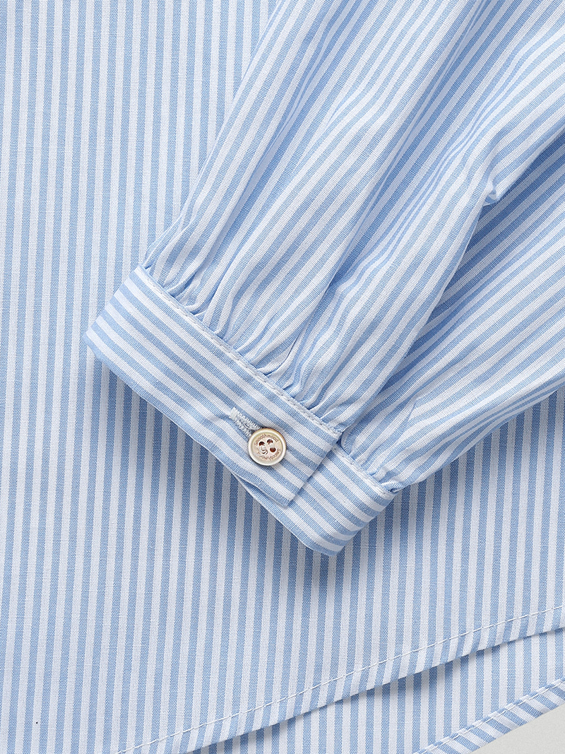 これはバンビーニブラウスで、フレッシュブリーズ柄が落ち着いたストライプパターンに広がっています。フレッシュな空色とアイボリーのストライプパターン。エセイラーフラップカラーは、焦点となるデザインです。100%柔らかく高品質なコットン素材で作られ、軽量で着心地が良いです。リラックスしたフィット感でリラックスしたシルエットが一日中快適なムードを作り出します。スムームムードのロゴ、真珠貝のボタンがクロージングに付けられ、襟にはさりげない刺繍の質感が施されています。細部に至るまで贅沢に仕上げられています。お気に入りのデニムジーンズ、ショートパンツ、アウターウェアと組み合わせて、日常生活の中で、 リラックスしながらガールっぽいポイントとして楽しむのもおすすめです。コットン100%リラックスフィットセーラーフラップカラー、スムースムードロゴ、マザーオブパールボタン