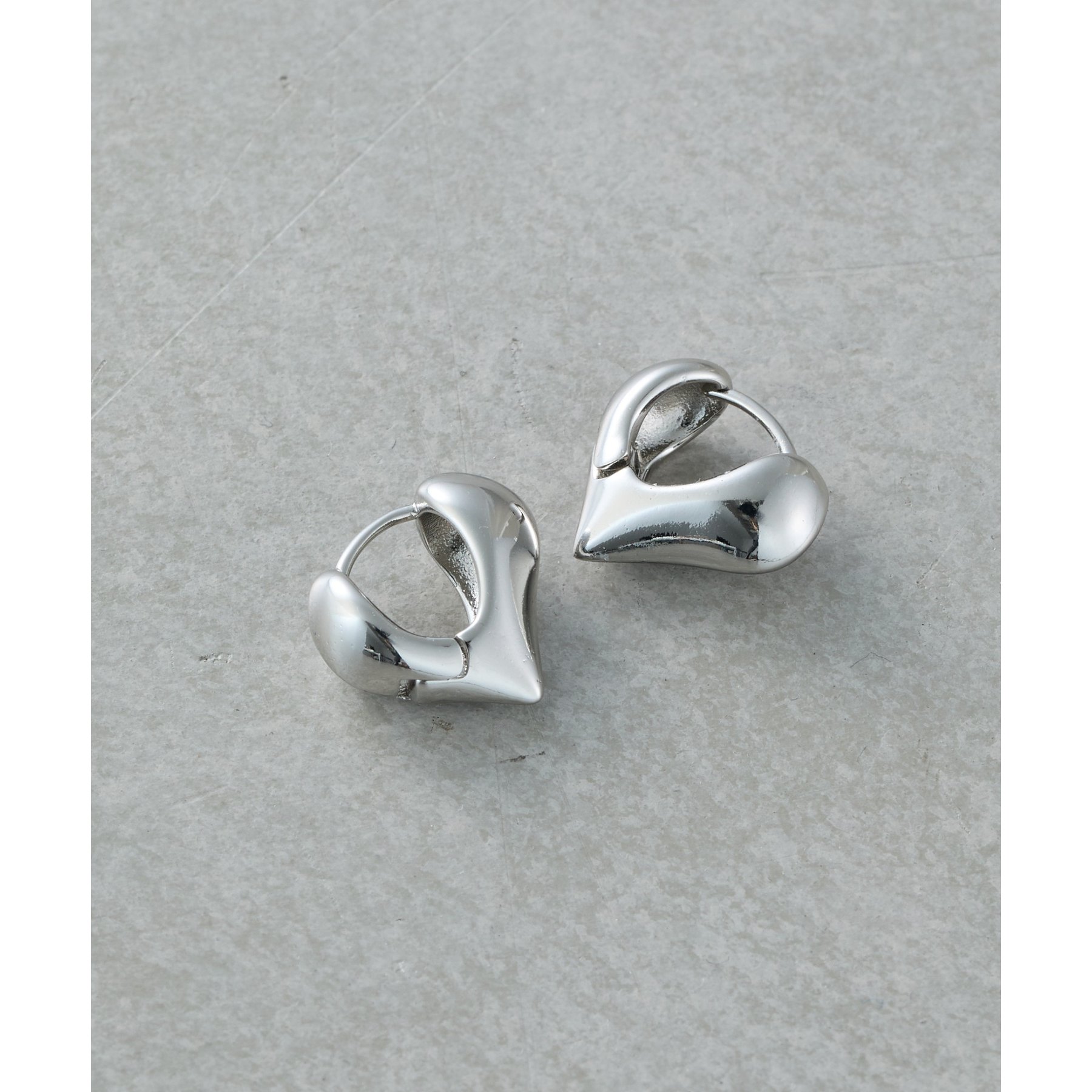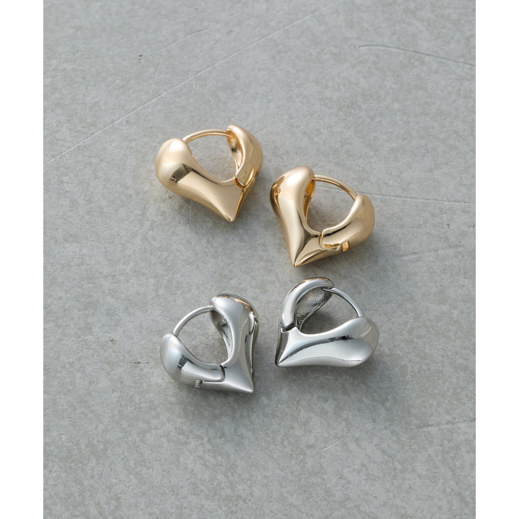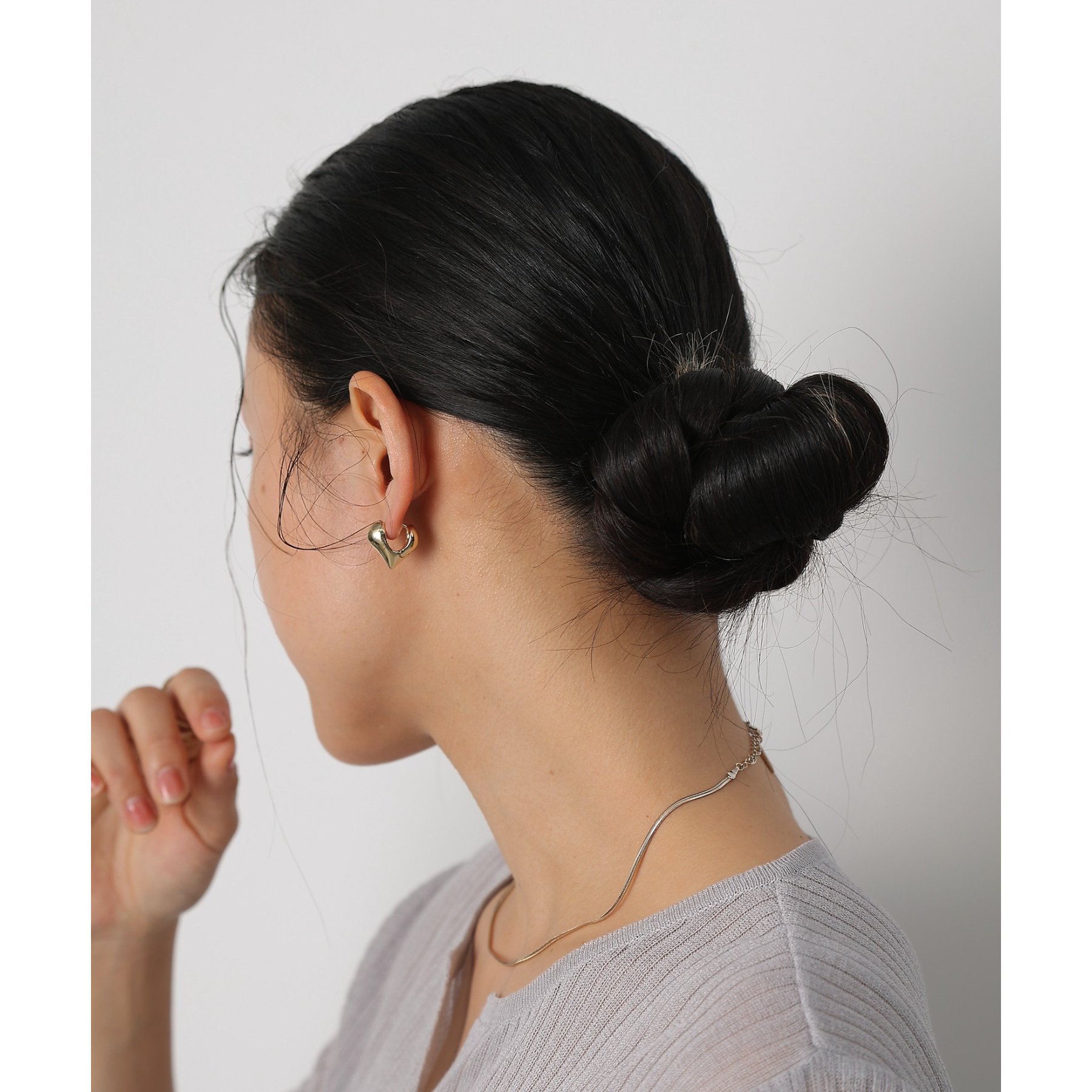 立体的なハートモチーフをフープピアスに仕上げたシンプルでありながらもトレンド感のあるデザイン。