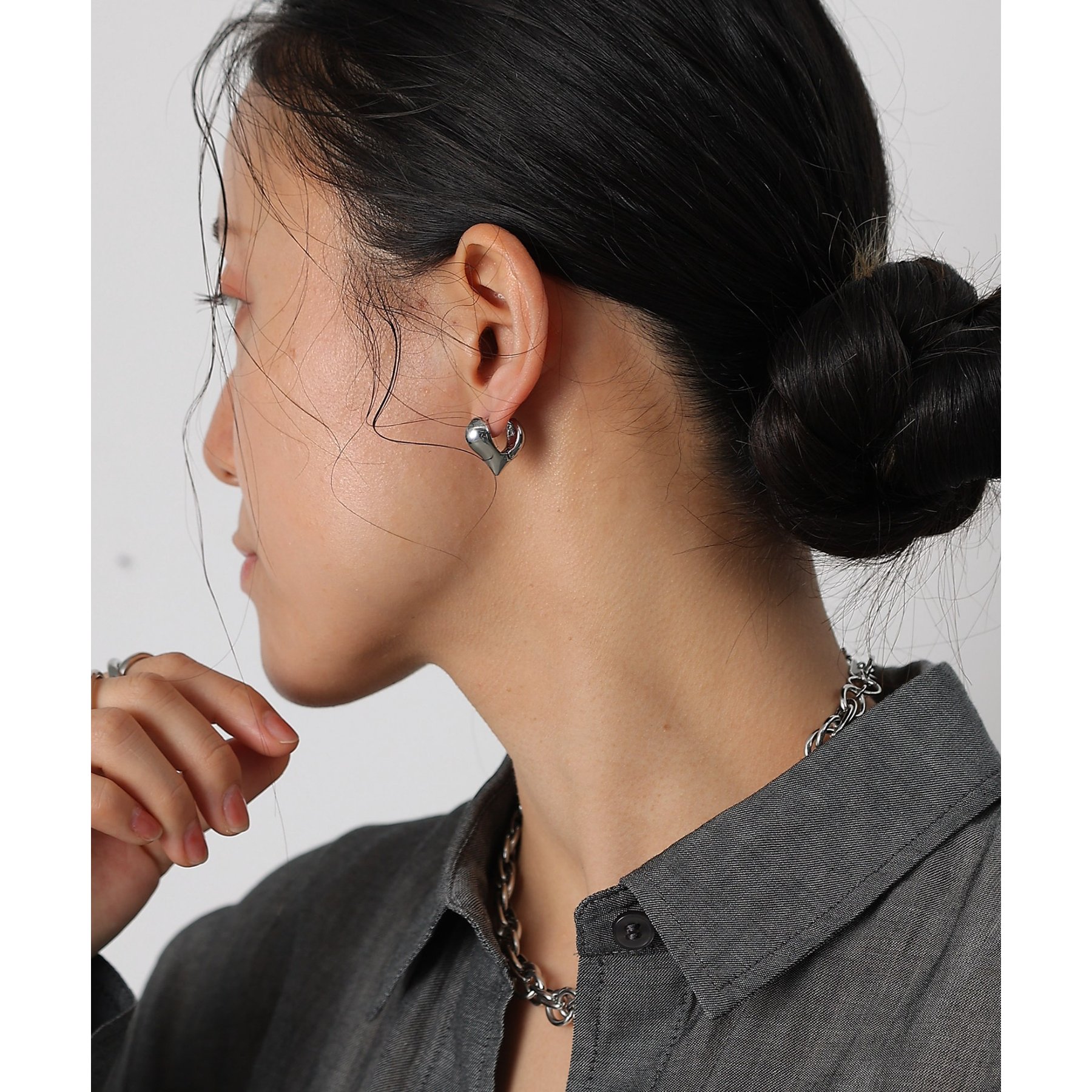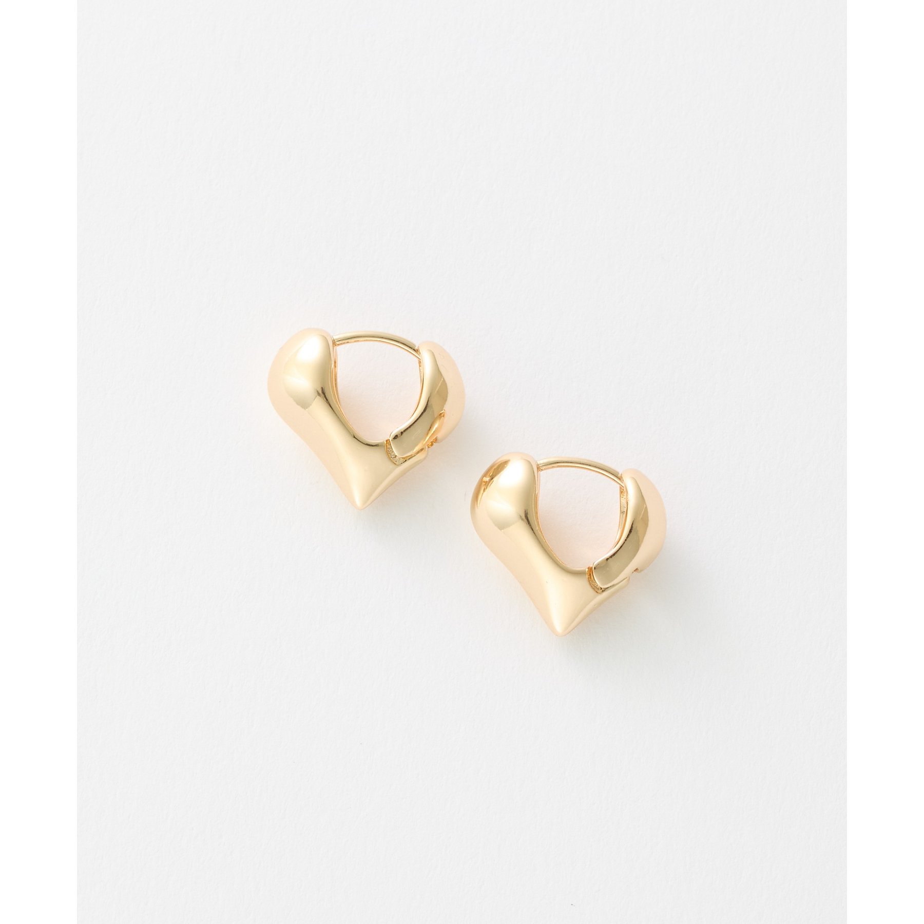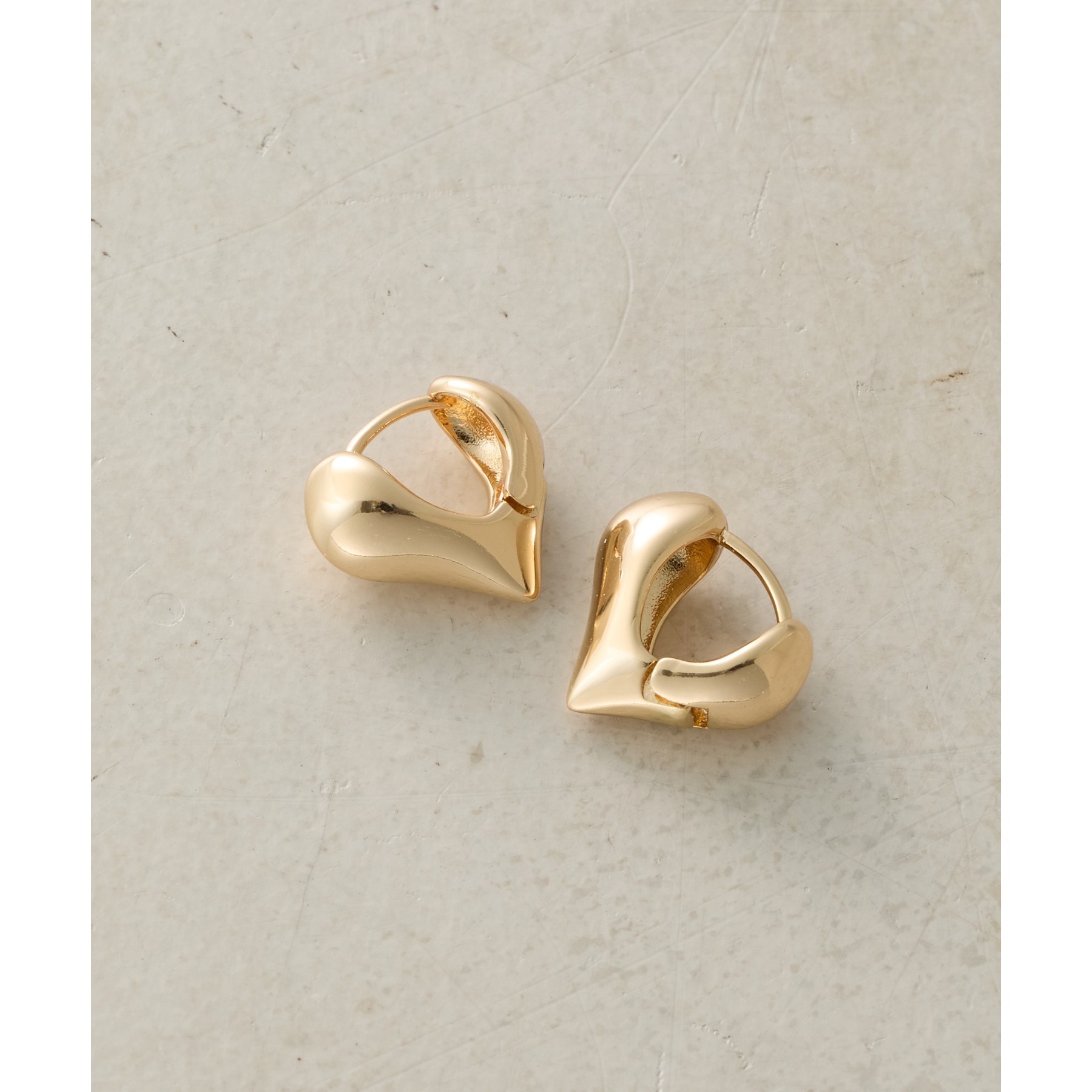 立体的なハートモチーフをフープピアスに仕上げたシンプルでありながらもトレンド感のあるデザイン。