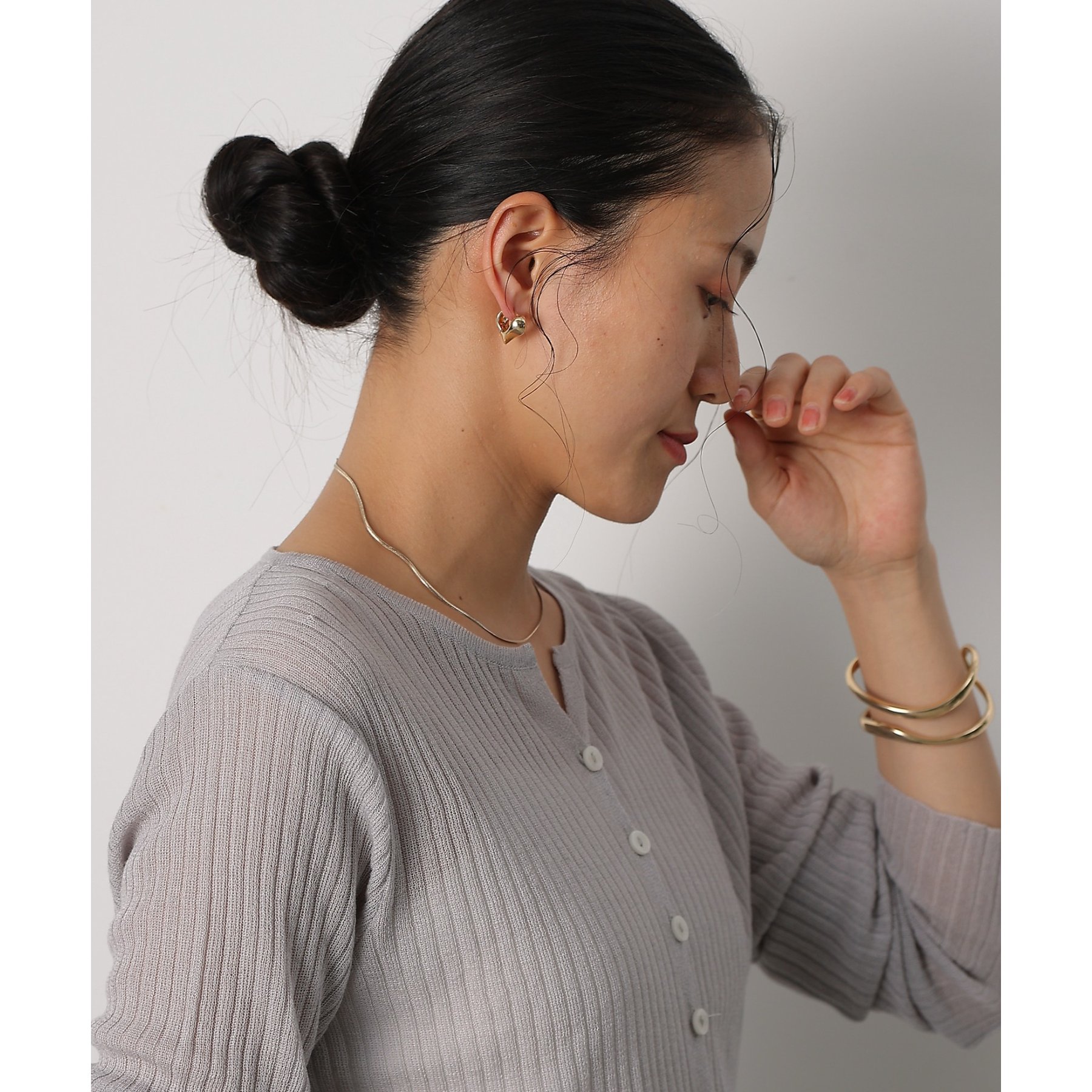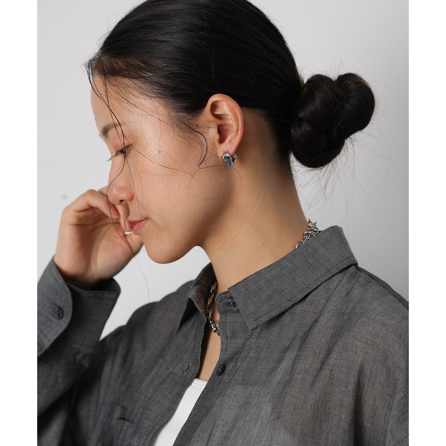 キャッチが無く、ピアスホールに通してカチッと閉じるワンタッチピアスは、耳元を包み込むように装着するので、360°どこから見ても美しいデザインです。