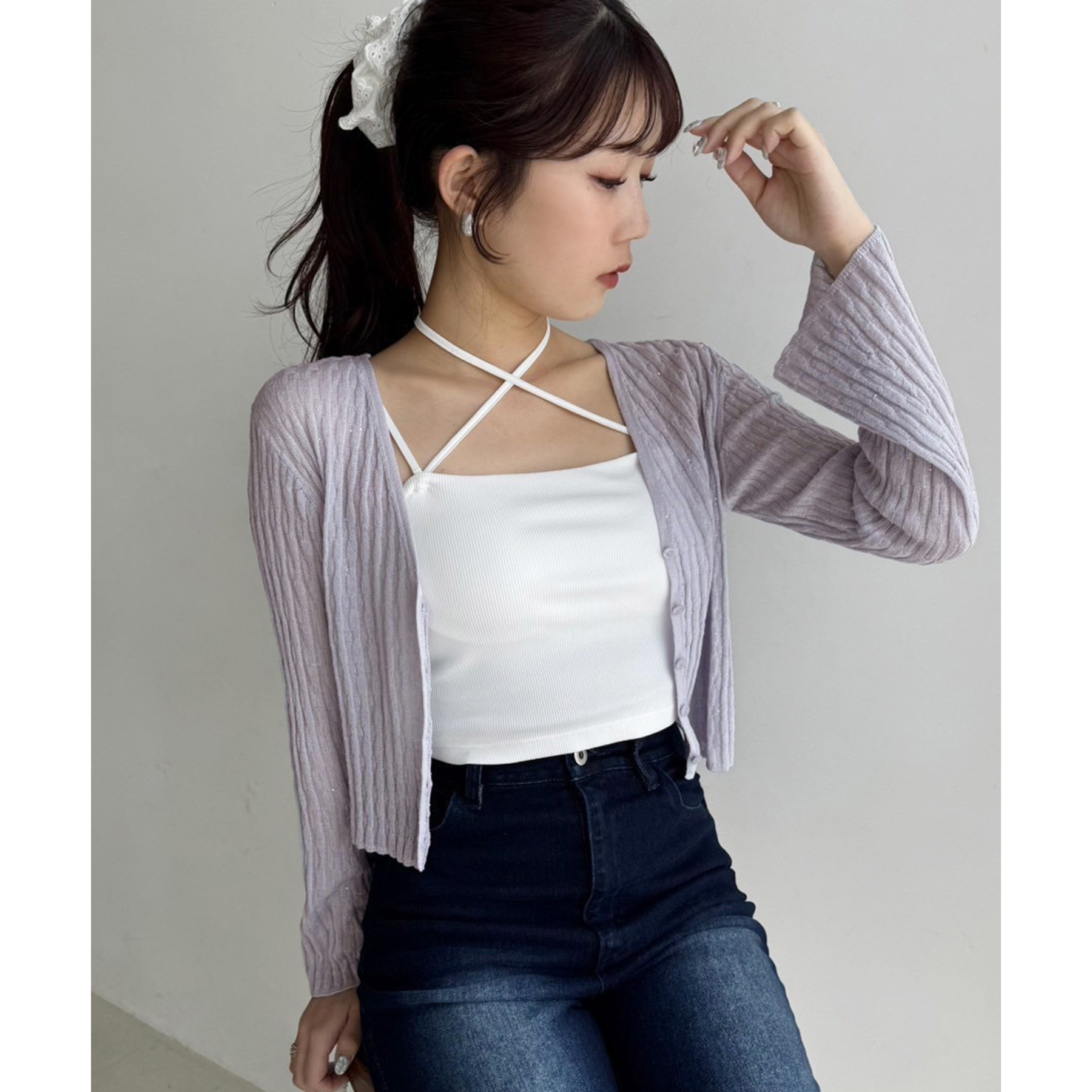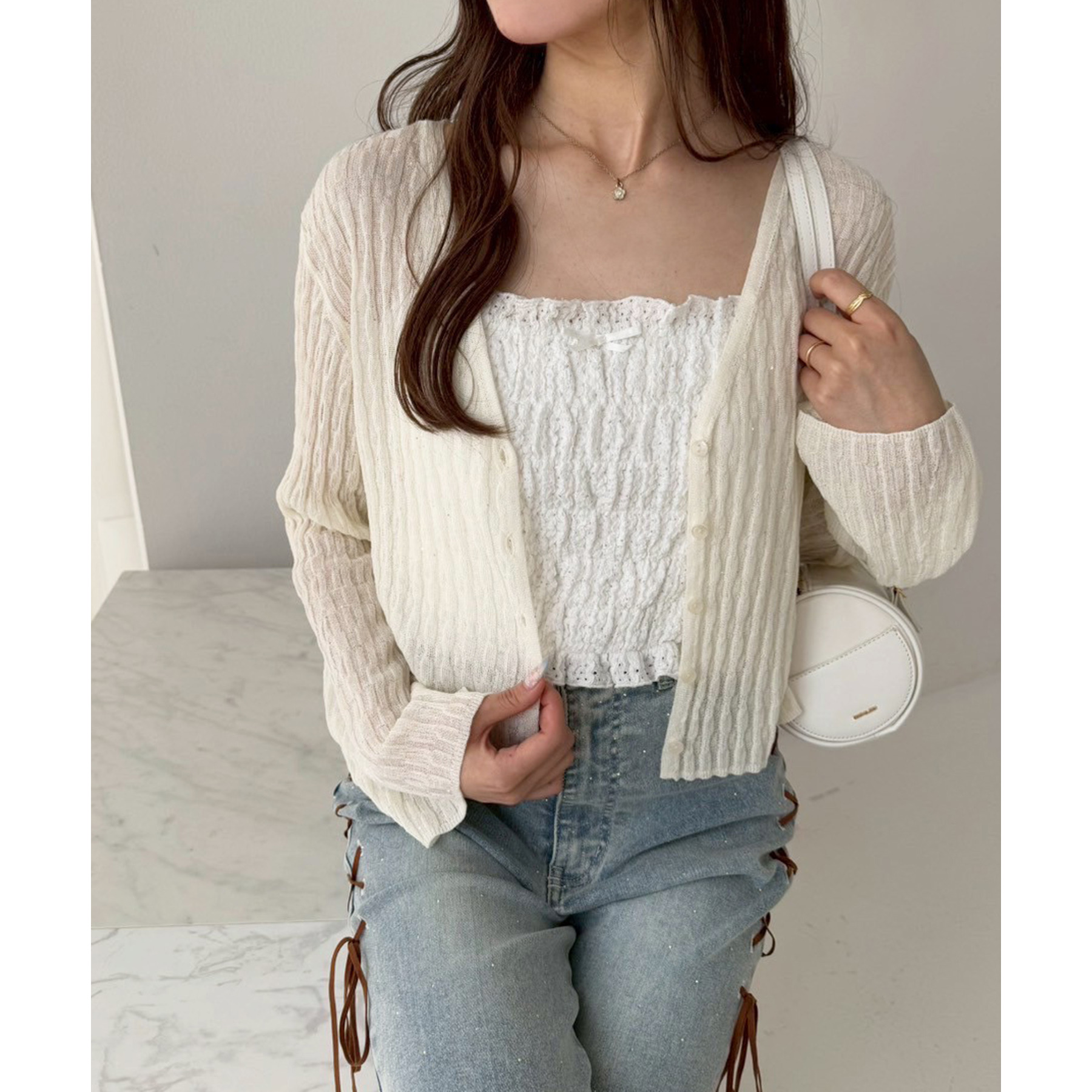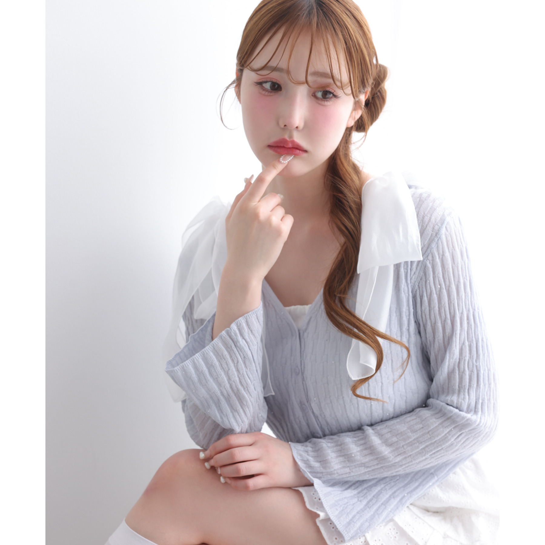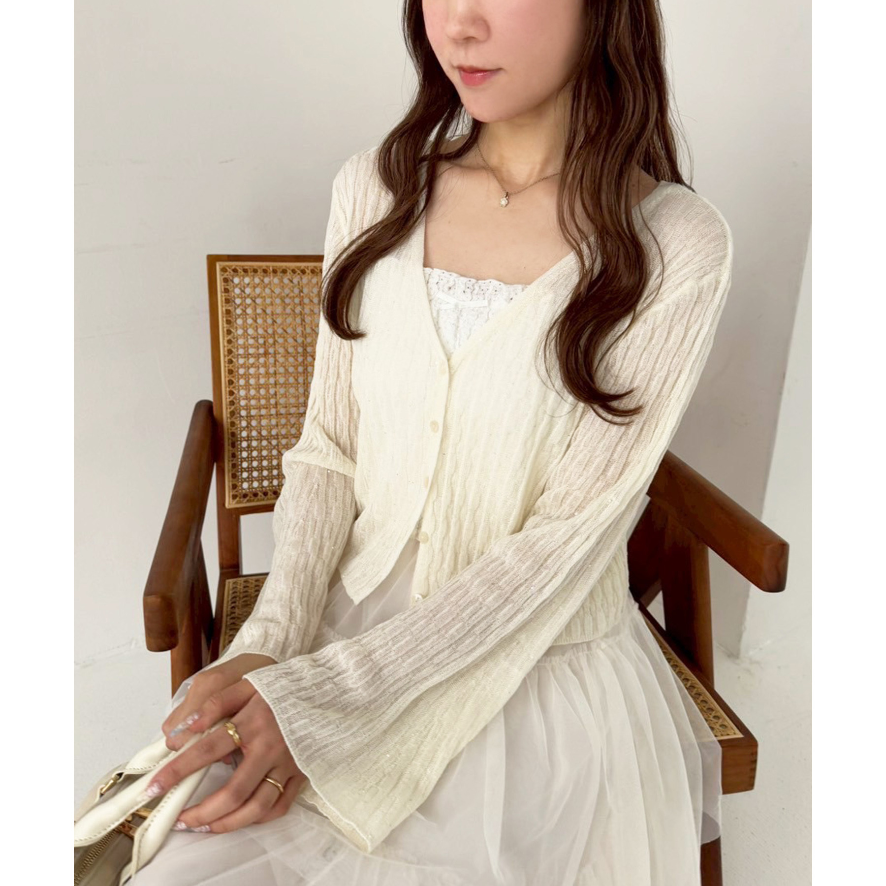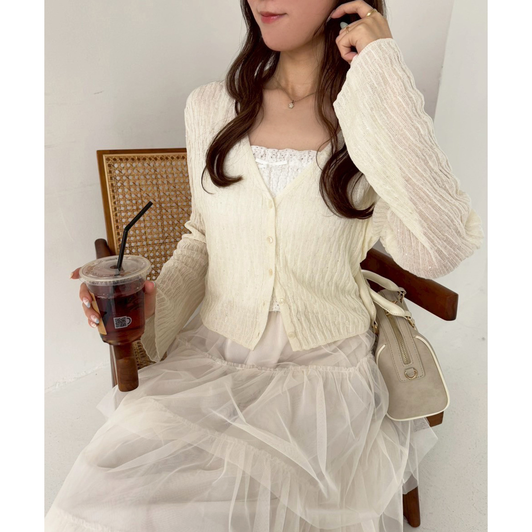 トレンドのシアー素材にスパンコールを散りばめた、華やかなカーディガンが登場!