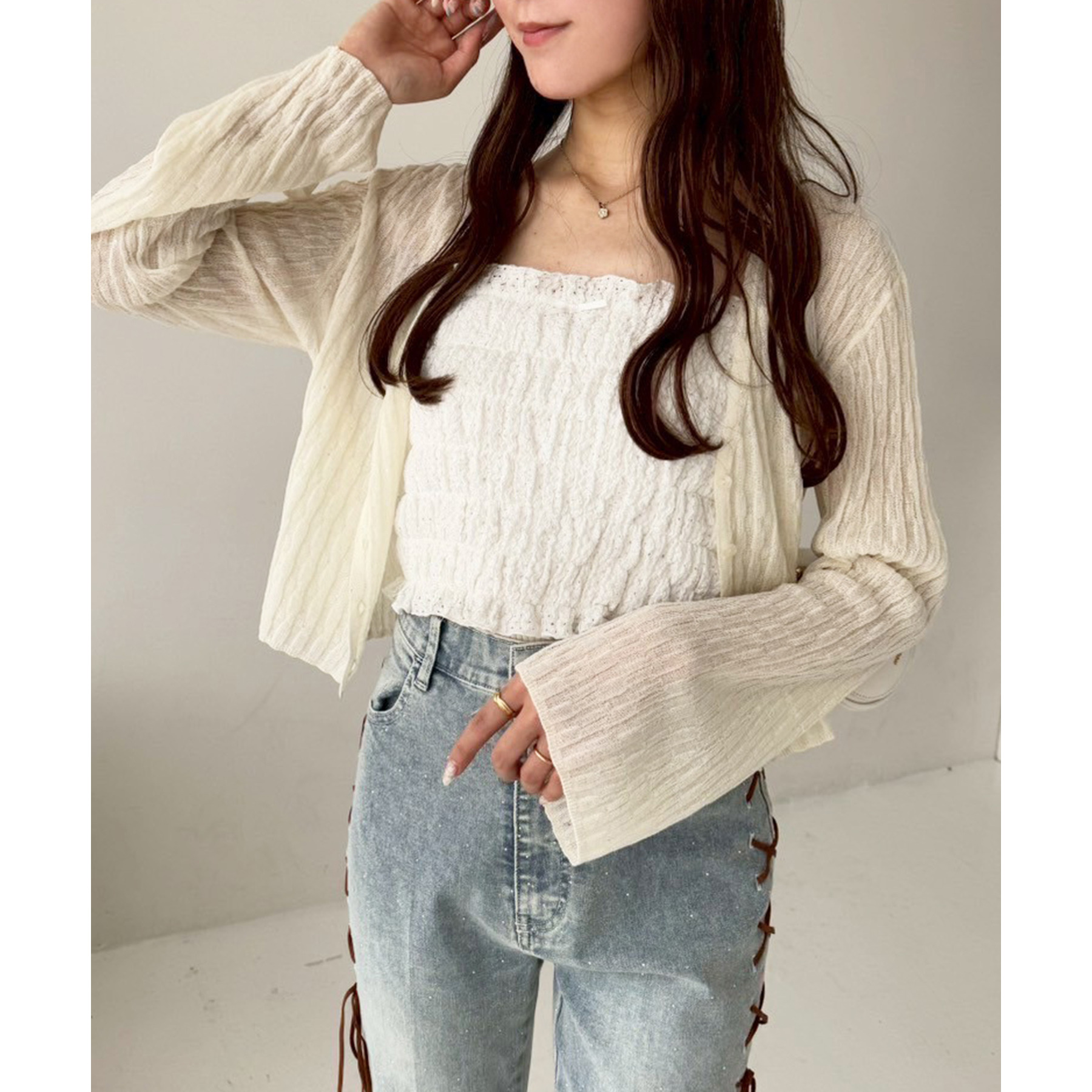 キャミソール×デニムに羽織って、大人カジュアルなスタイルに♪