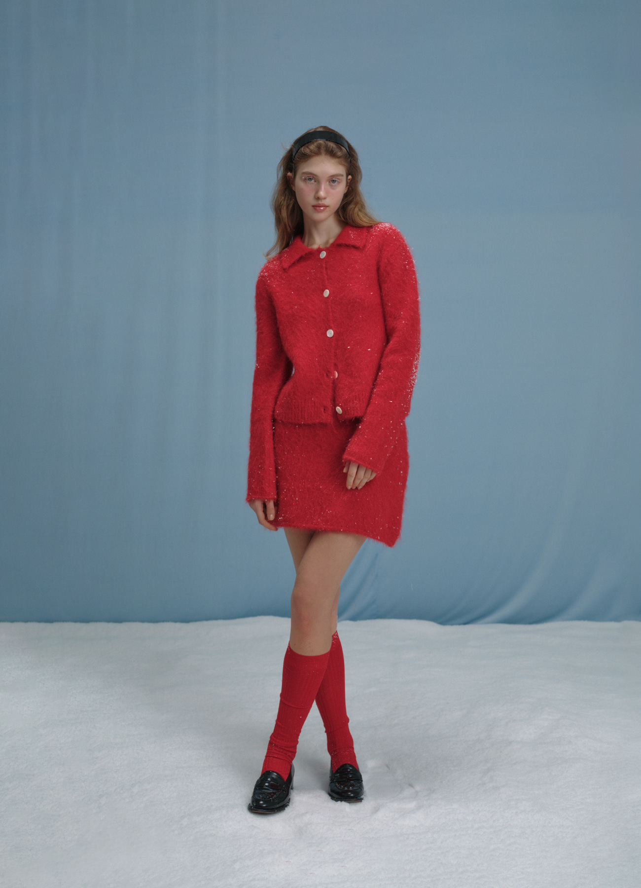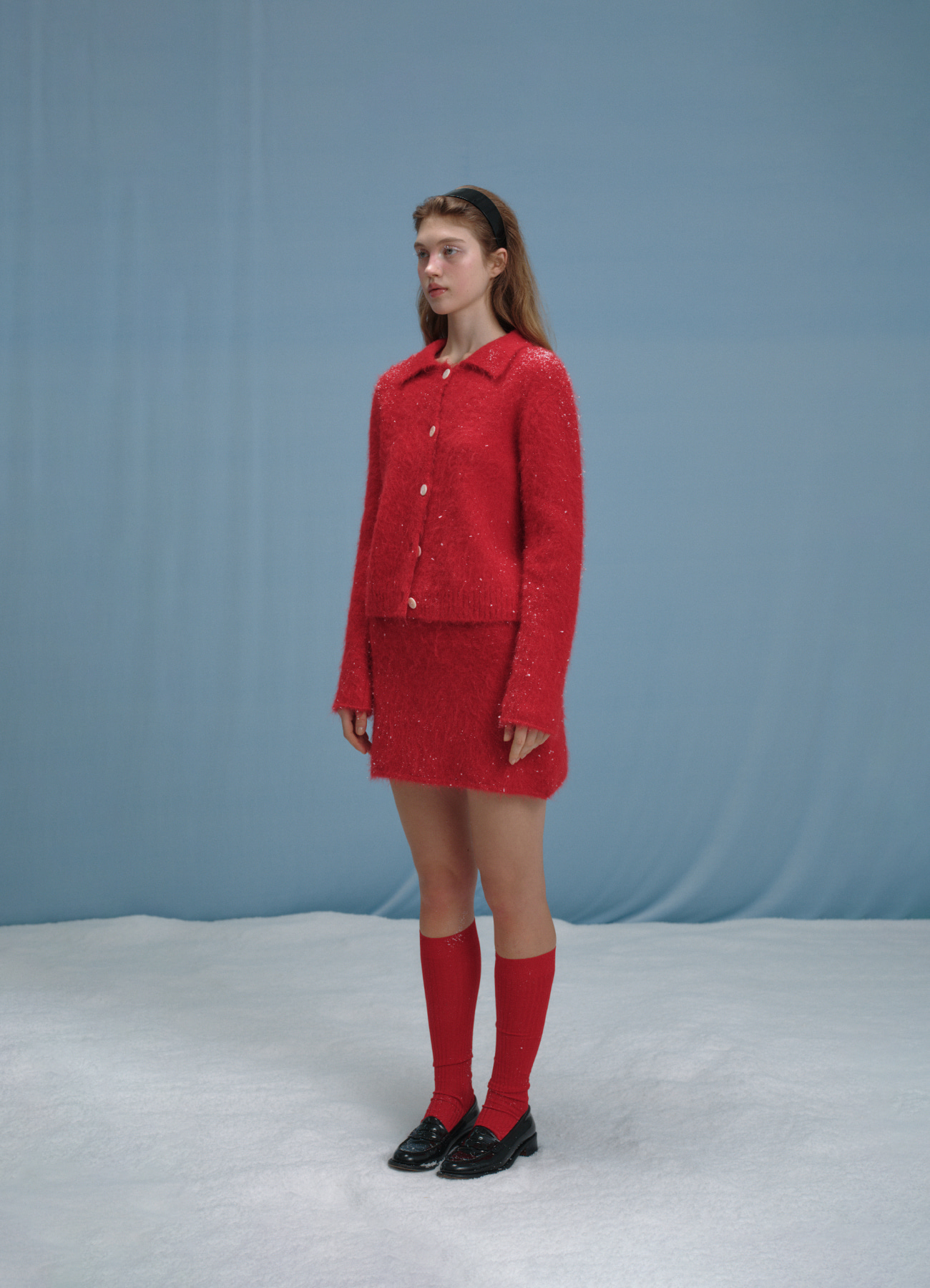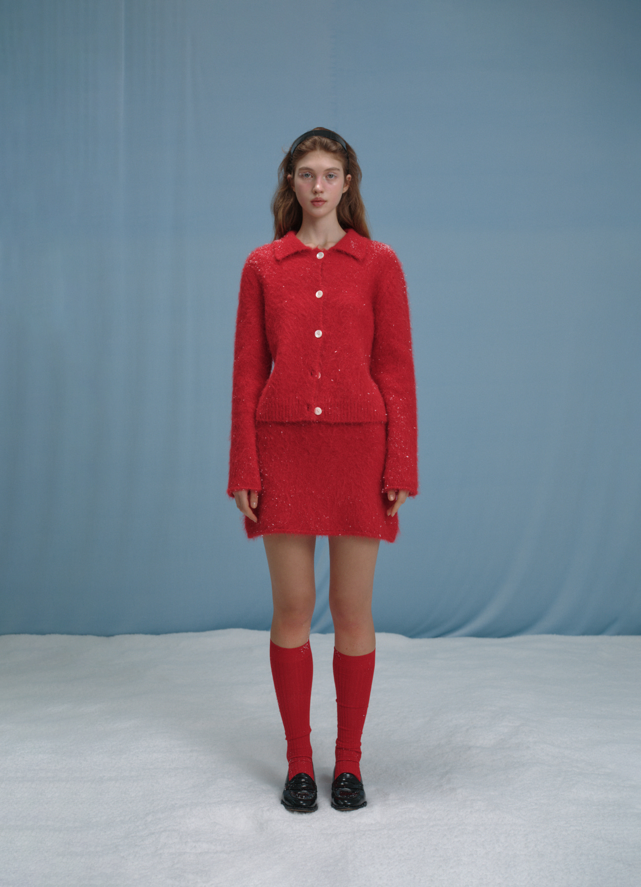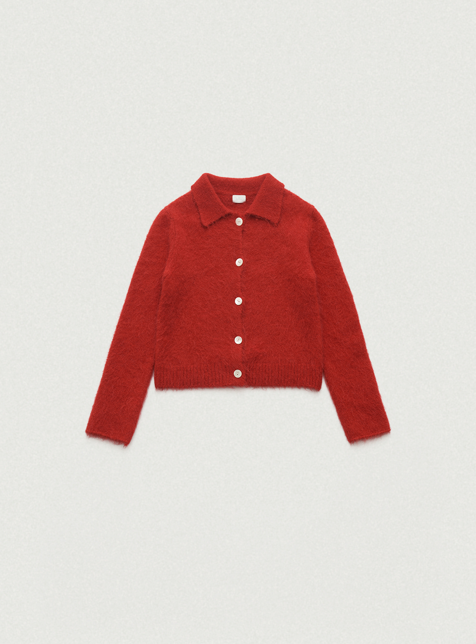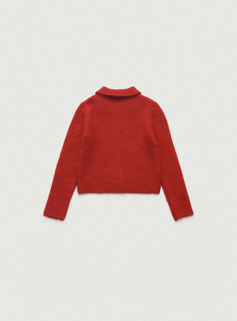 Susie Alpaca Polo-Collar Knit Cardigan - red