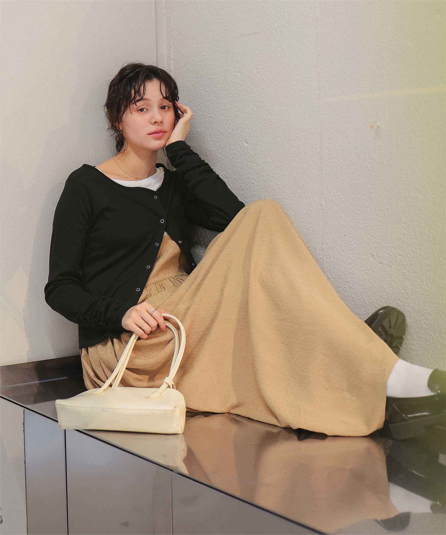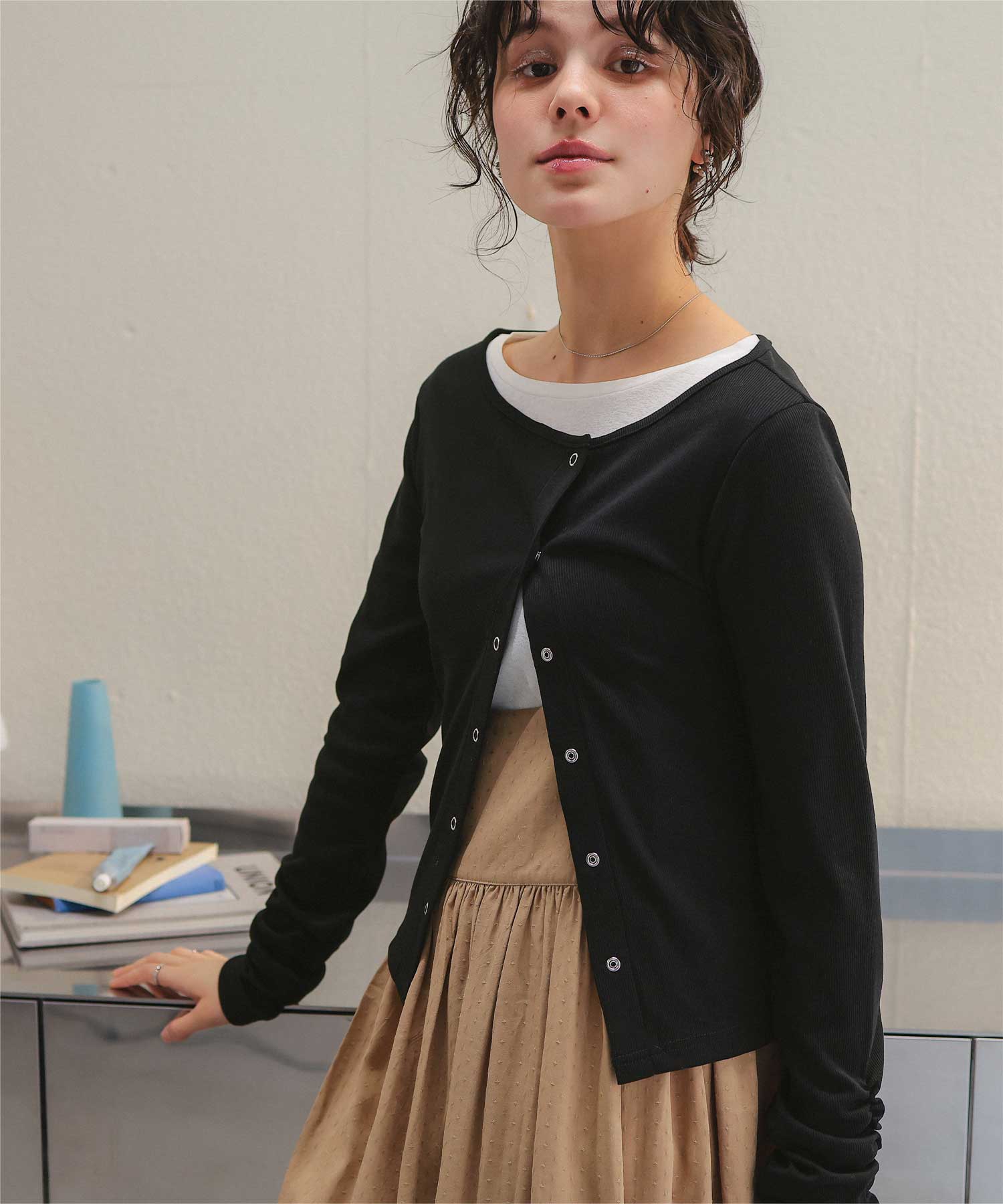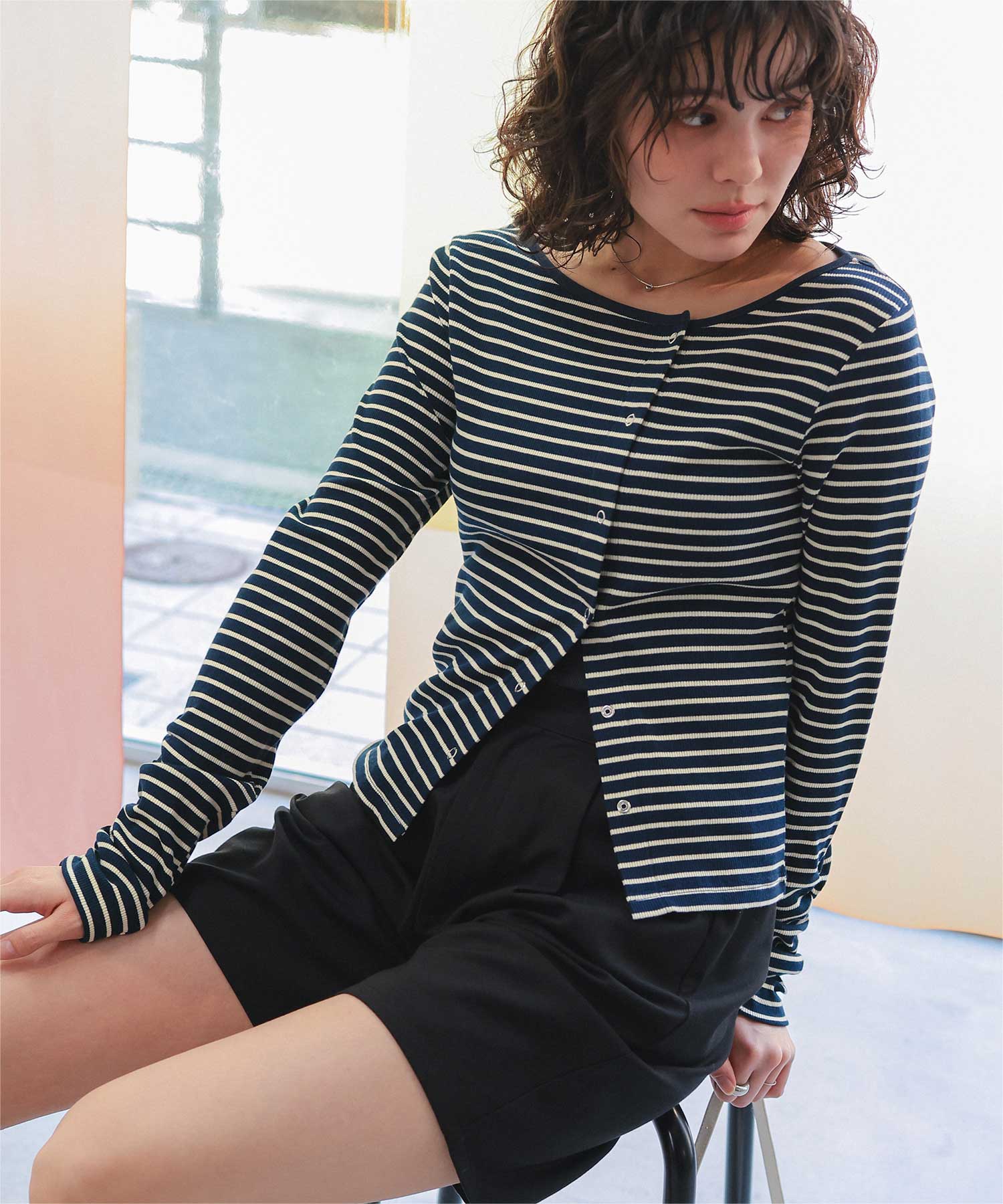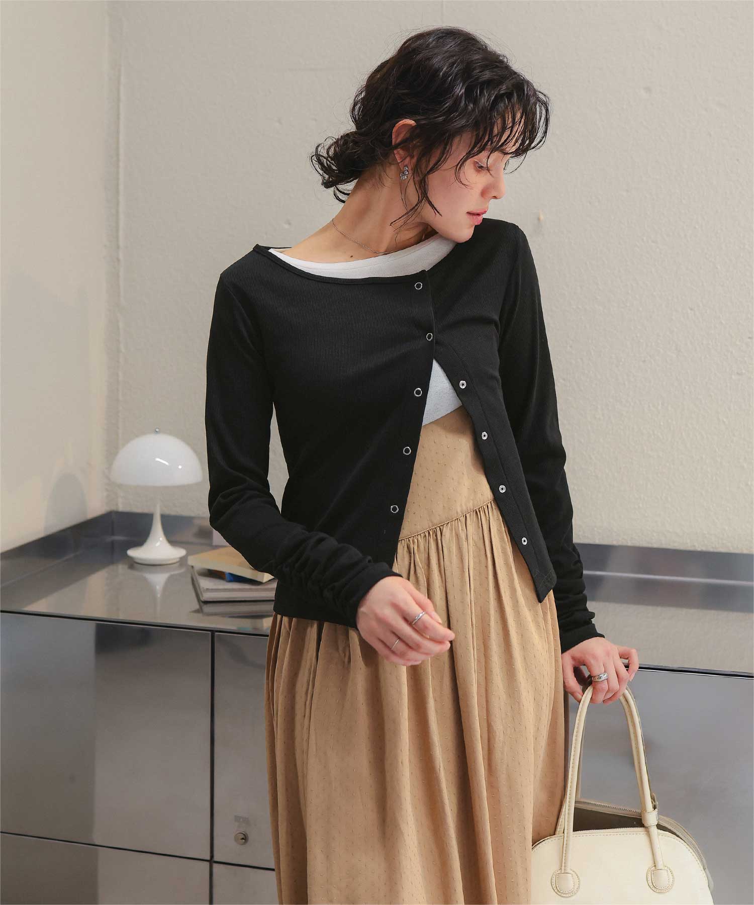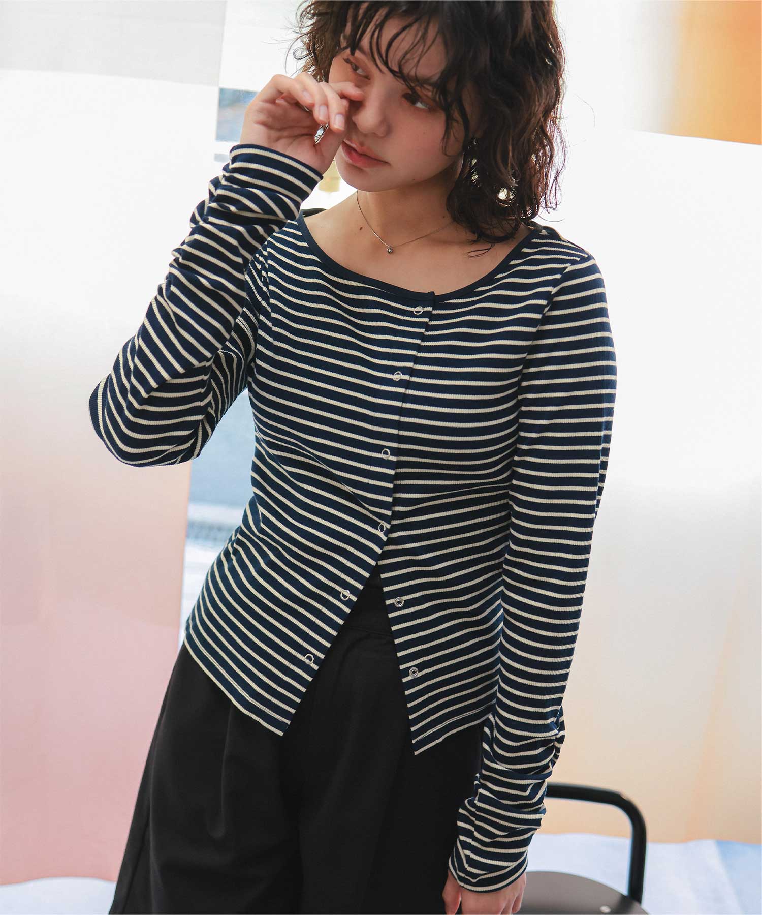 着用 / サイズ:M カラー:オフホワイト、アイボリー2、ピンク、ブラック、ネイビー、アイボリー