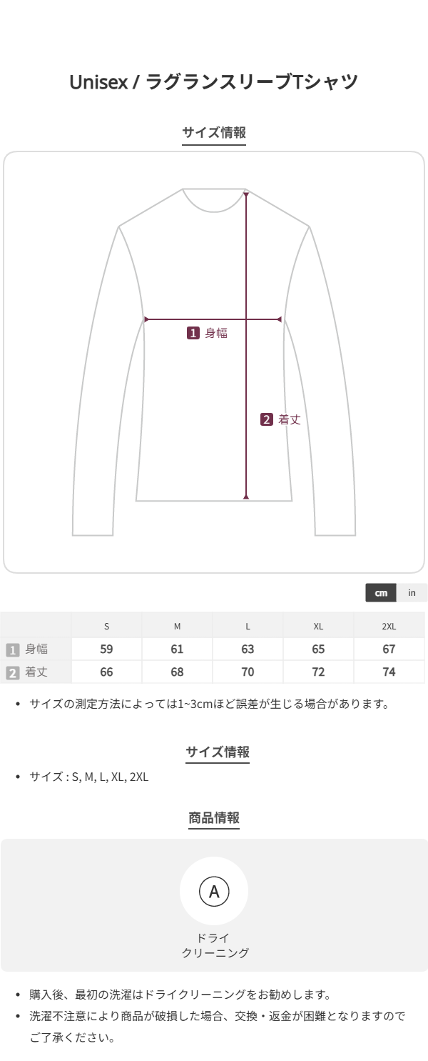 着丈 S: 66cm M:68cm L:70cm XL:72cm XXL:74cm