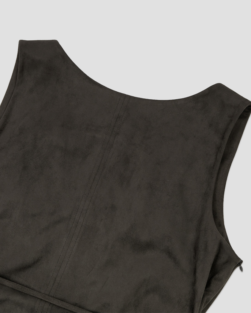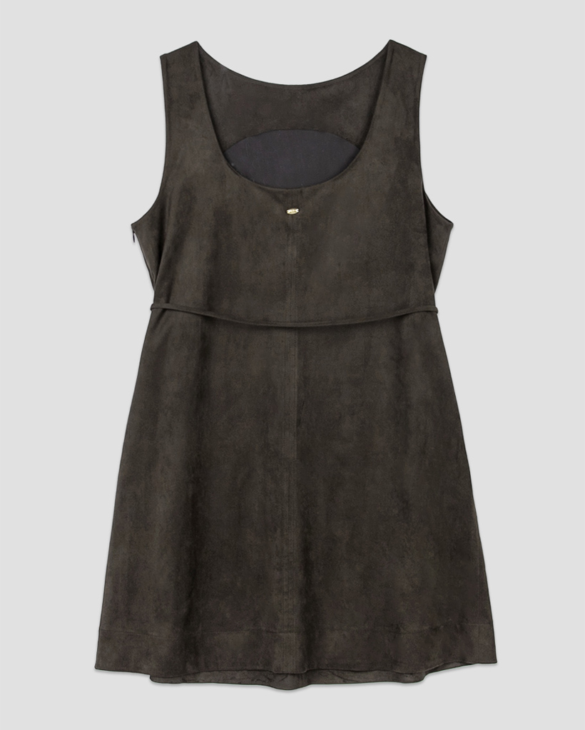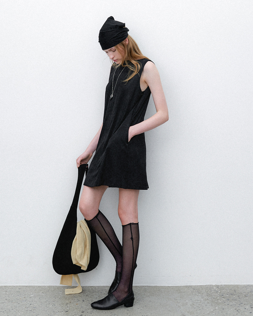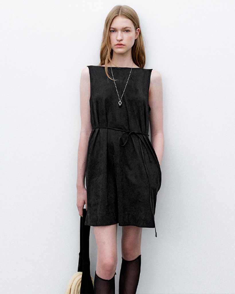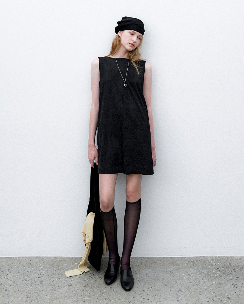 フロントのボートネックとバックの深く開いたUネックがデザイン性を高め、