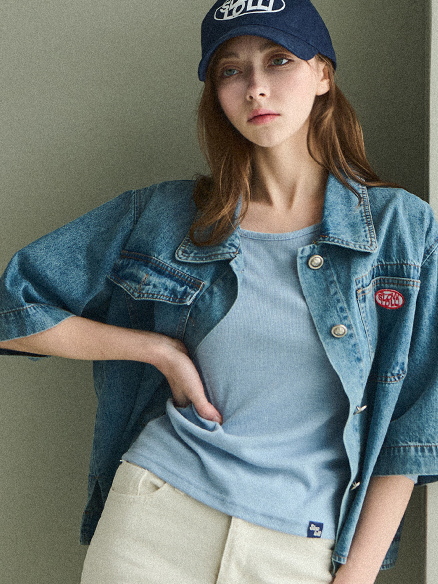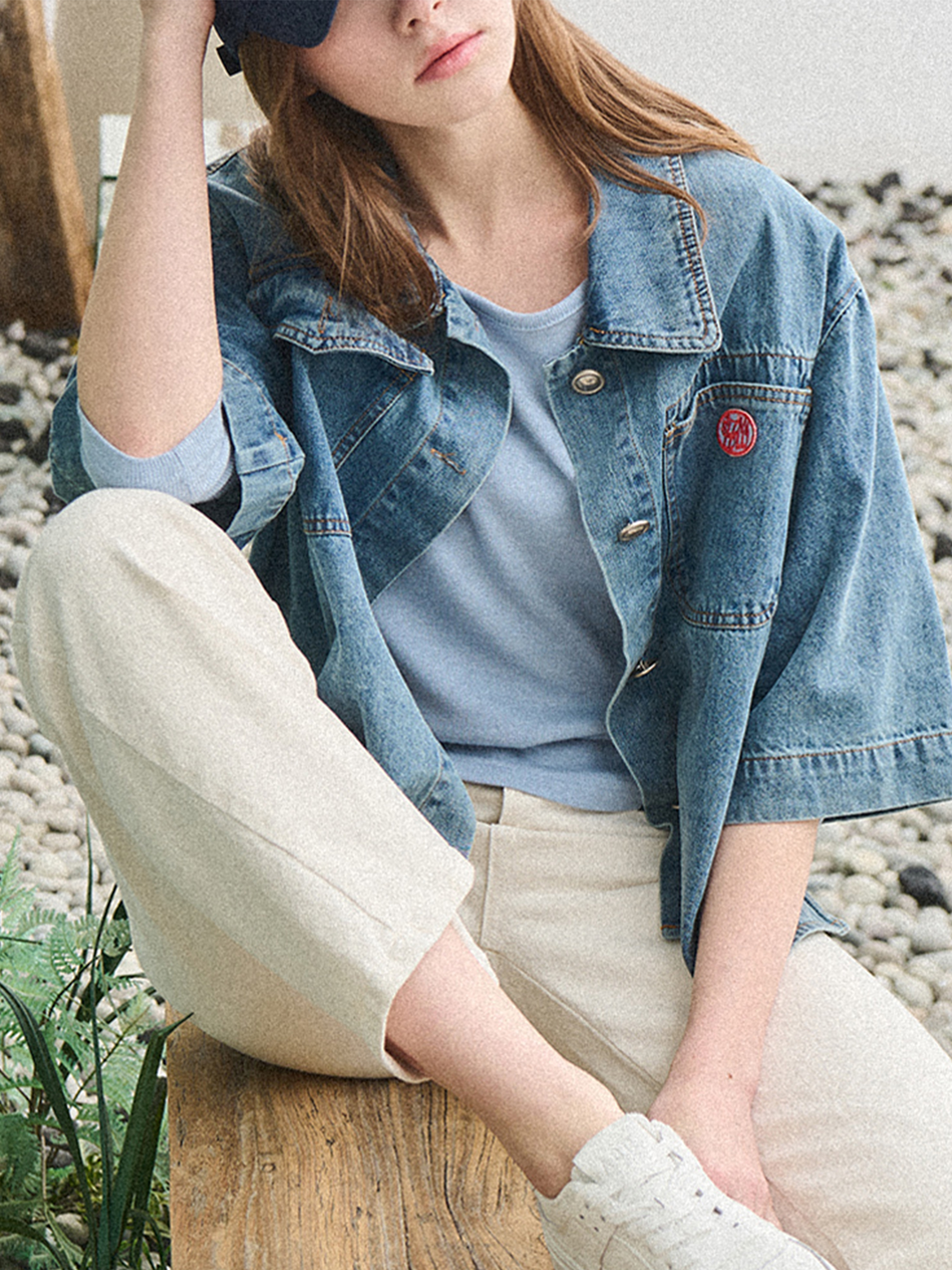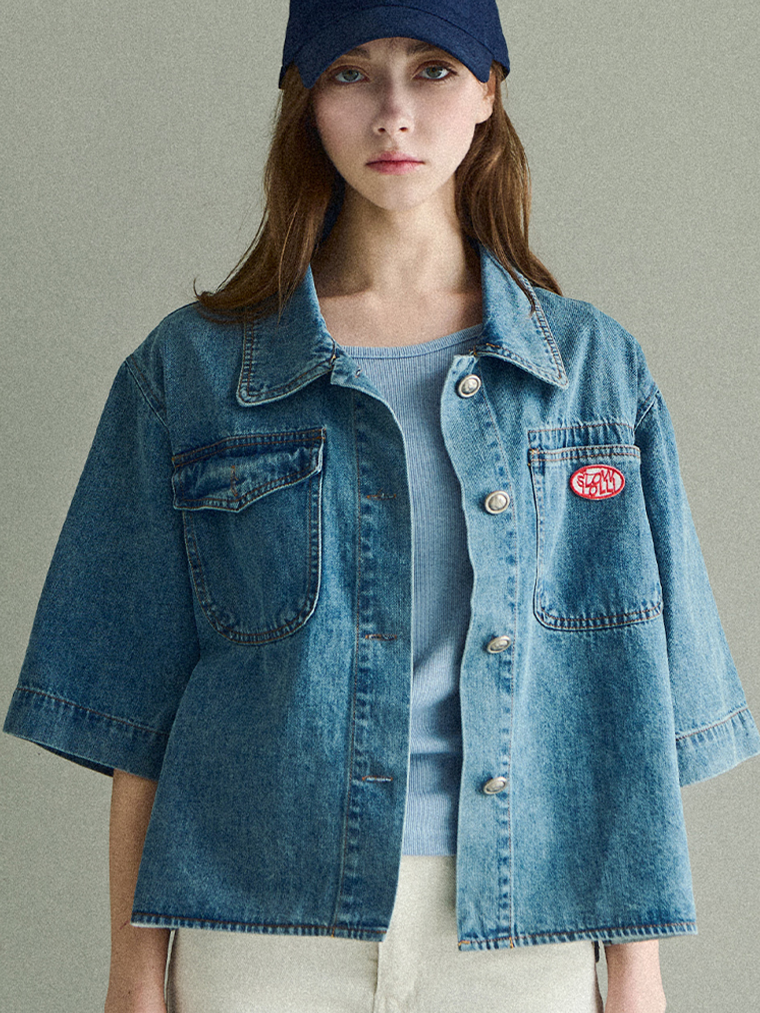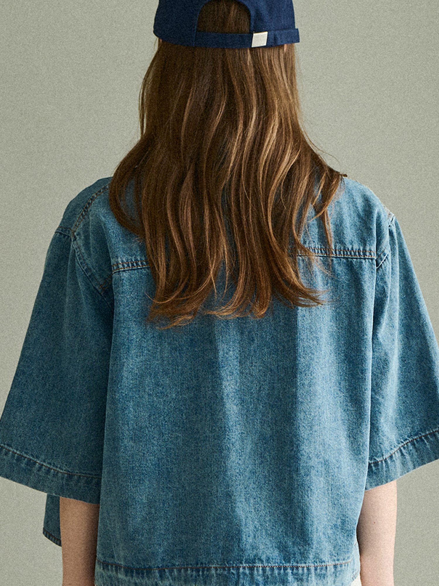 Washing button denim jacket - Mid blue