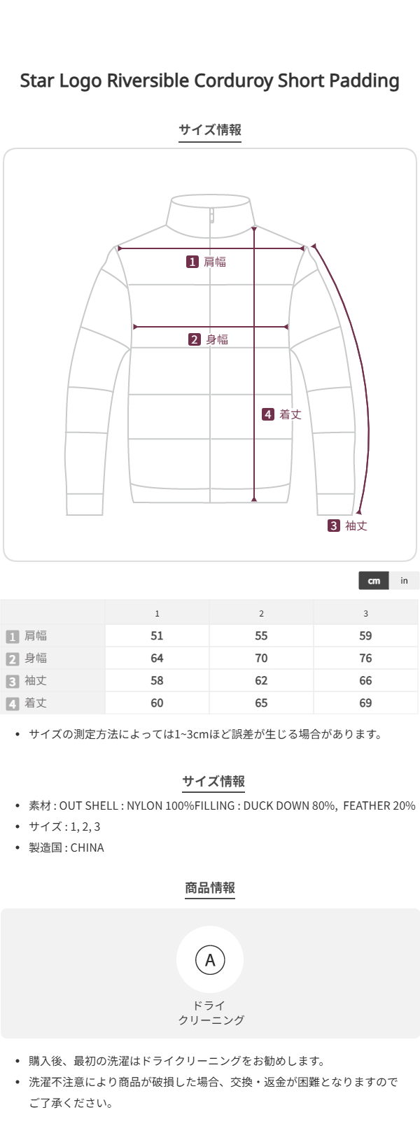 【購入特典】Star Logo Riversible Corduroy Short Padding BLACK
