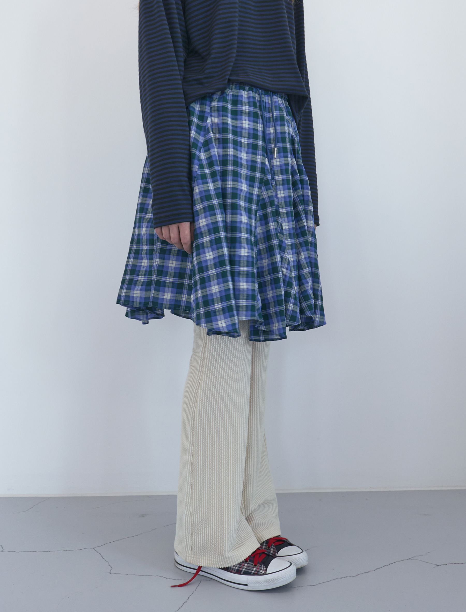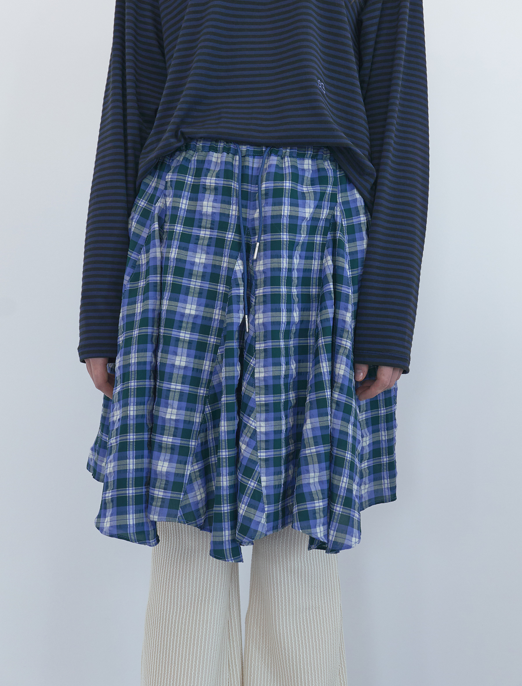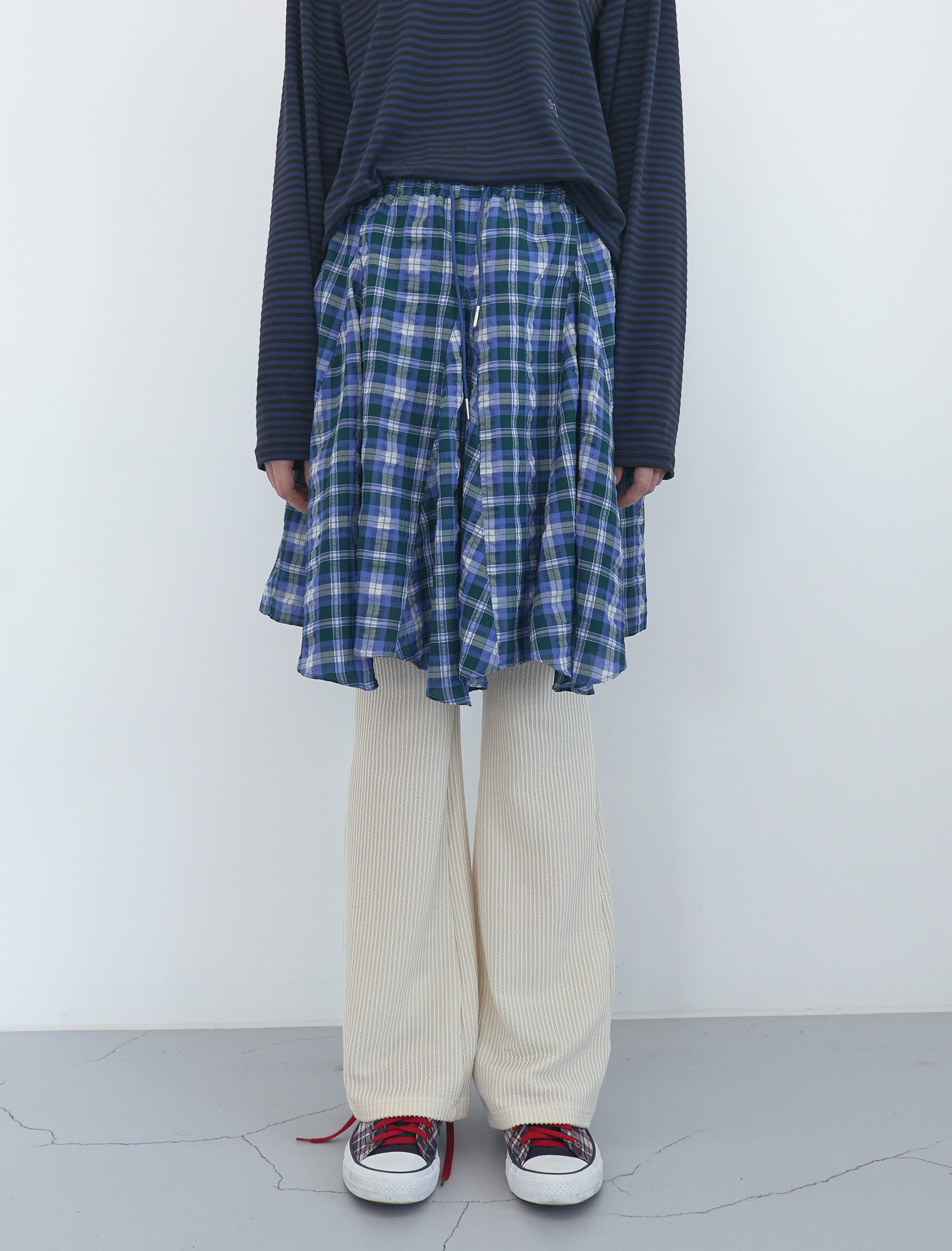 Witty Checked Flare Skirt (Blue Green)