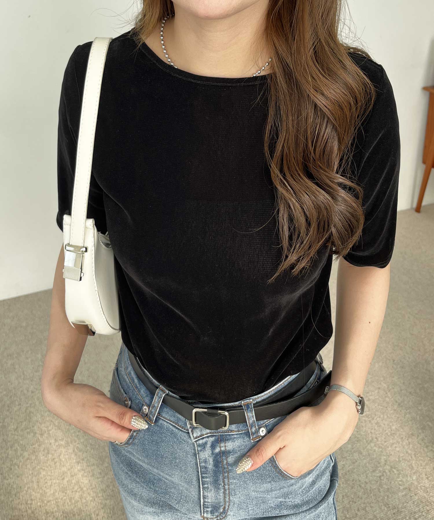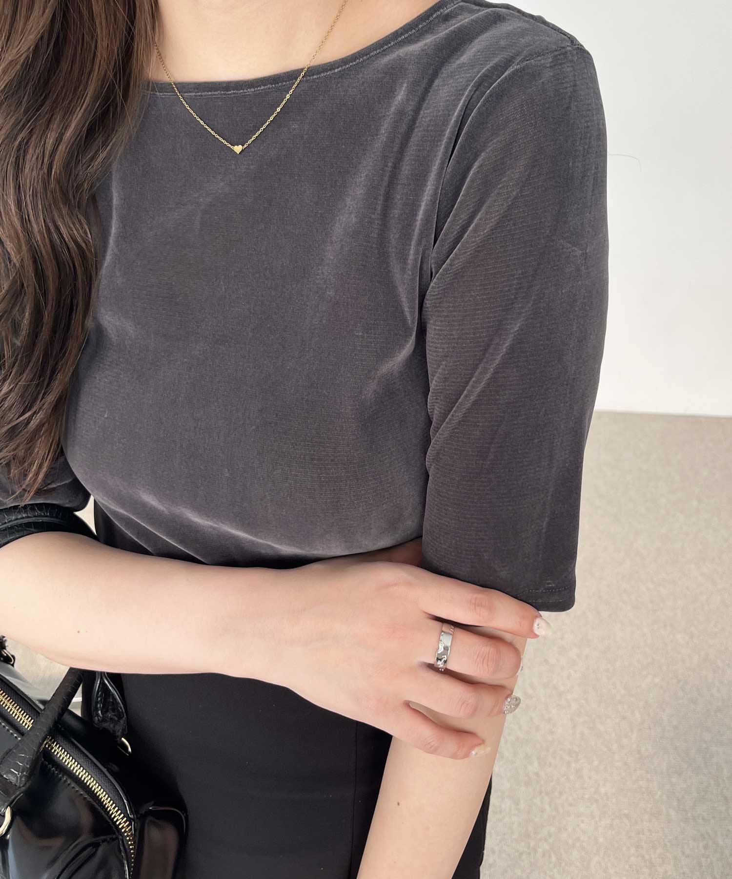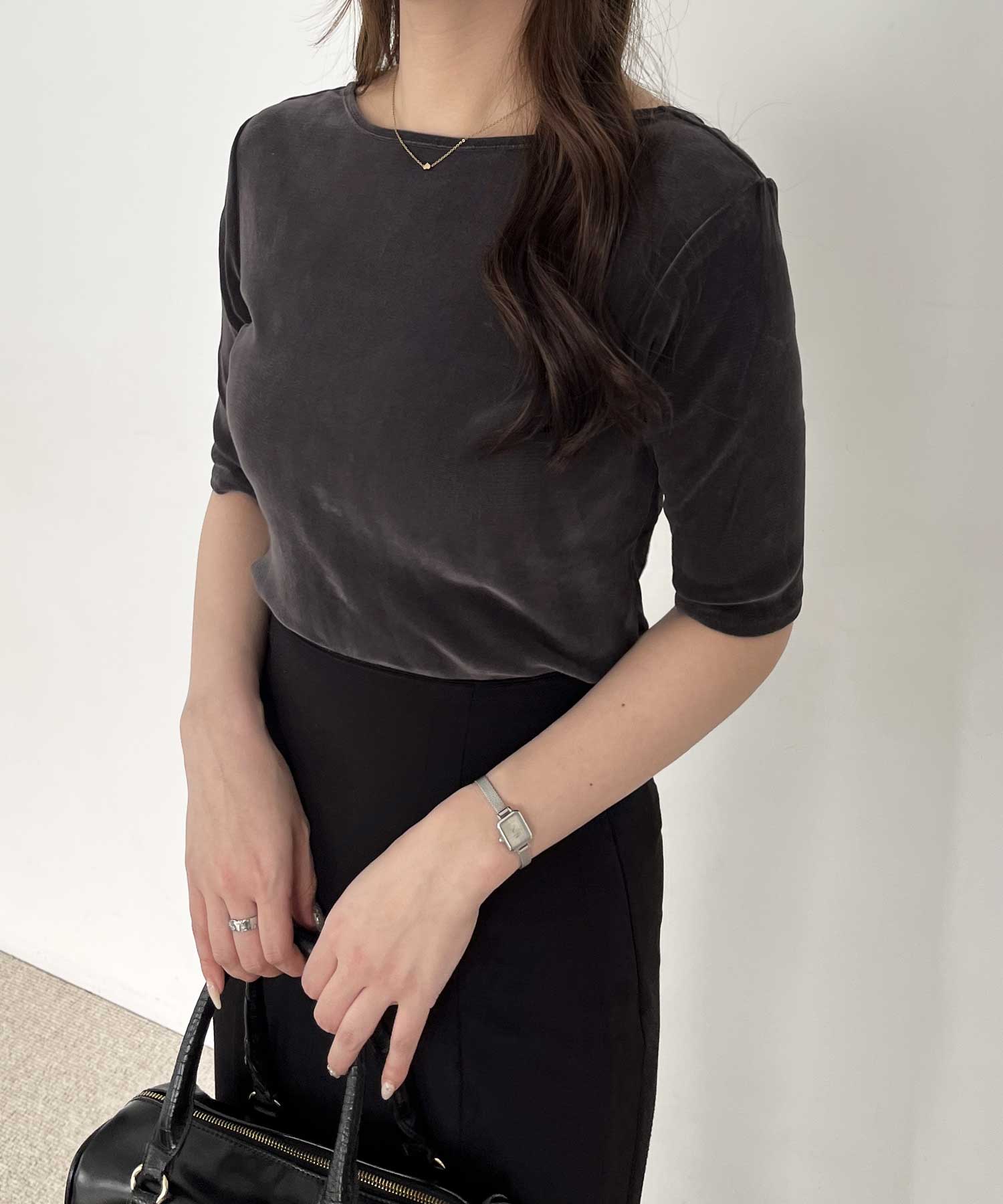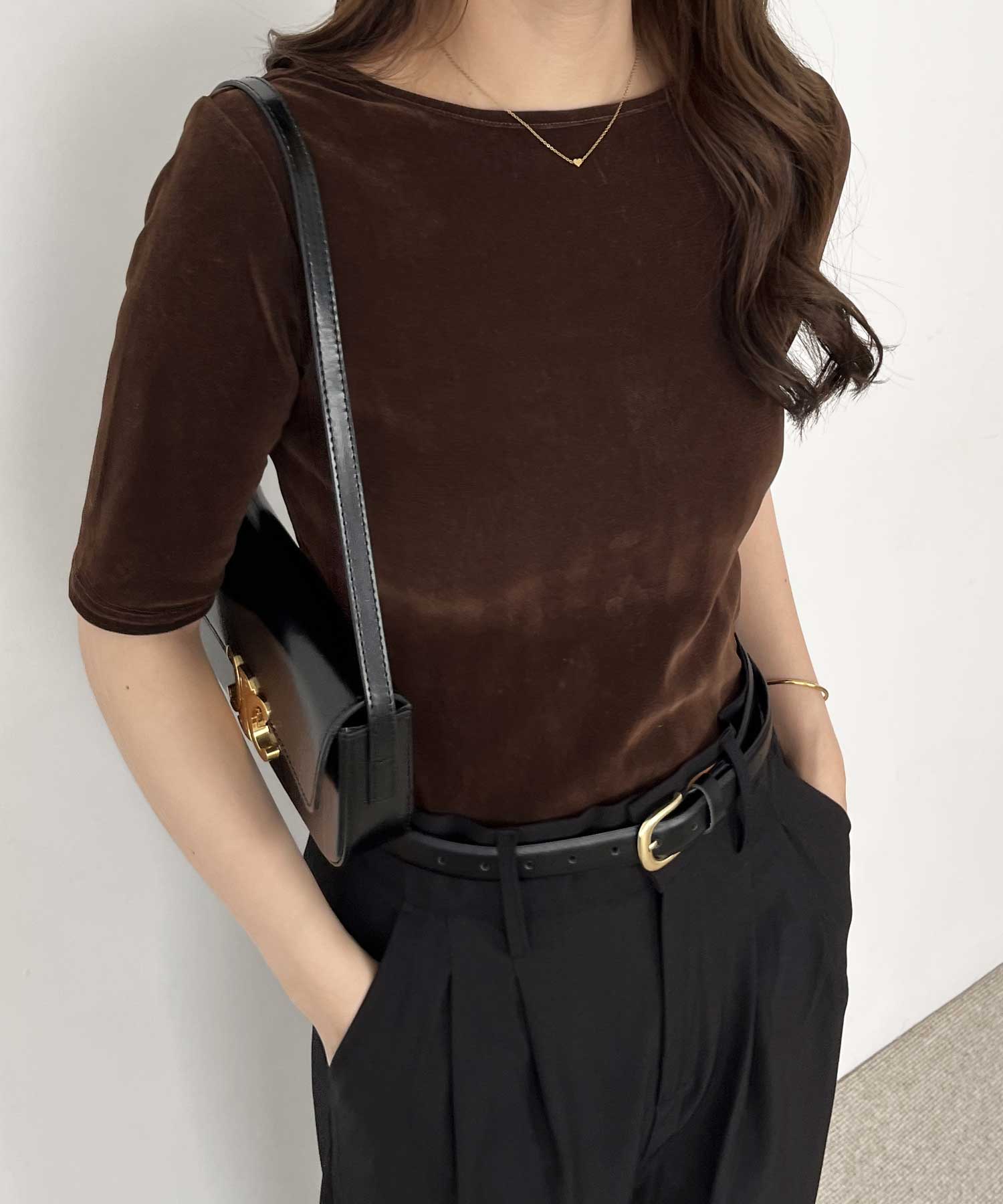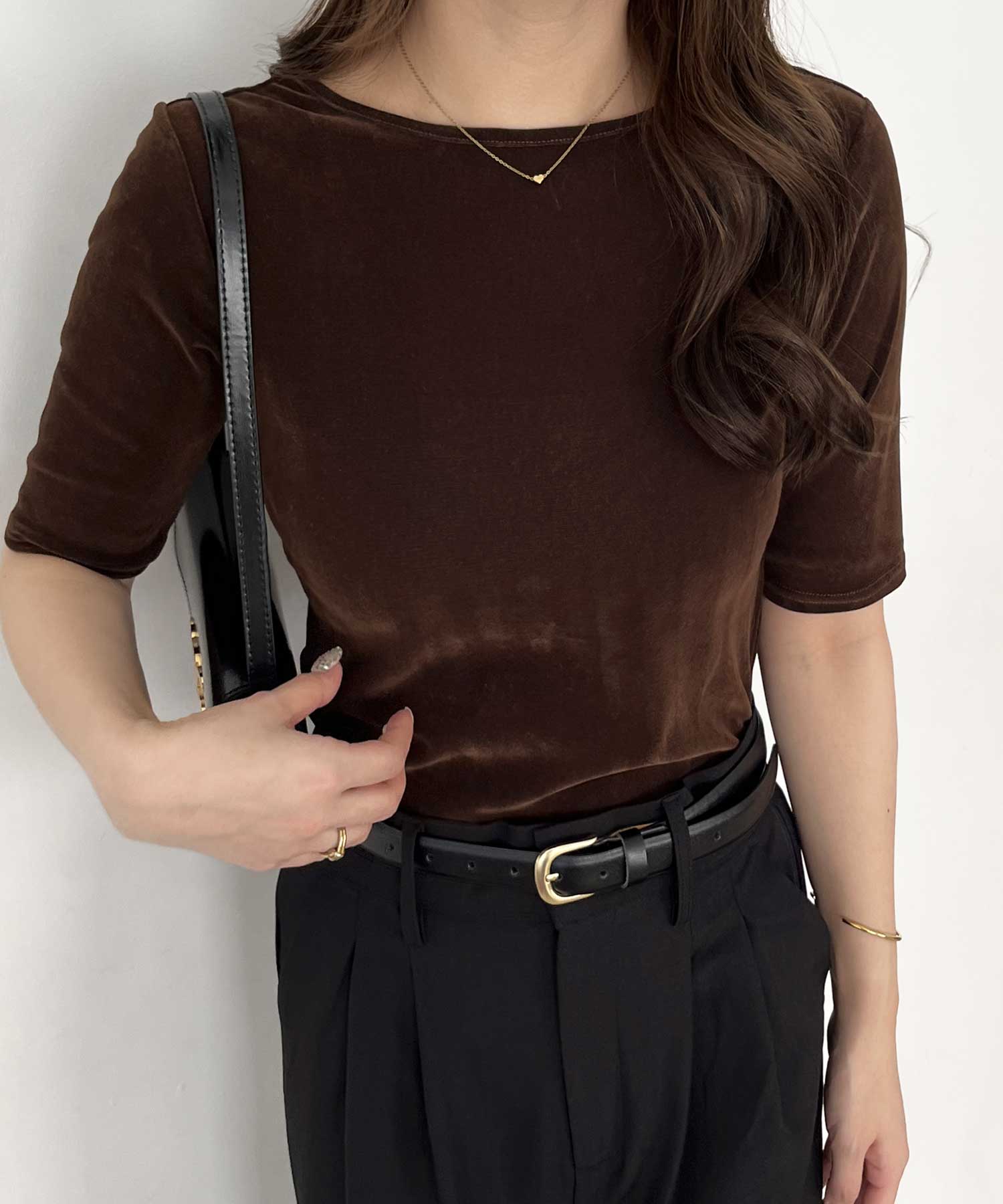 表面感のあるベロア素材がアクセントとなりデイリースタイルに重宝する1枚です◎