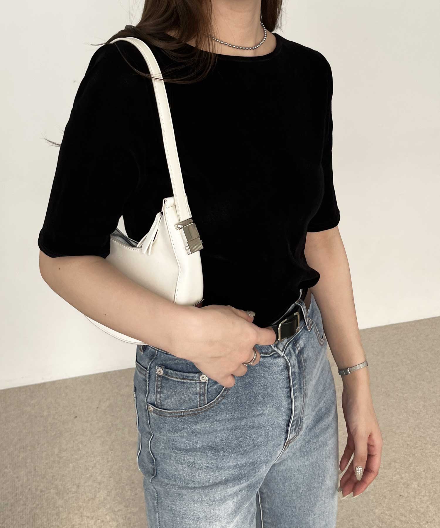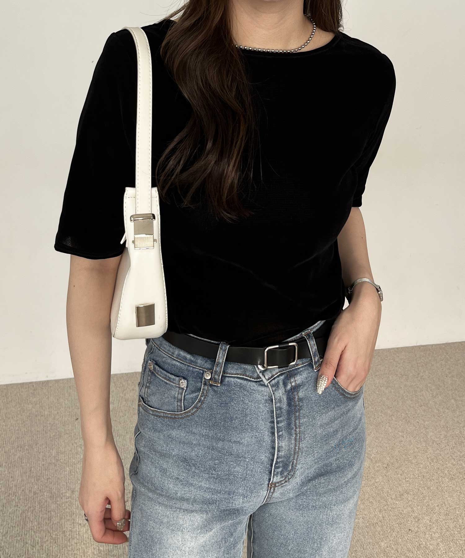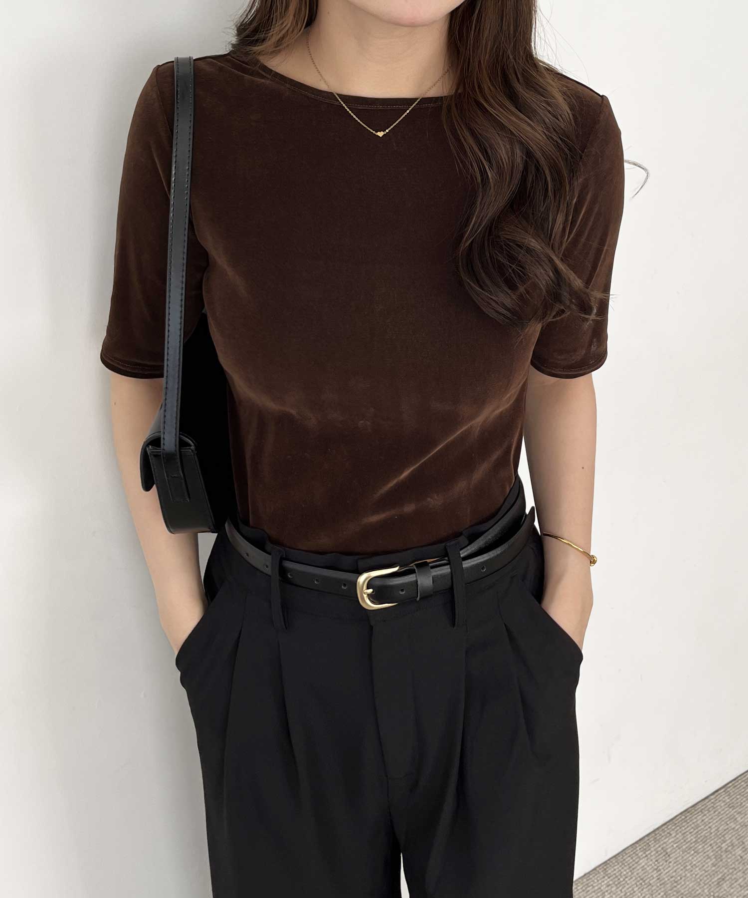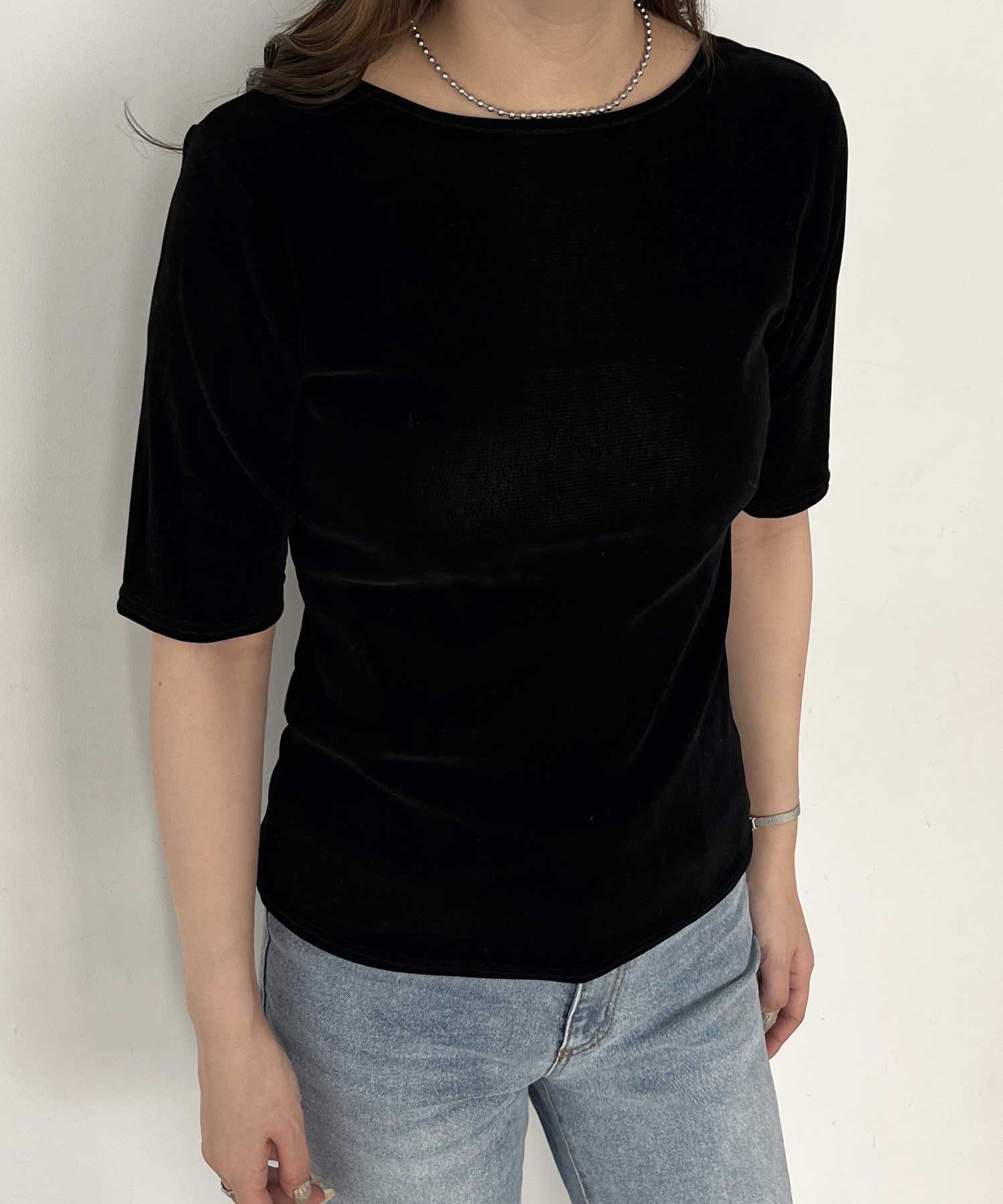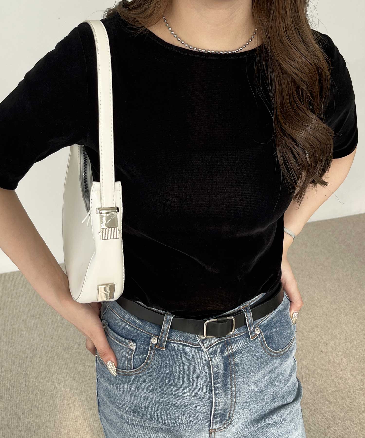 表面感のあるベロア素材がアクセントとなりデイリースタイルに重宝する1枚です◎