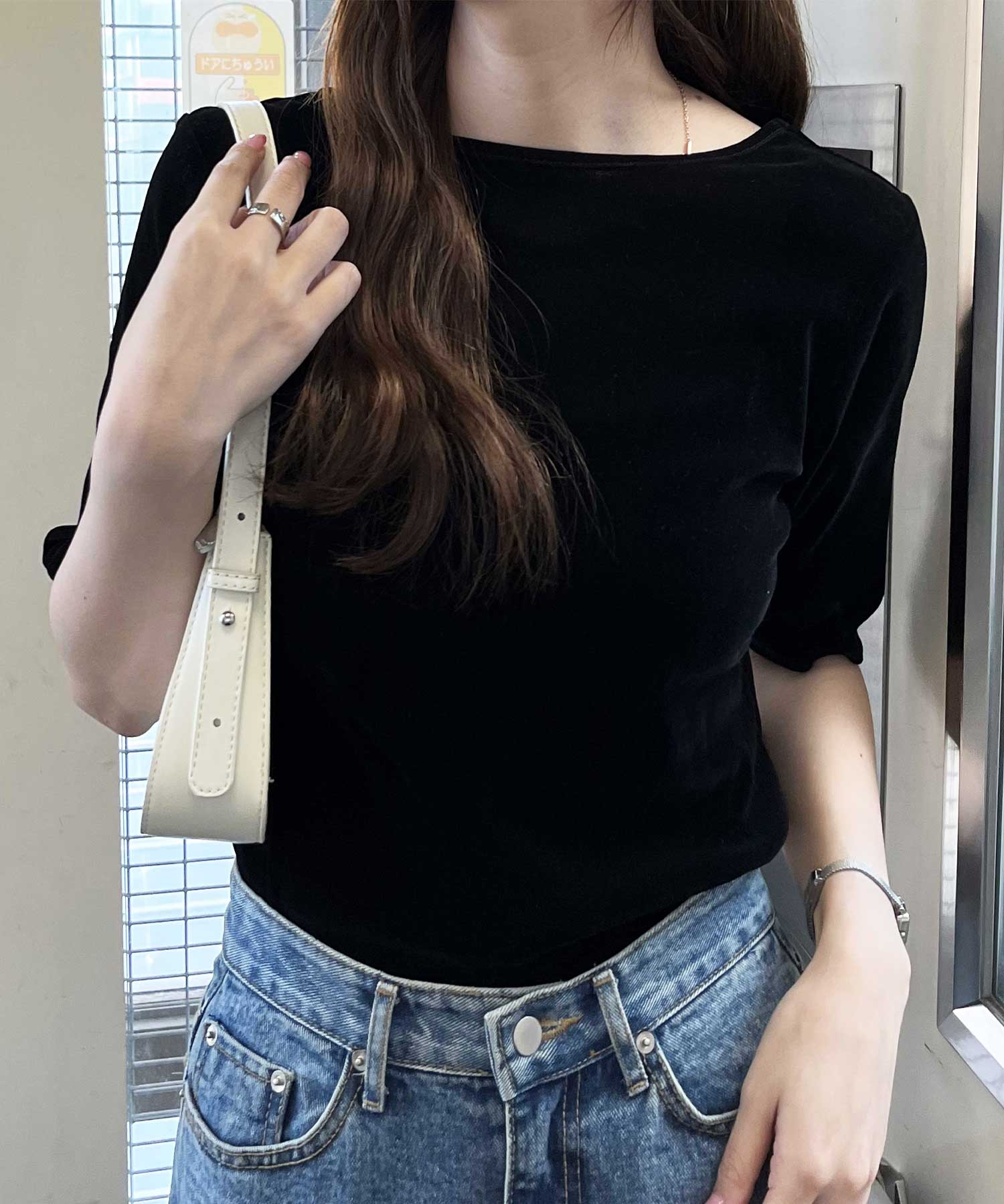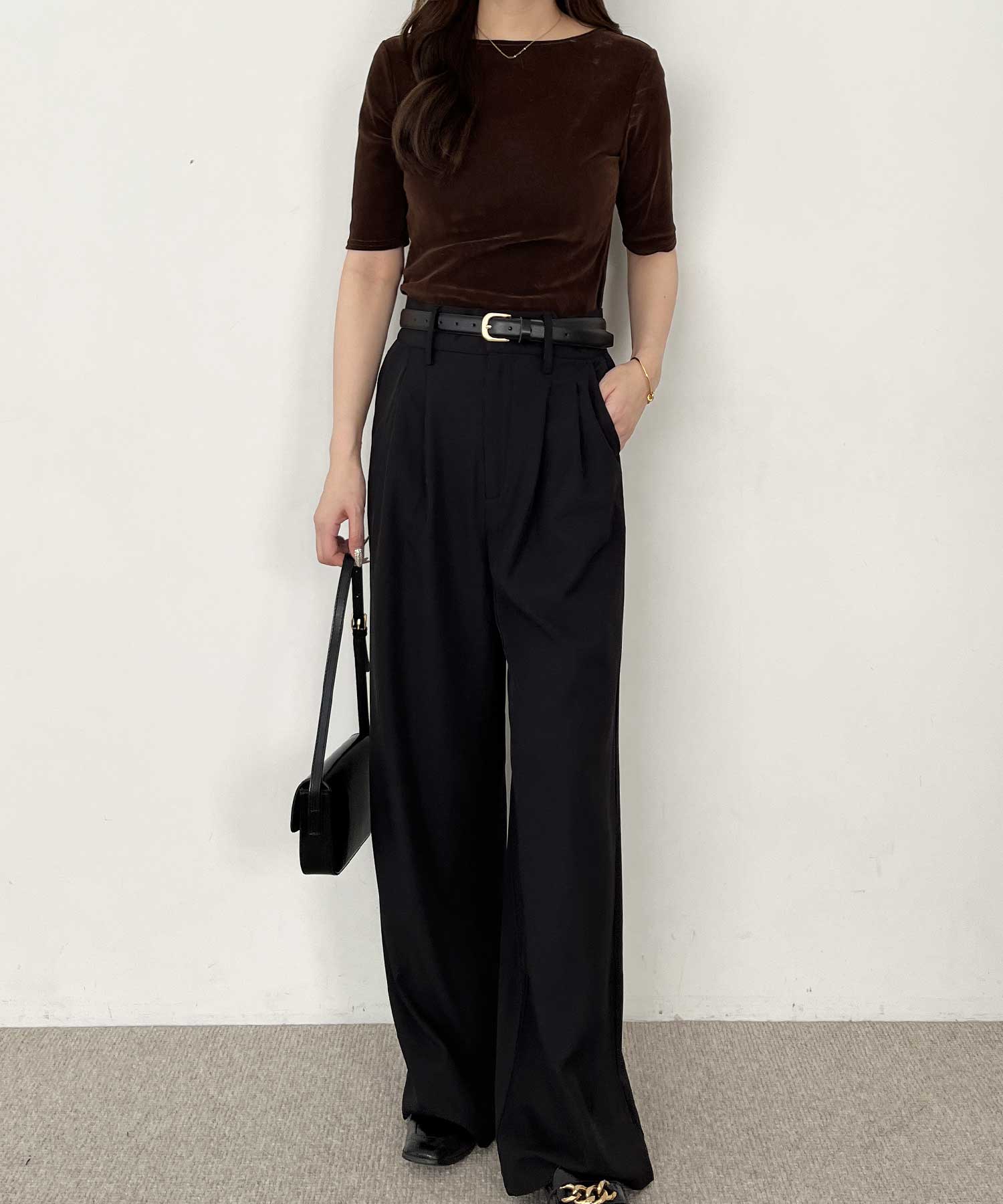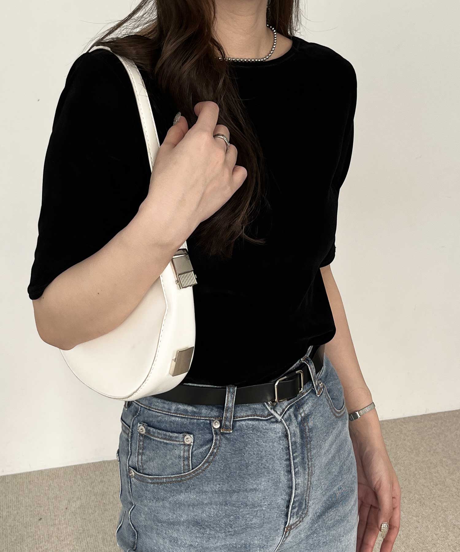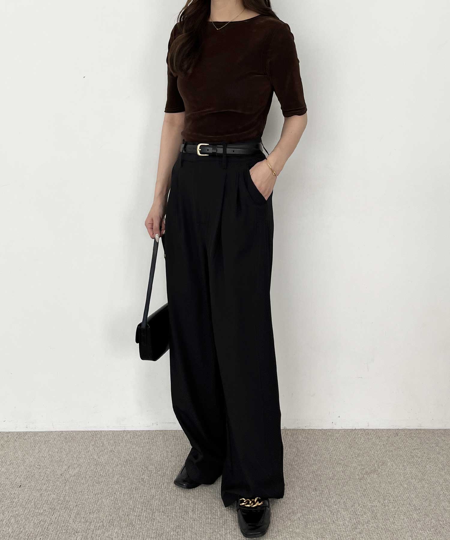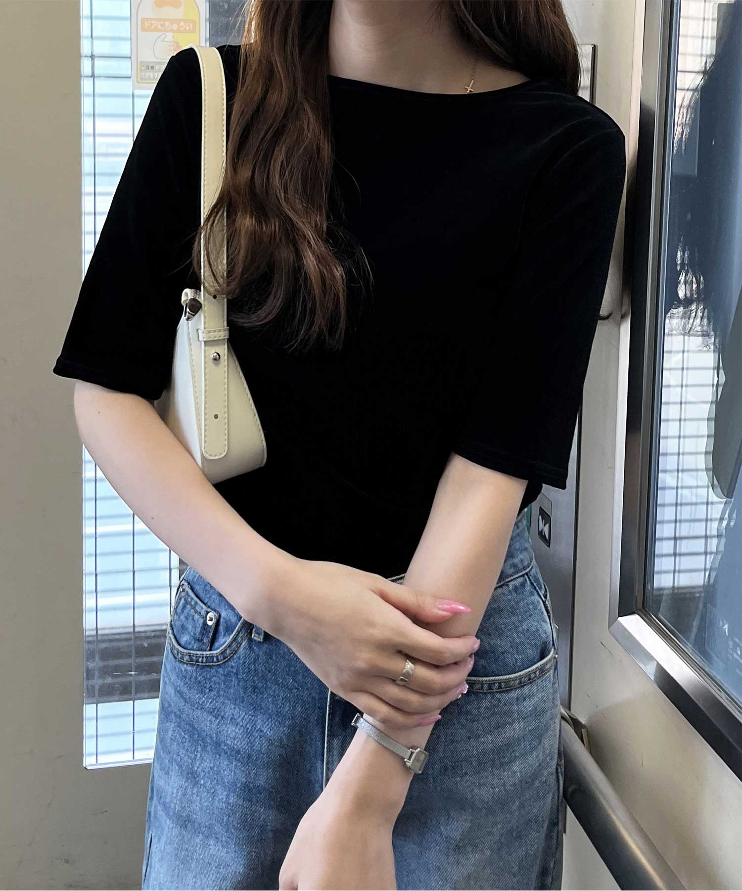 表面感のあるベロア素材がアクセントとなりデイリースタイルに重宝する1枚です◎