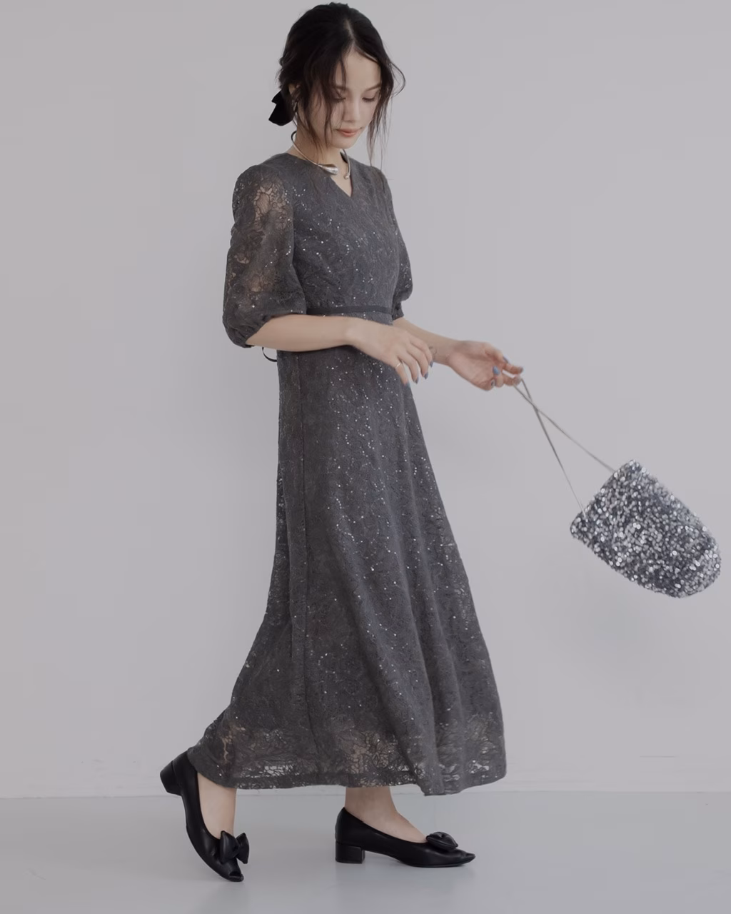 【オケージョン/結婚式】フレアラメドレス #2カラー