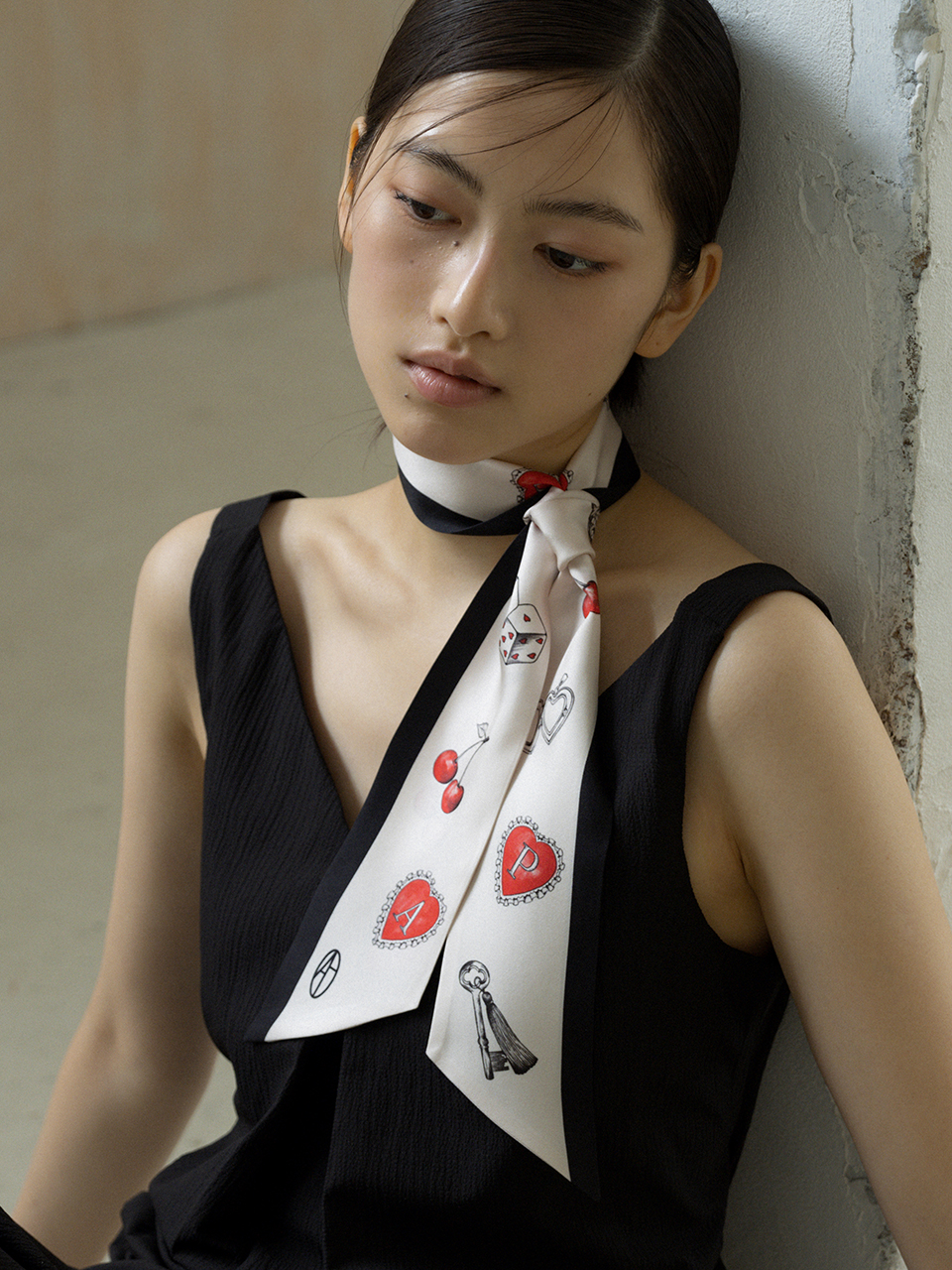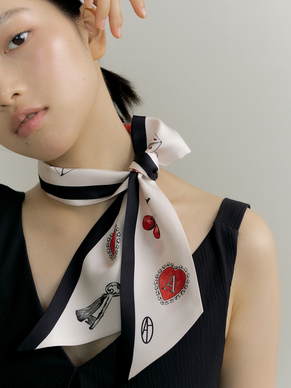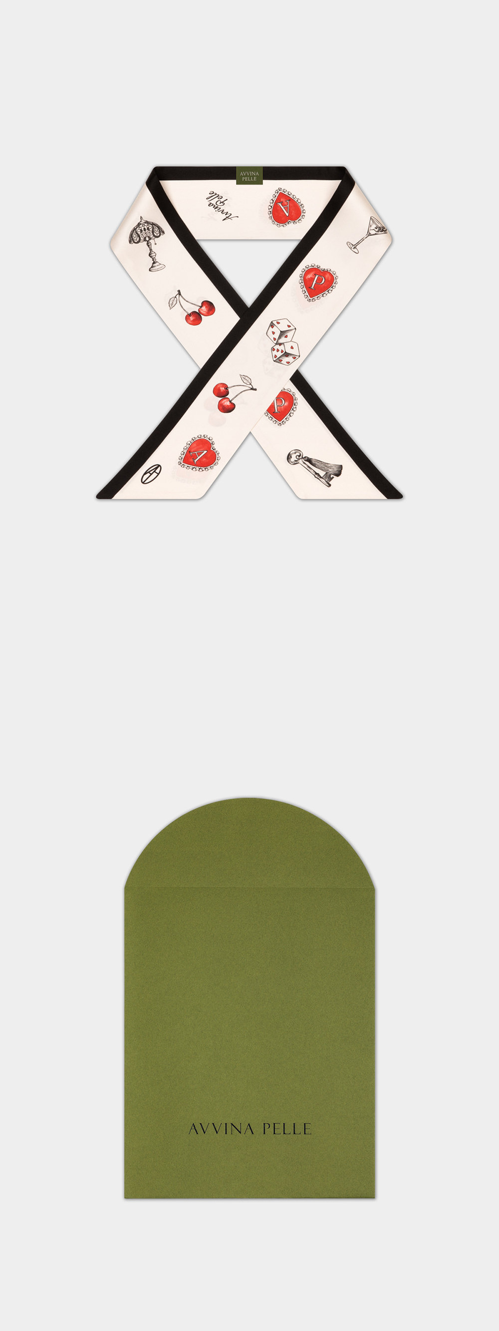 Cherry Charm Long Twilly Silk Scarf - Cream