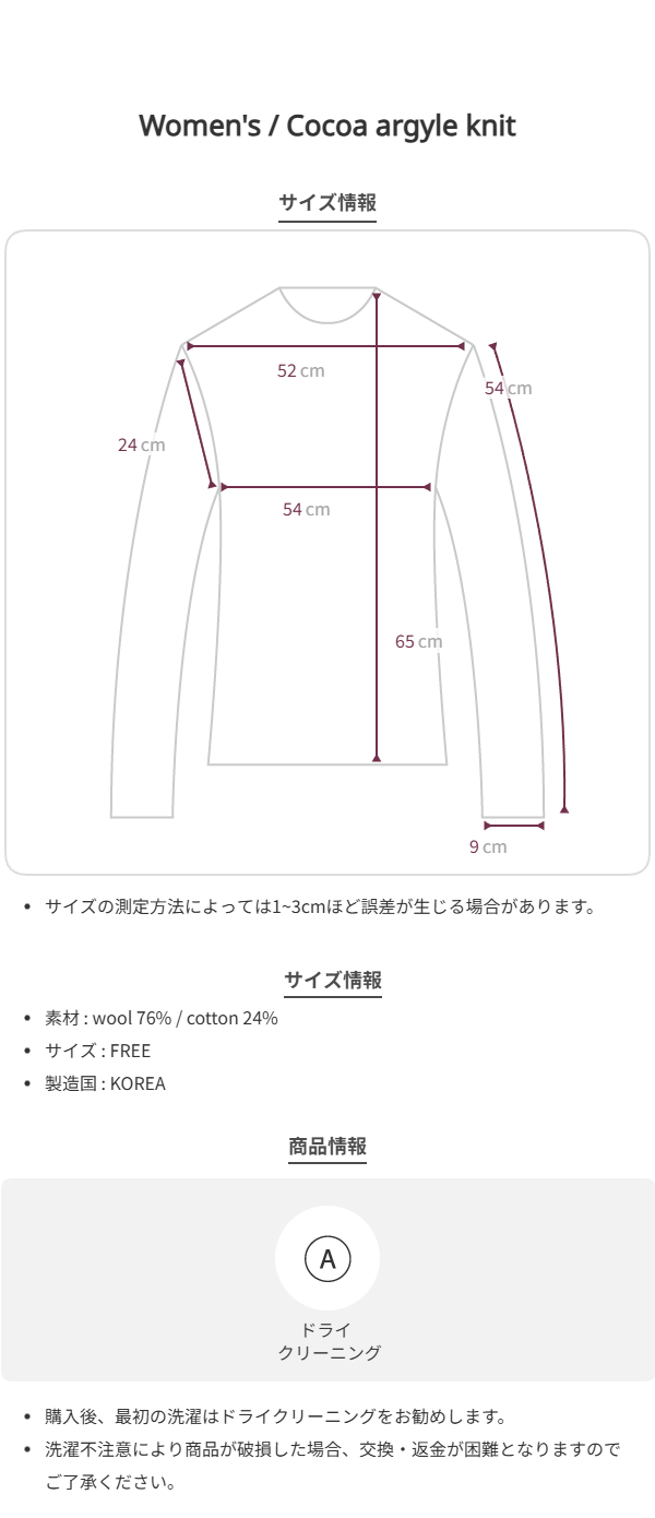 日常のスタイルに特別な雰囲気を添える「Cocoa argyle knit」です。