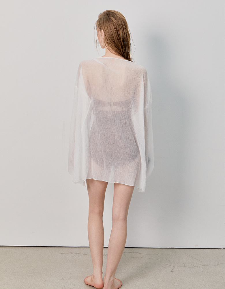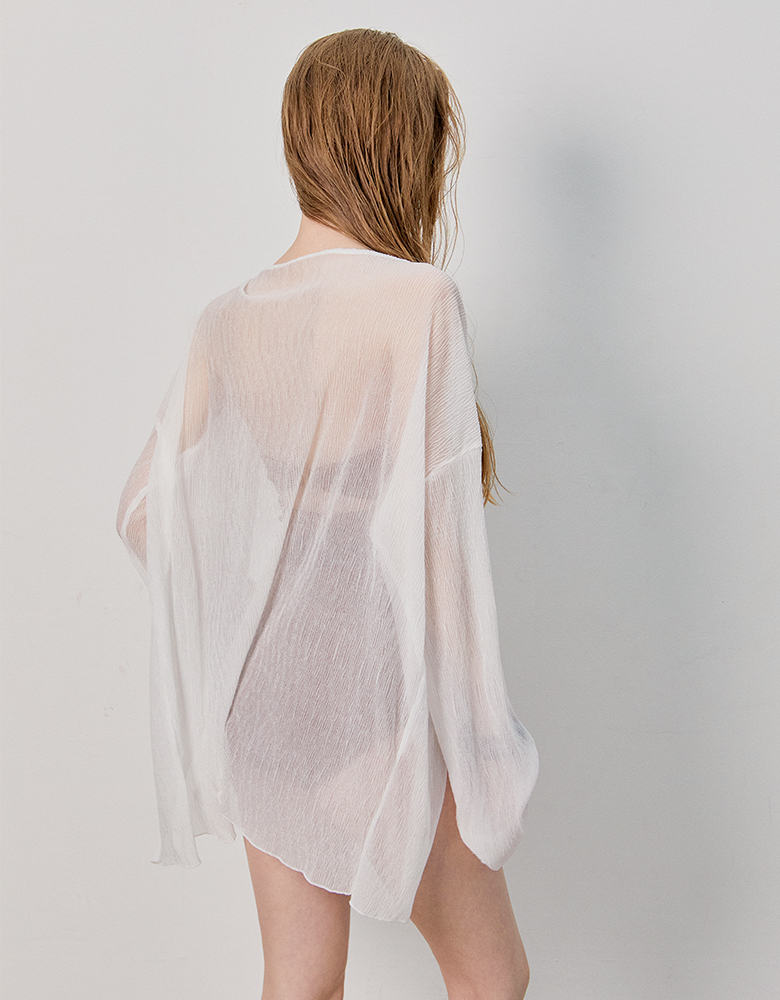 Wrinkle Chiffon Loose Fit Open Cardigan - White