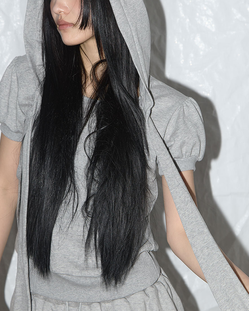 [Influencer pick] Puff Round Scarf Hoodie (Melange Gray) F25QB081